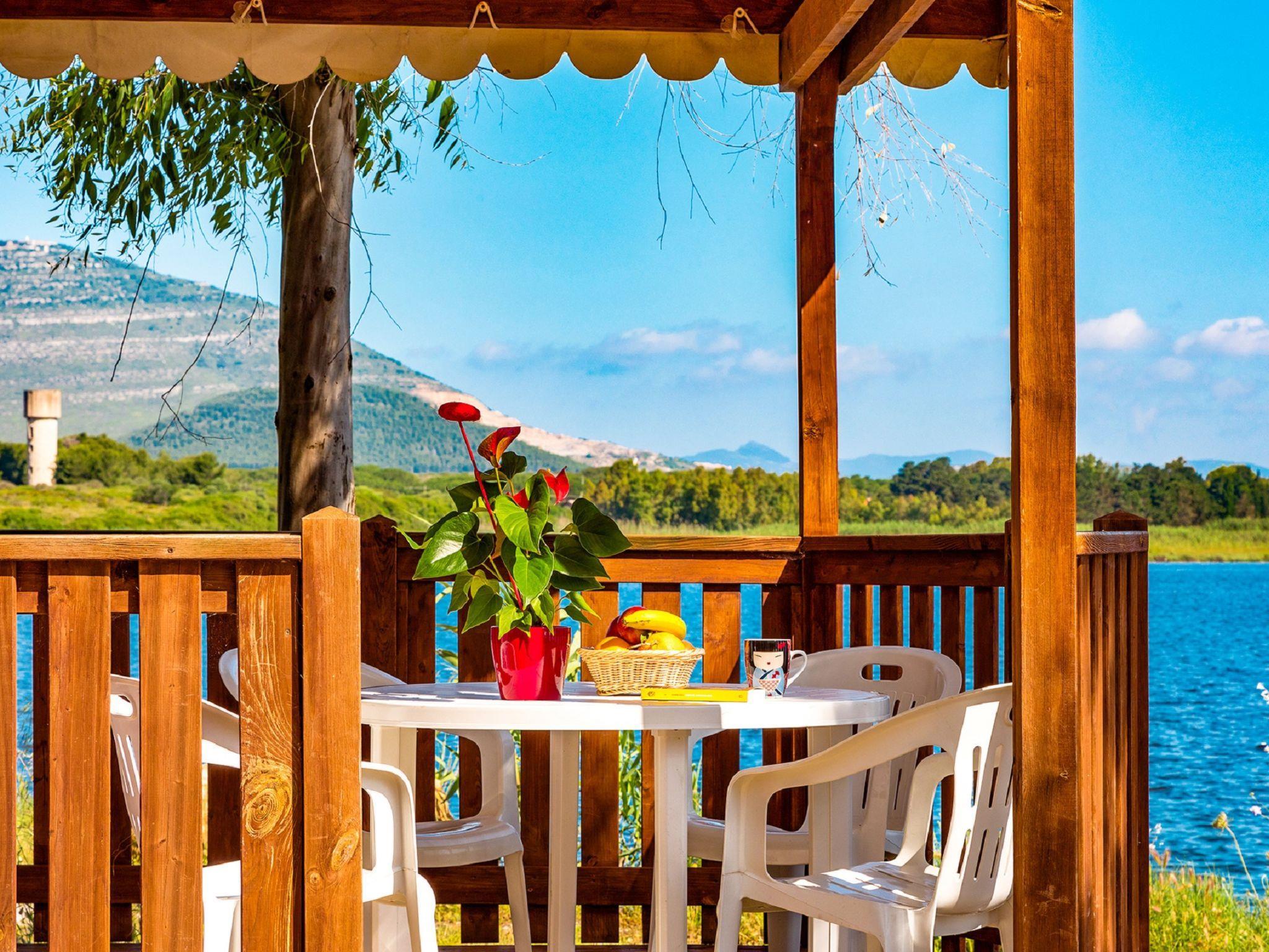 Kinderfreundliche Ferienanlage "Camping Village Laguna Blu". 100 Häuser im Ferienresort. 5 km vom Zentrum von Alghero, 1 km vom Zentrum von Fertilia, 35 km vom Zentrum von Sassari, 50 m vom Meer, 50 m vom Strand, Strasse zu überqueren. Zur Mitbenutzung: Grundstück 15'000 m2 (eingezäunt) mit Pflanzen und Bäumen, Schwimmbad (1'500 m2, 125 - 125 cm tief, saisonale Verfügbarkeit: 23.Mai. - 15.Sep.). Kinderbecken, Rutschbahn, Grill, Kinderspielplatz. In der Anlage: Empfang, Restaurant, Bar, Wireless LAN (extra). Fitnessraum, Einkaufsmöglichkeit, Waschmaschine, Wäschetrockner (zur Mitbenutzung, extra), Fahrradverleih. Frühstück Vollpension Halbpension möglich (extra). Bäckerei 100 m, Bushaltestelle 1 km, Fähre "Porto Torres" 37 km, Sandstrand 50 m. Bitte beachten: Animation in der Saison. Geeignet für Familien. Badekappenpflicht. Airport Alghero 5 km.