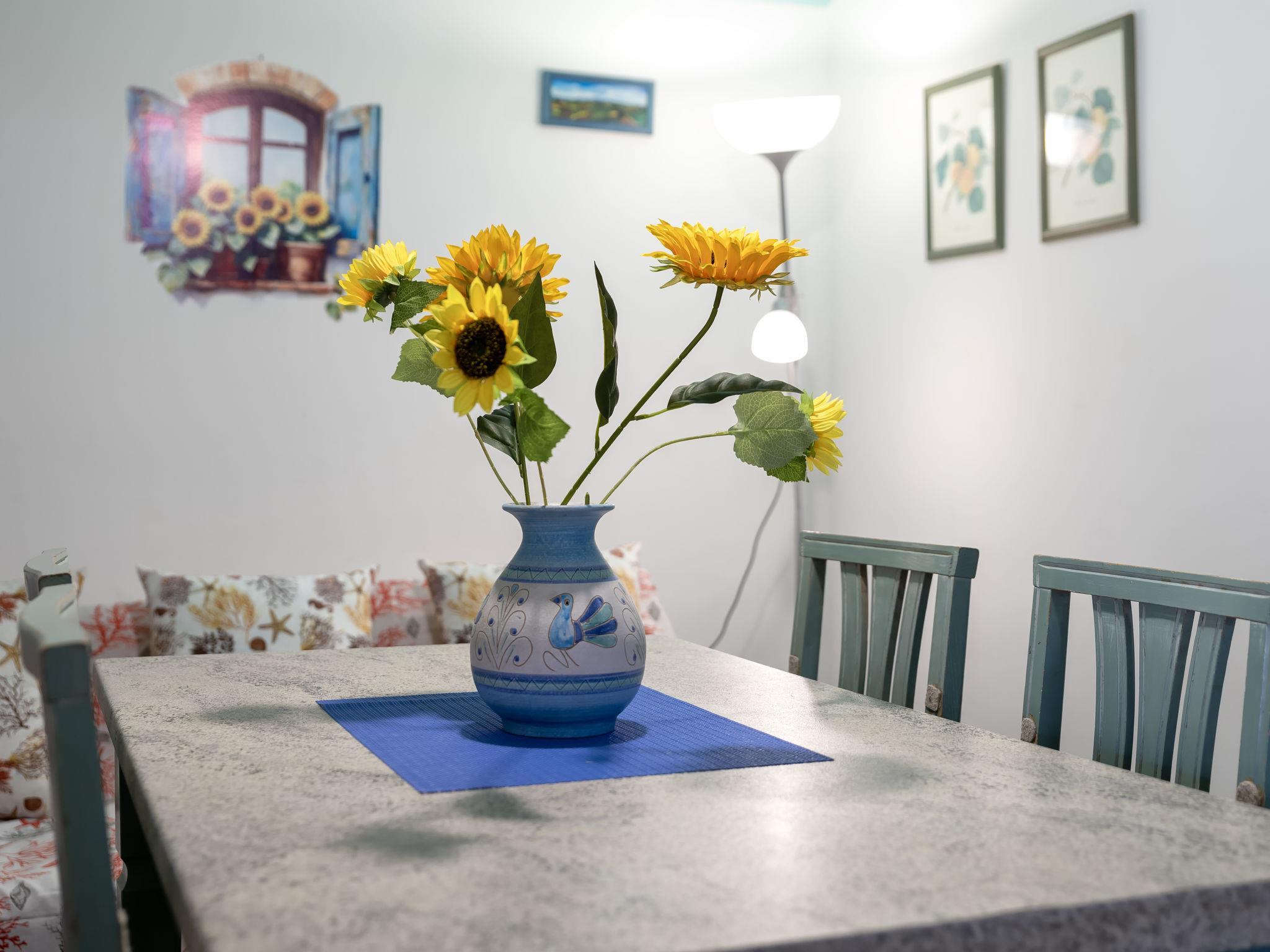 "Il Girasole", 4-Zimmer-Wohnung 75 m2 auf 2 Stockwerken, im Erdgeschoss. Schön und gemütlich eingerichtet: Wohn-/Esszimmer mit TV und Flachbildschirm. Ausgang zum Balkon. Büro, ohne Fenster. Küche (Mini-Backofen, 3 Induktionskochplatten, Toaster, Wasserkocher, Mikrowelle). Dusche/Bidet/WC. Klimaanlage, Boiler. Obergeschoss: 2 Doppelzimmer, jedes Zimmer mit Ventilator. Balkonmöbel. Zur Verfügung: Waschmaschine, Bügeleisen. Parkplatz (extra). Geeignet für Familien. Maximal 1 kleines Haustier/Hund erlaubt. IT090003C2000T9647