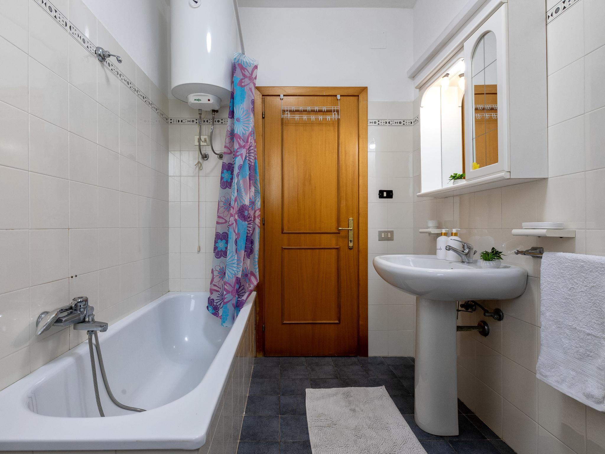 "Iolanda", 4-Zimmer-Wohnung 100 m2 im 1. Stock. Einfach und zweckmässig eingerichtet: Wohn-/Esszimmer. Ausgang zum Balkon. 2 Zimmer, jedes Zimmer mit 2 Betten. 1 Doppelzimmer. Kochnische (Backofen, 4 Flammen, Toaster, Wasserkocher, Mikrowelle). 2 Bäder/Bidet/WC. Klimaanlage. Balkonmöbel. Sicht auf die Ortschaft. Zur Verfügung: Waschmaschine, Bügeleisen, Haartrockner. IT090003C2000R9077