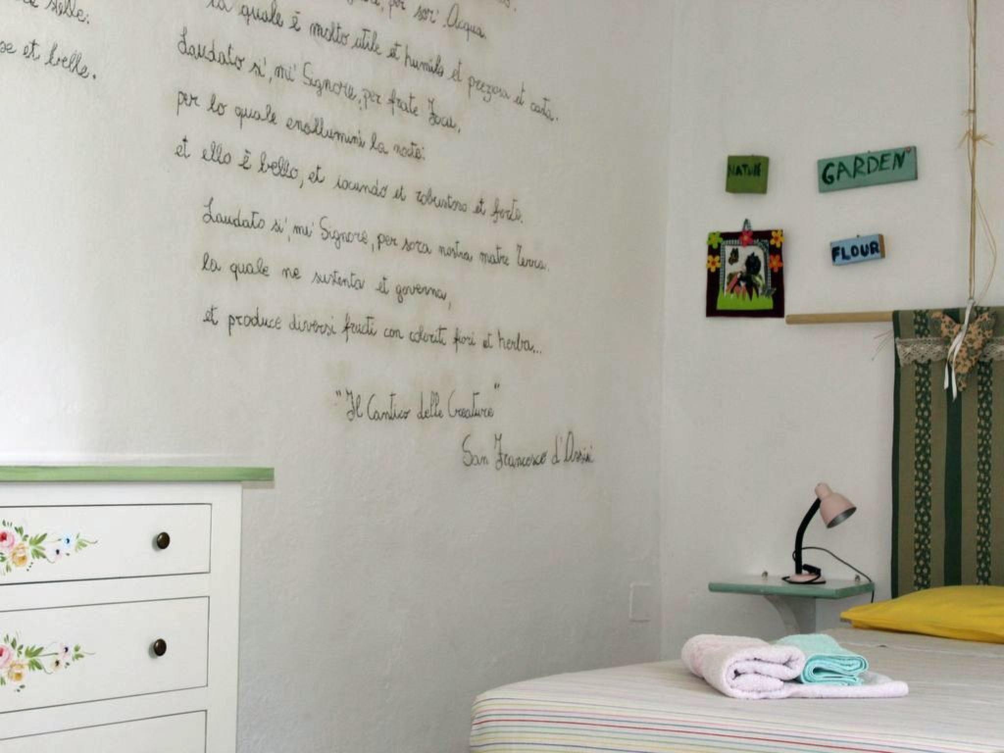 Im Inneren ist die 80 m2 große Wohnung der Inbegriff von Komfort und Stil. Mit einem gemütlichen Esszimmer mit Kamin, einer großen Küche, in der Sie Ihre Lieblingsgerichte zubereiten können, zwei modernen Badezimmern mit Duschen und zwei hübsch eingerichteten Schlafzimmern, von denen eines auch ein Zusatzbett bietet, ist sie der ideale Ort für 4-5 Gäste. Der vorherrschende Shabby-Chic-Stil mit seinen Pastellfarben trägt zu einer entspannten und friedlichen Atmosphäre bei, die perfekt ist, um sich nach einem Tag voller Entdeckungen zu entspannen.