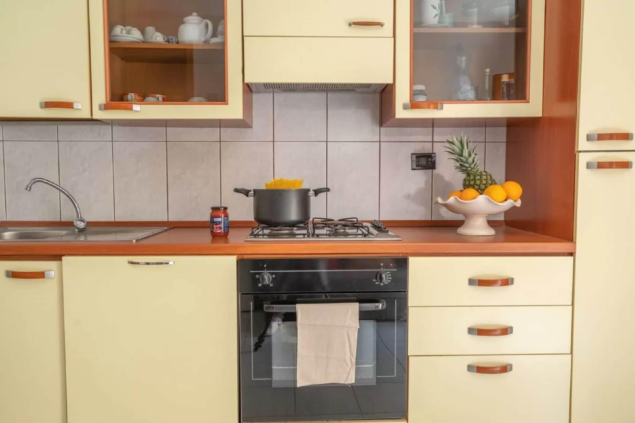 Dieses schöne Apartment im 1. Stock bietet Ihnen eine gemütliche und komfortable Atmosphäre. Das geräumige Wohnzimmer verfügt über ein Schlafsofa, einen Fernseher, einen Esstisch und eine gemütliche Sitzecke – ideal zum Entspannen nach einem erlebnisreichen Tag. Die offene Küche ist komplett ausgestattet mit Herd, Backofen, Kühl-/Gefrierschrank und Waschbecken – ideal für die Zubereitung Ihrer Mahlzeiten. Das Apartment verfügt über ein ruhiges Schlafzimmer mit einem bequemen Doppelbett und ein Kinderzimmer mit einem Einzelbett und bietet somit ausreichend Platz für Familien oder kleine Gruppen mit bis zu vier Gästen. Das Badezimmer ist mit Badewanne, Waschbecken, WC und Bidet ausgestattet. Ein zusätzliches WC bietet Ihnen eine Dusche, ein Waschbecken und eine Waschmaschine für zusätzlichen Komfort. Genießen Sie die frische Luft auf dem privaten Balkon oder nutzen Sie die Klimaanlage, um sich in den wärmeren Monaten abzukühlen. Dieses Apartment vereint Funktionalität und Komfort und ist das perfekte zweite Zuhause für Ihren nächsten Urlaub.