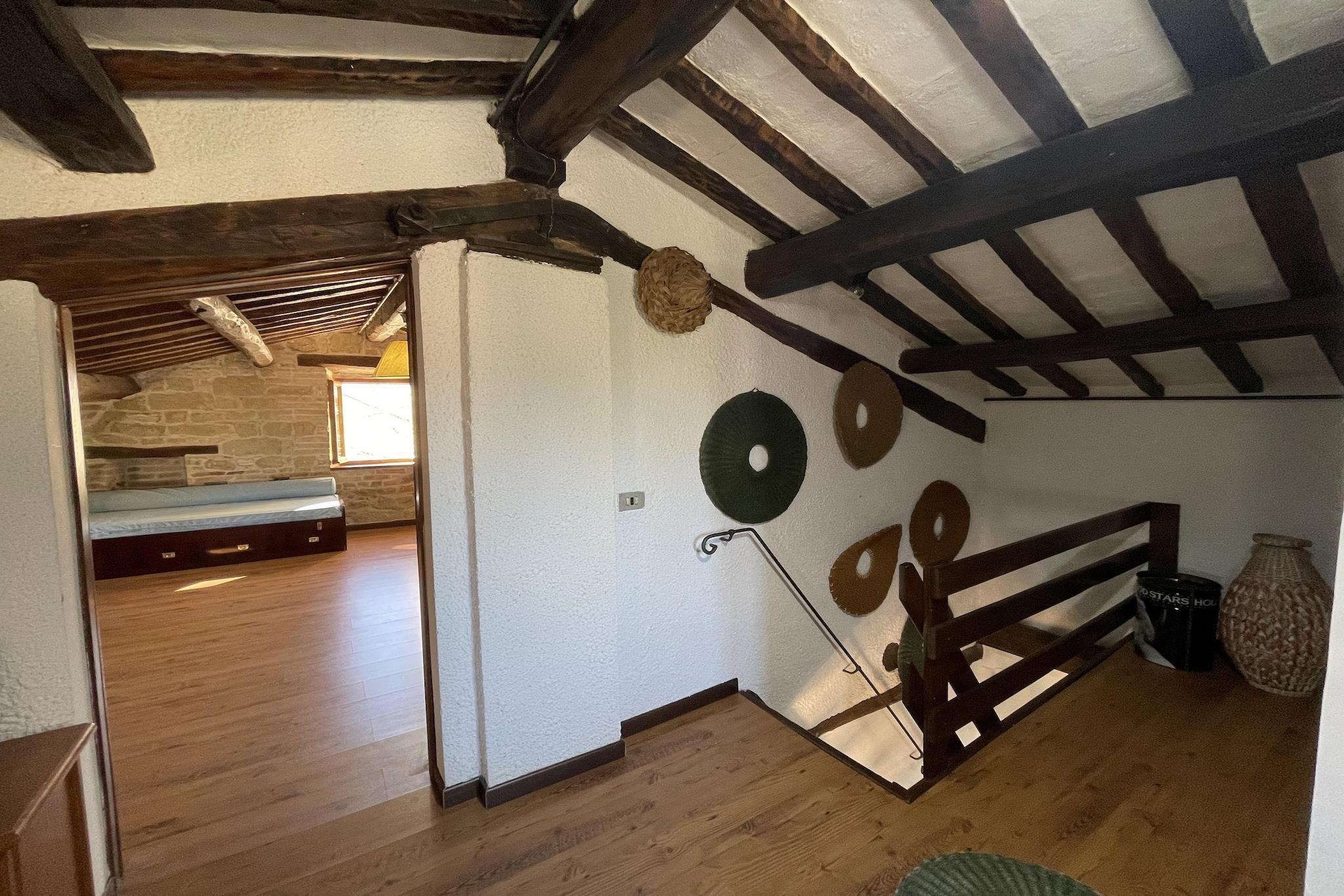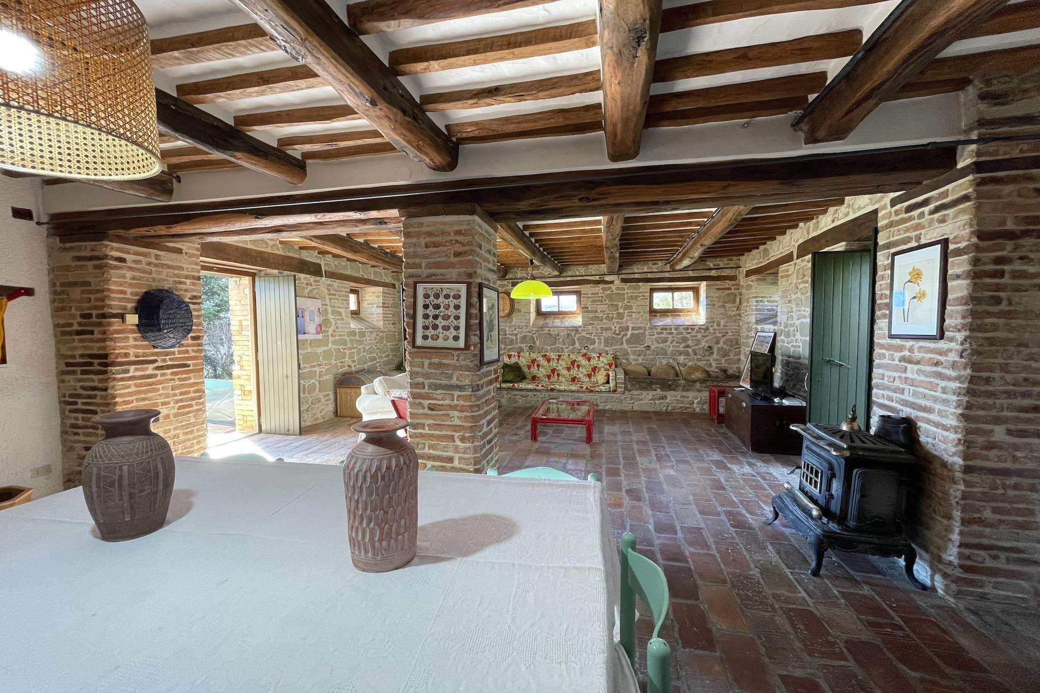 Inmitten wunderschöner Natur bietet diese rustikale Villa mit 3 Schlafzimmern in Amandola Platz für 8 Gäste. Es ist ideal für eine Familie und verfügt über einen Swimmingpool zum Erfrischen und einen umzäunten Garten, um in der natürlichen Umgebung Stress abzubauen. In der Dependance gibt es ein weiteres Doppelbettzimmer und ein Badezimmer mit Dusche.Das Ortszentrum mit Supermärkten und anderen Einrichtungen ist 3 km entfernt. In 3 km Entfernung finden Sie auch gute Restaurants und Nachtleben. Der Garten mit Grill ist ideal, um Zeit im Freien zu verbringen. In der voll ausgestatteten Küche können Sie sich Mahlzeiten zubereiten. Das zentral beheizte Anwesen verfügt auch über einen Kamin im Wohnzimmer, um die Innenräume für Sie gemütlich zu halten. Für die Kleinen steht gegen eine geringe Gebühr auch ein Kinderbett zur Verfügung. Waschmaschine ist vor Ort. Sie können 1 Haustier mitbringen. Die Gäste können von 15:00 bis 18:00 Uhr einchecken und von 09:00 bis 10:00 Uhr auschecken.