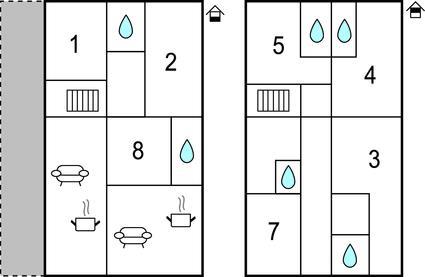 Badezimmer (nr. 6) - WC. Warmes und kaltes Wasser. Dusche