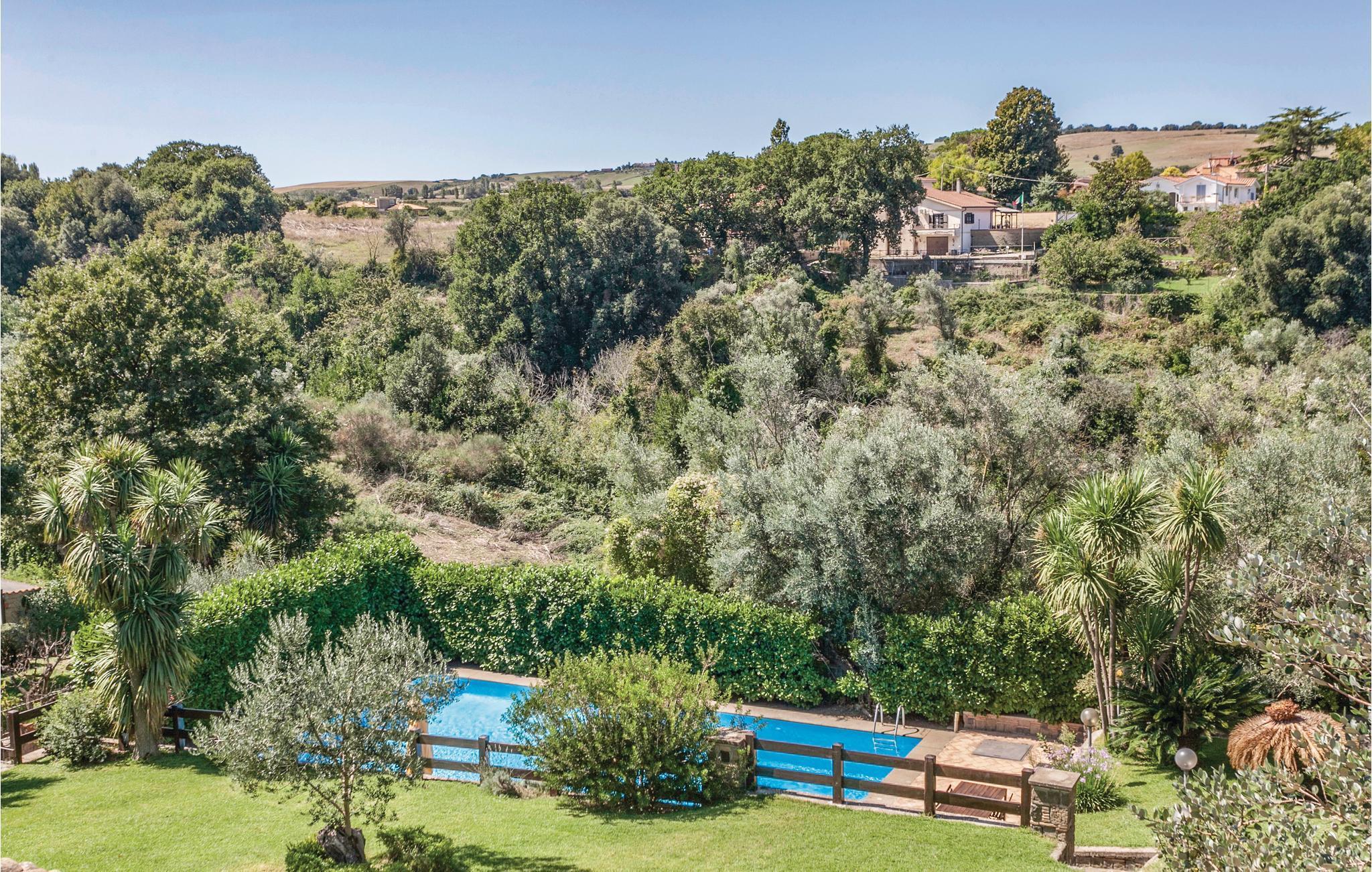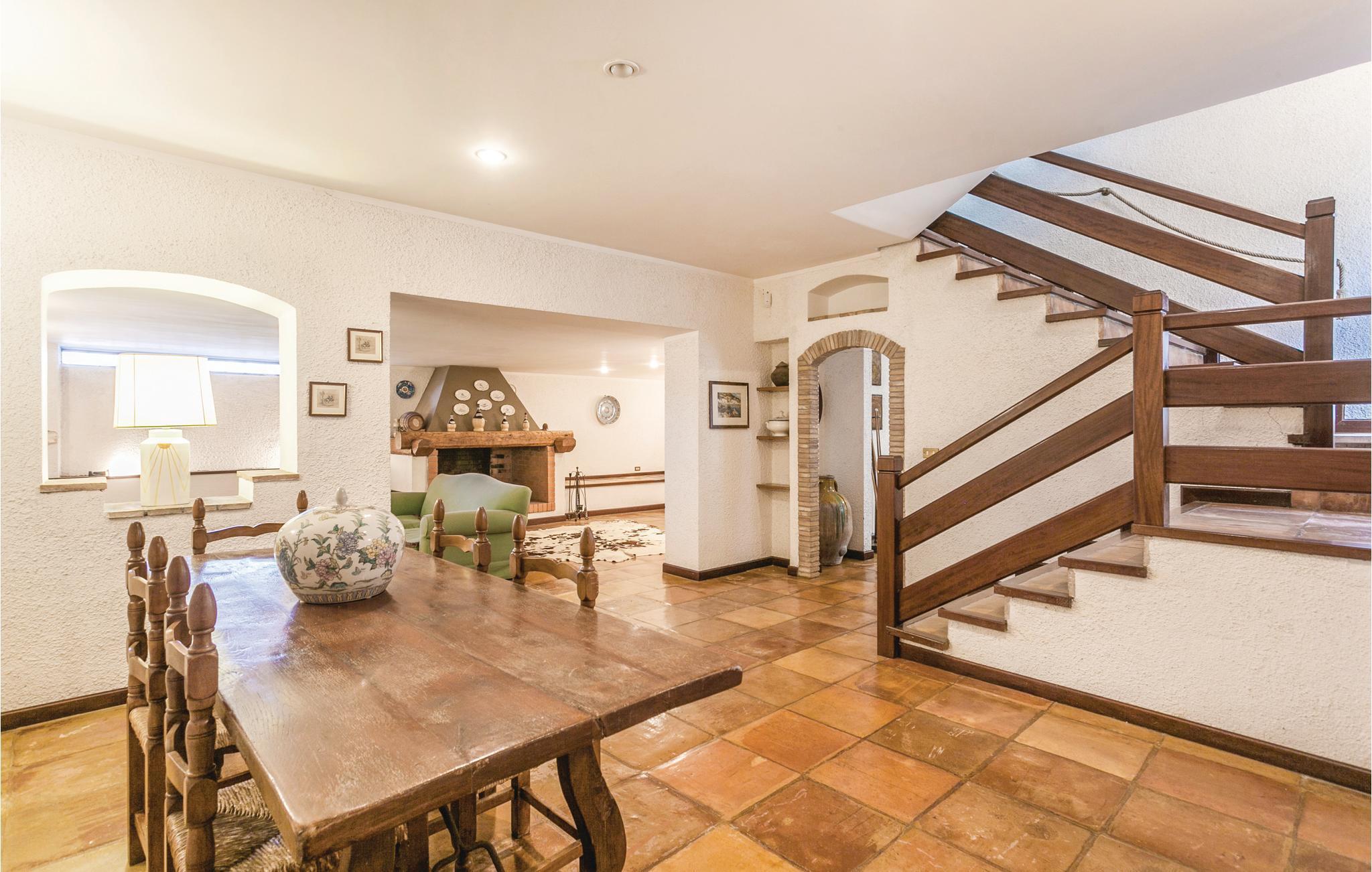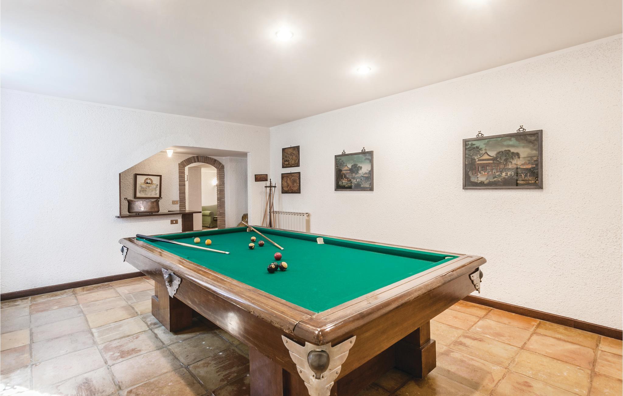 Geräumiges Ferienhaus in Hügellage im malerischen, mittelalterlichen Borgo Anguillara Sabazia am Ufer des Lago di Bracciano. Ihr Ferienhaus, gelegen in einer ruhigen Wohngegend oberhalb des Sees, bietet eine große Veranda zum Entspannen und Essen im Freien, einen gepflegten, eingezäunten Garten mit Pool. Ruhige Lage mit Privatsphäre. Über eine interne Straße von 600 m erreicht man vom Garten aus zu Fuß oder mit dem Auto den ausgestatteten Strand des Sees, wo Sie Boote, Surfbretter und Tretboote mieten oder Bootstouren zu den malerischen Küstenstädten Tervignano und Bracciano unternehmen können. In den Sommermonaten bietet das Dorf Anguillara sowie der Bracciano-See viele önogastronomische Veranstaltungen. Das Meer der Küste Latiums ist nur 30 km entfernt. Das Zentrum von Rom (39 km) erreicht man auch mit dem Zug, der jede halbe Stunde fährt. Im Untergeschoss stehen ein großer Salon und ein Billardraum zur Verfügung; Die Schlafzimmer haben einen Seitenpanoramablick auf den See und Klimaanlage auf Anfrage. Zwei überdachte Parkplätze vorhanden.