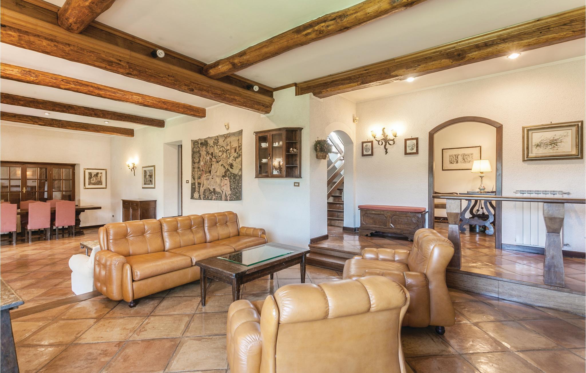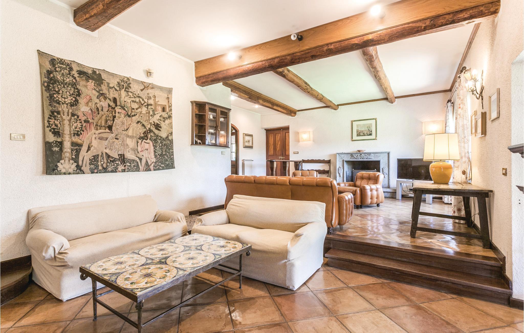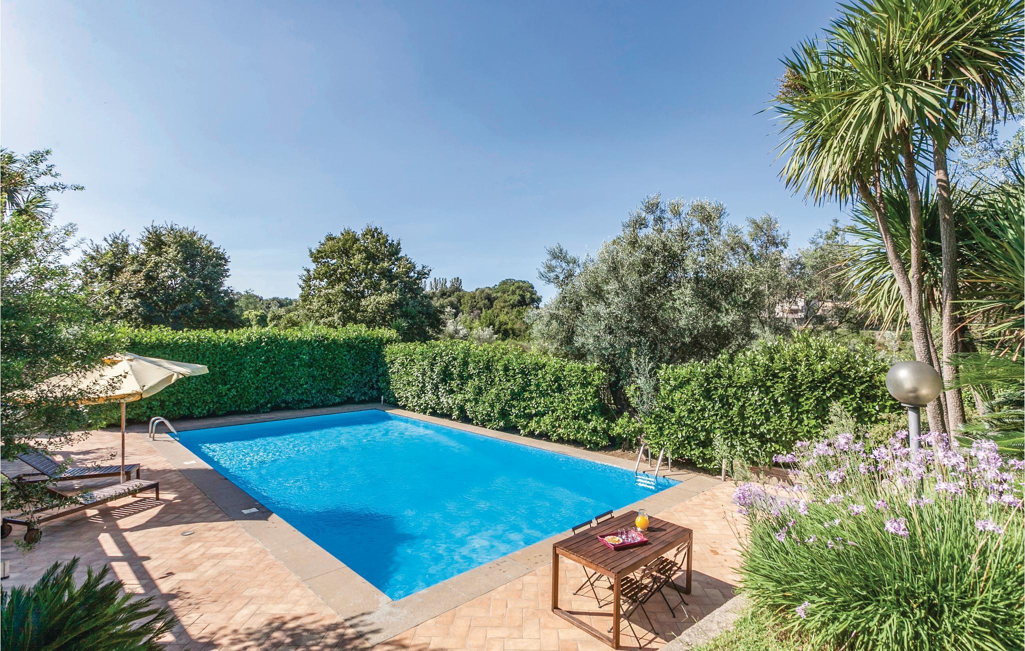 Geräumiges Ferienhaus in Hügellage im malerischen, mittelalterlichen Borgo Anguillara Sabazia am Ufer des Lago di Bracciano. Ihr Ferienhaus, gelegen in einer ruhigen Wohngegend oberhalb des Sees, bietet eine große Veranda zum Entspannen und Essen im Freien, einen gepflegten, eingezäunten Garten mit Pool. Ruhige Lage mit Privatsphäre. Über eine interne Straße von 600 m erreicht man vom Garten aus zu Fuß oder mit dem Auto den ausgestatteten Strand des Sees, wo Sie Boote, Surfbretter und Tretboote mieten oder Bootstouren zu den malerischen Küstenstädten Tervignano und Bracciano unternehmen können. In den Sommermonaten bietet das Dorf Anguillara sowie der Bracciano-See viele önogastronomische Veranstaltungen. Das Meer der Küste Latiums ist nur 30 km entfernt. Das Zentrum von Rom (39 km) erreicht man auch mit dem Zug, der jede halbe Stunde fährt. Im Untergeschoss stehen ein großer Salon und ein Billardraum zur Verfügung; Die Schlafzimmer haben einen Seitenpanoramablick auf den See und Klimaanlage auf Anfrage. Zwei überdachte Parkplätze vorhanden.