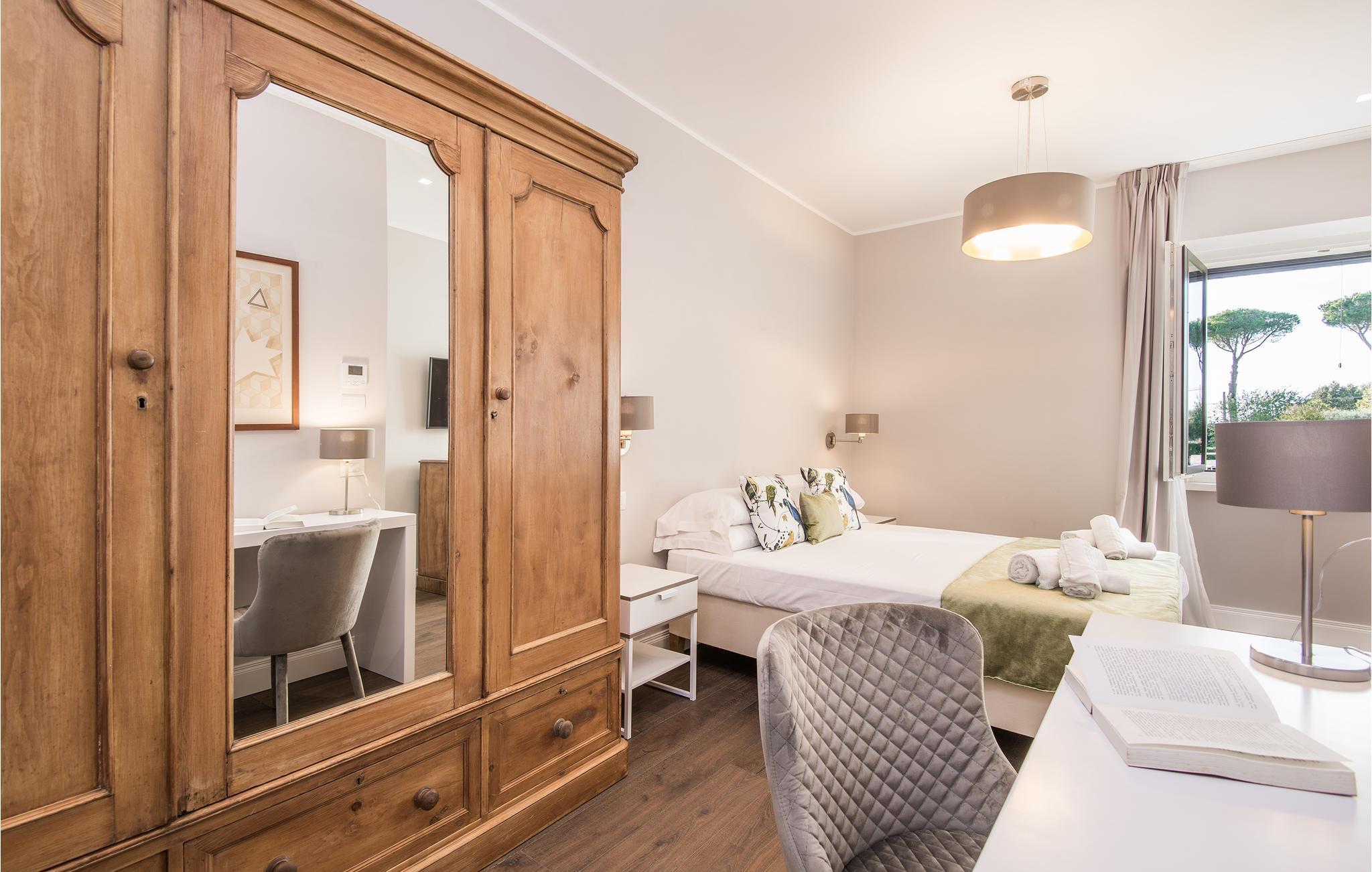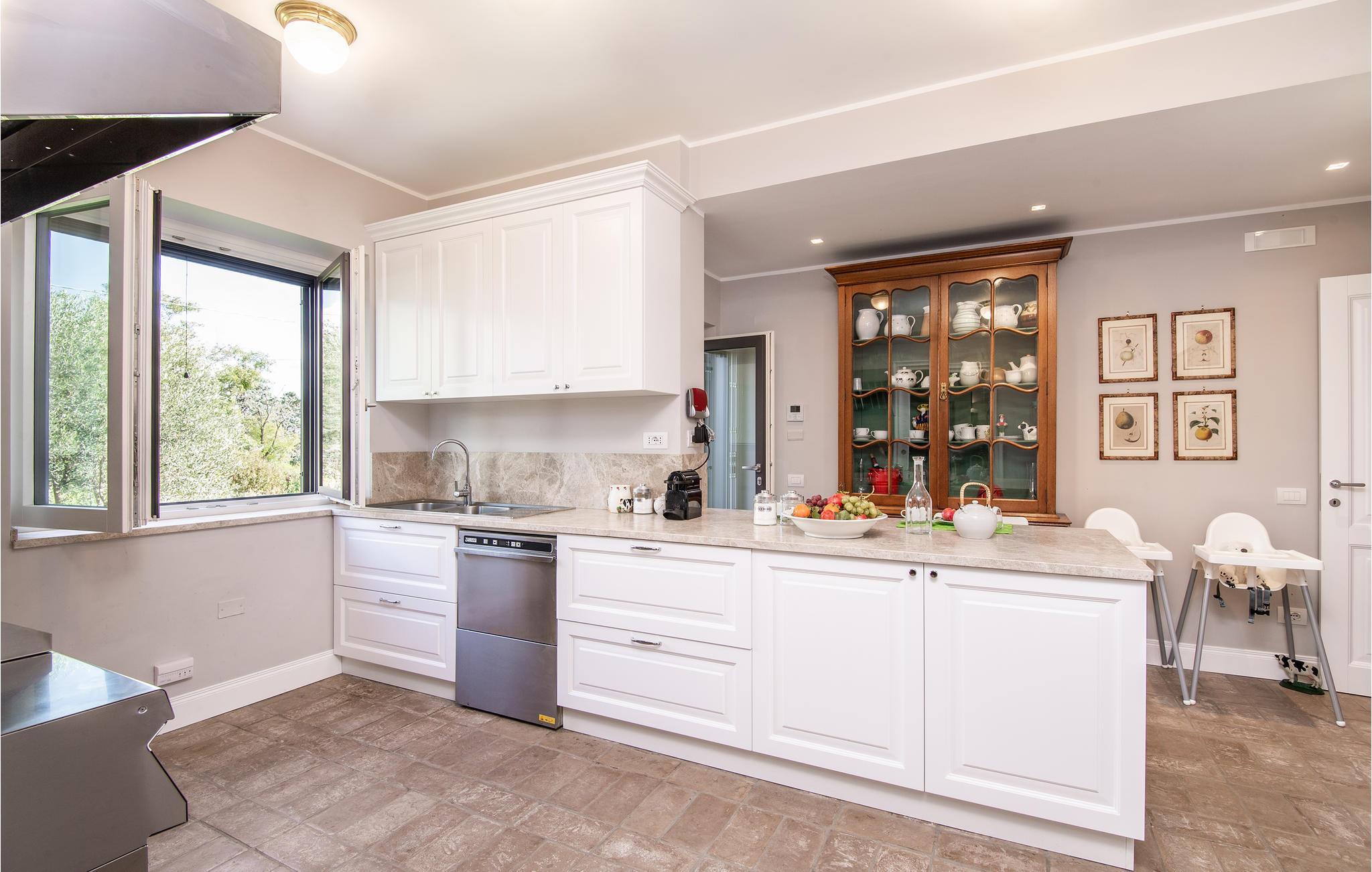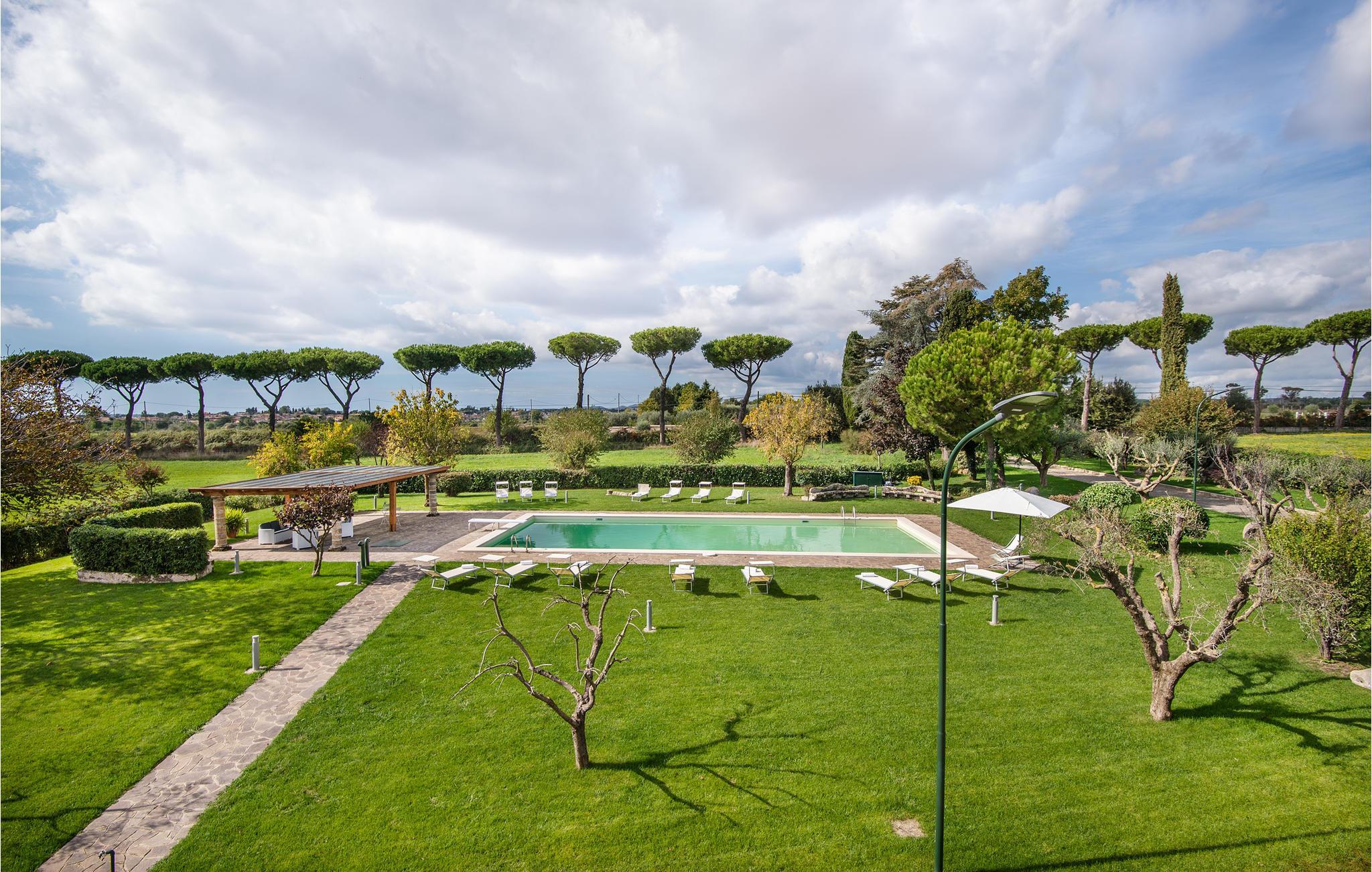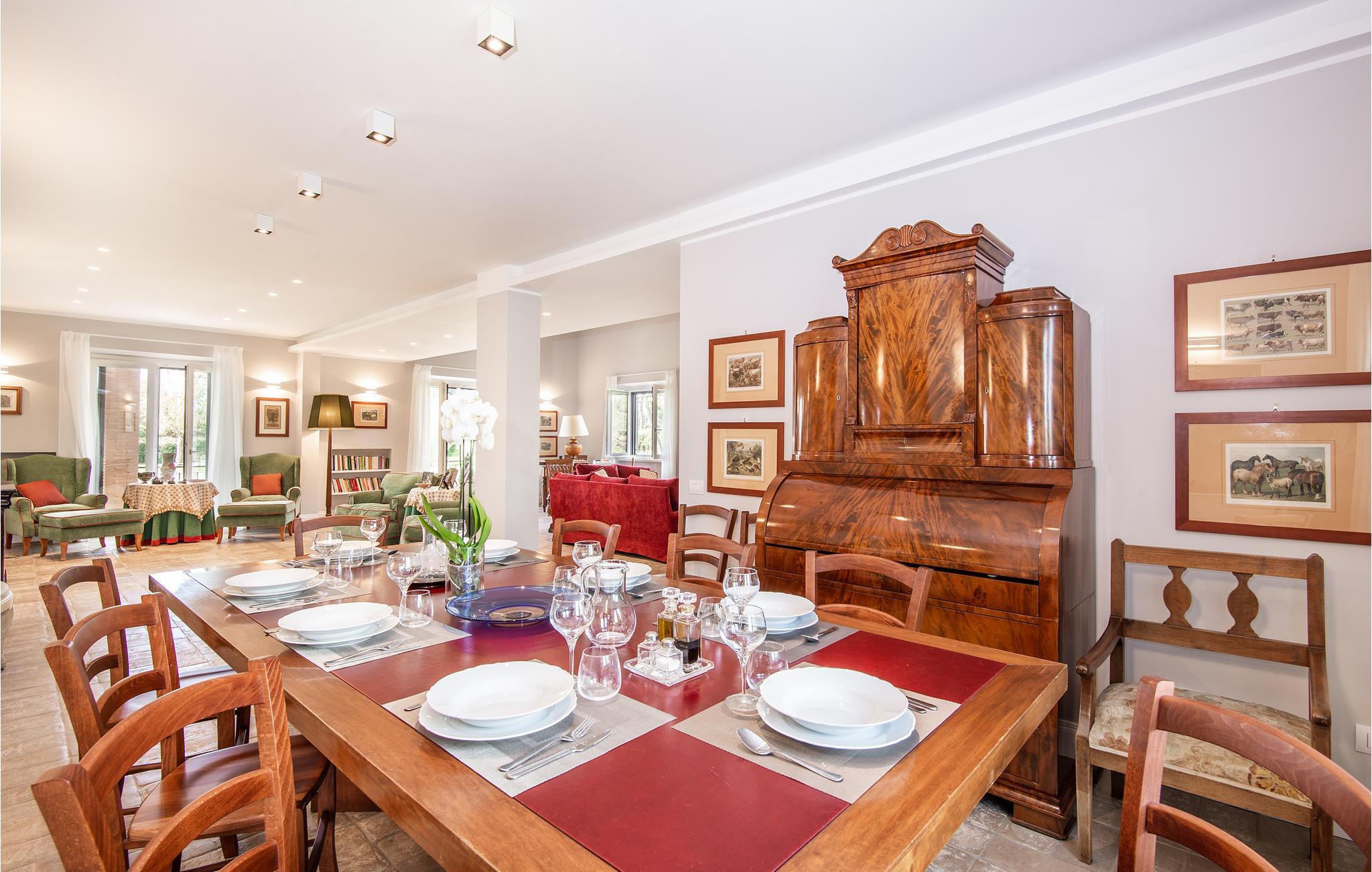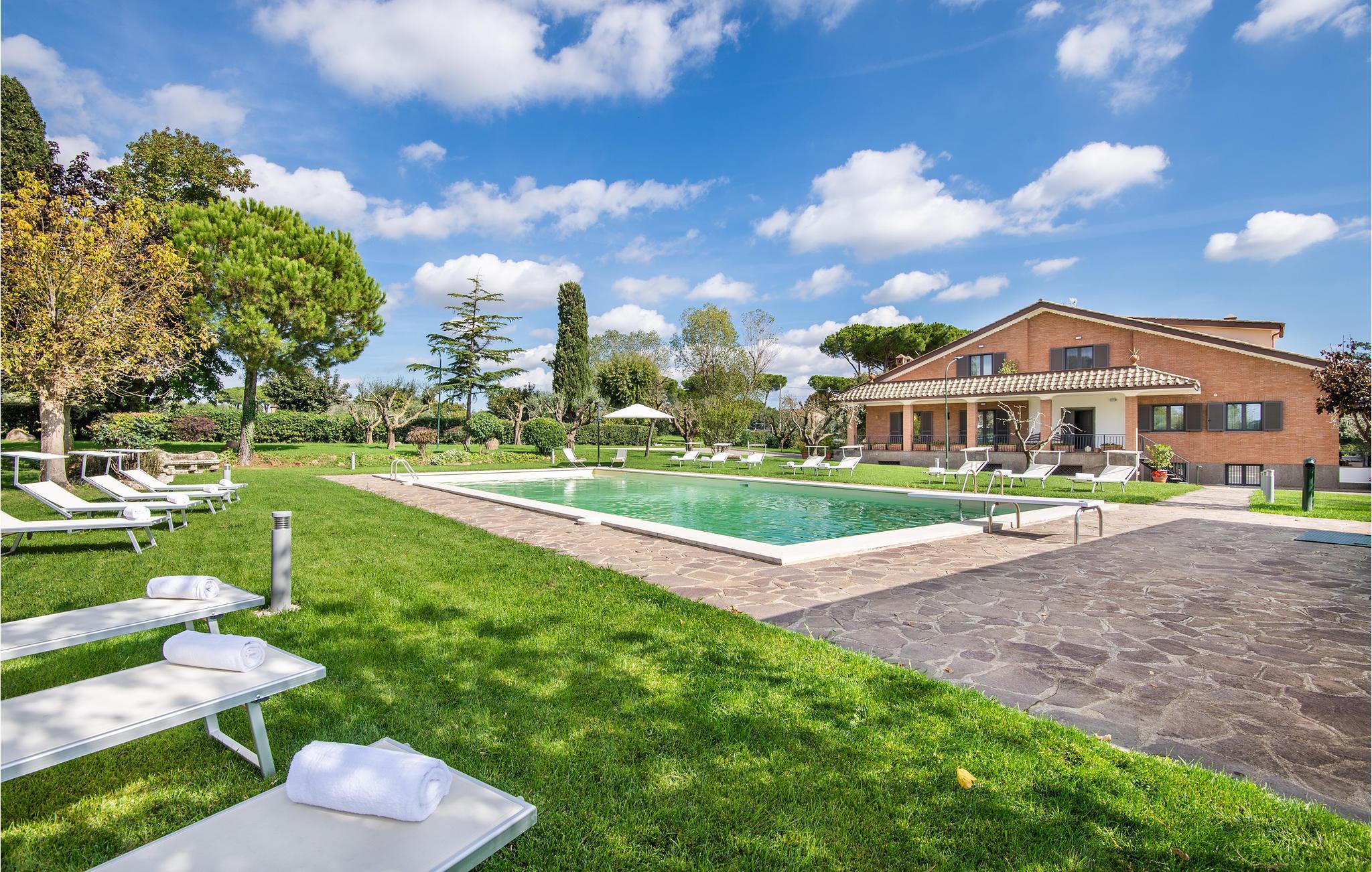 Geräumige und luxuriöse Villa, 8 km vom Bracciano-See und 20 km von den Sandstränden von Ladispoli entfernt. Im privaten, umzäunten Park befinden sich ein Salzwasserpool, ein Mehrzweckfeld (Fußball- / Tennisplatz), ein Kinderspielplatz, Tischtennis, eine große Veranda mit Kamin und Grill. Das elegante Interieur umfasst einen Entspannraum mit Kamin, einen Aufenthaltsraum mit Smart-TV, einen Whirlpool für 6 Personen mit Fitnessecke und eine professionelle Küche. Die Schlafzimmer verfügen alle über Smart-TV und ein eigenes Bad, Moskitonetze an allen Fenstern. Ideal für einen Urlaub mit Freunden oder der Familie, für diejenigen, die das Meer oder den See lieben. Für Golfliebhaber gibt es in 18 km Entfernung einen 18-Loch-Platz, für Kunst- und Shoppingliebhaber liegt das Zentrum von Rom in 39 km Entfernung. Auf dem Grundstück, ca. 200 m von der Villa entfernt (mit separater Zufahrt /Eingang), befindet sich das Haus der Hausmeister, die den Gästen für den wöchentlichen Wäschewechsel zur Verfügung stehen (im Preis inbegriffen). Auf Anfrage: Koch, Personal -Trainer, Babysitter. Zum Anwesen gehört eine Dependance, die als Pizzeria mit Holzofen und Bankettsaal genutzt wird, verfügbar für Veranstaltungen (auf Anfrage und gegen Bezahlung). Erdgeschoss: 220 m² - Eingang mit Treppe zur 1. Etage und ins Souterrain, großer Raum mit: Essecke, Kamin, Toilette, professionelle Küche mit Doppelkühlschrank und Doppelofen, drei Doppelzimmer mit eigenem Bad. Im 1. Stock: 150 m², fünf Doppelzimmer mit eigenem Bad. Untergeschoss: 220 m² - großer Aufenthaltsraum, Bibliothek mit verschiedenen Brettspielen und Tischfußball, SPA-Bereich mit Whirlpool für sechs Personen und Fitnessbereich mit Laufband und Heimtrainer, Toilette, Waschküche mit Waschmaschine, zwei Doppelzimmer mit Bad, eines davon kann mit dem Zimmer mit Doppelschlafsofa verbunden werden.