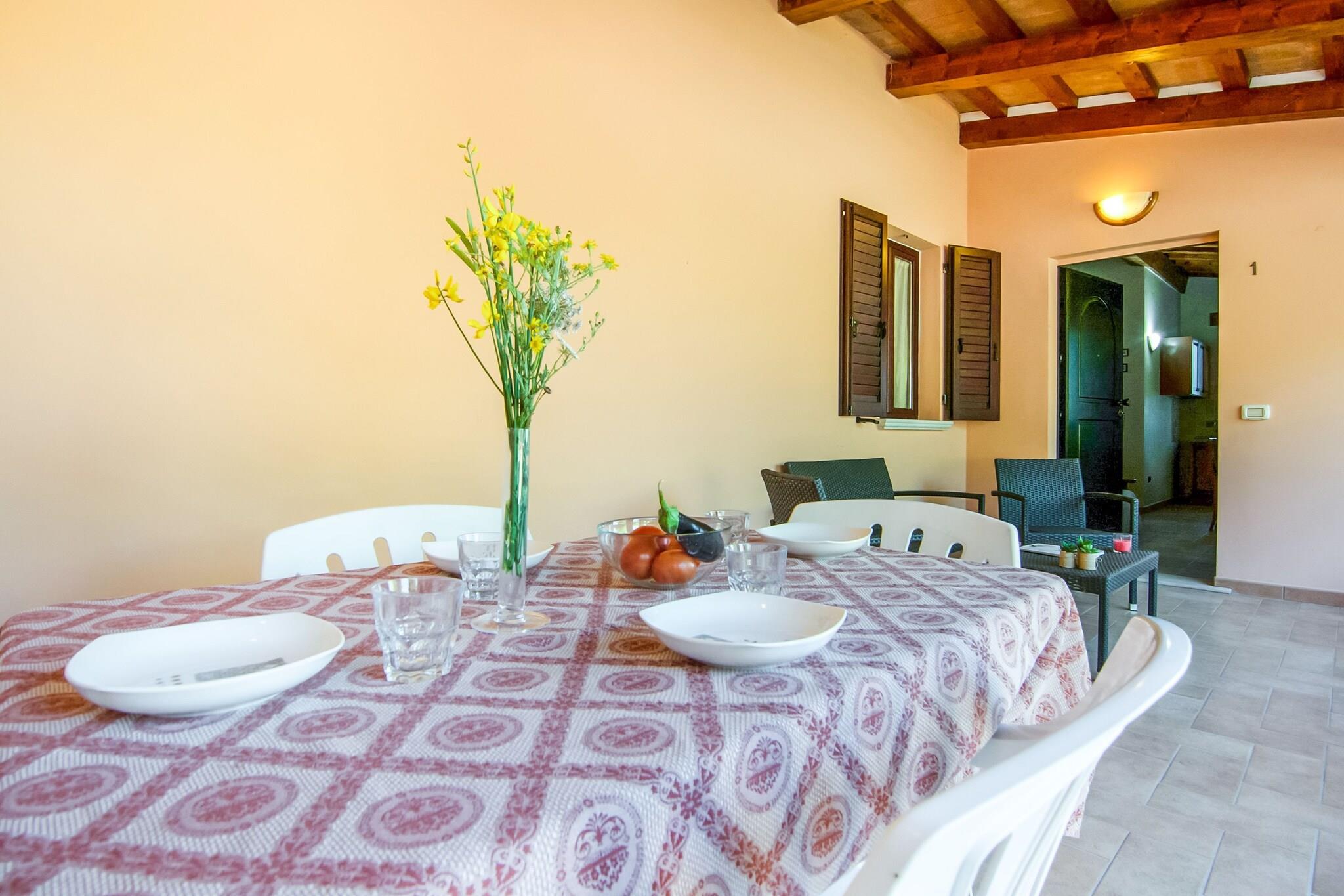 Parterre: (Wohnküche(Doppelschlafcouch, Esstisch, Backofen, Spülmaschine), Schlafzimmer(Doppelbett), Schlafzimmer(Doppelbett), Badezimmer(Dusche, Waschbecken, Toilette, Bidet)) Whirlwanne(gegen Gebühr), Waschmaschine(Gemeinschaftliche Nutzung mit anderen Gästen), Terrasse(alleinige Nutzung), Gartenmöbel, Parkplatz, Pool(Gemeinschaftliche Nutzung mit anderen Gästen, überdacht, 12 x 6 m., geöffnet von Mai bis einschließlich Sep), Spielgeräte, Fahrräder verfügbar(gegen Gebühr, auf Anfrage, elektrisch)