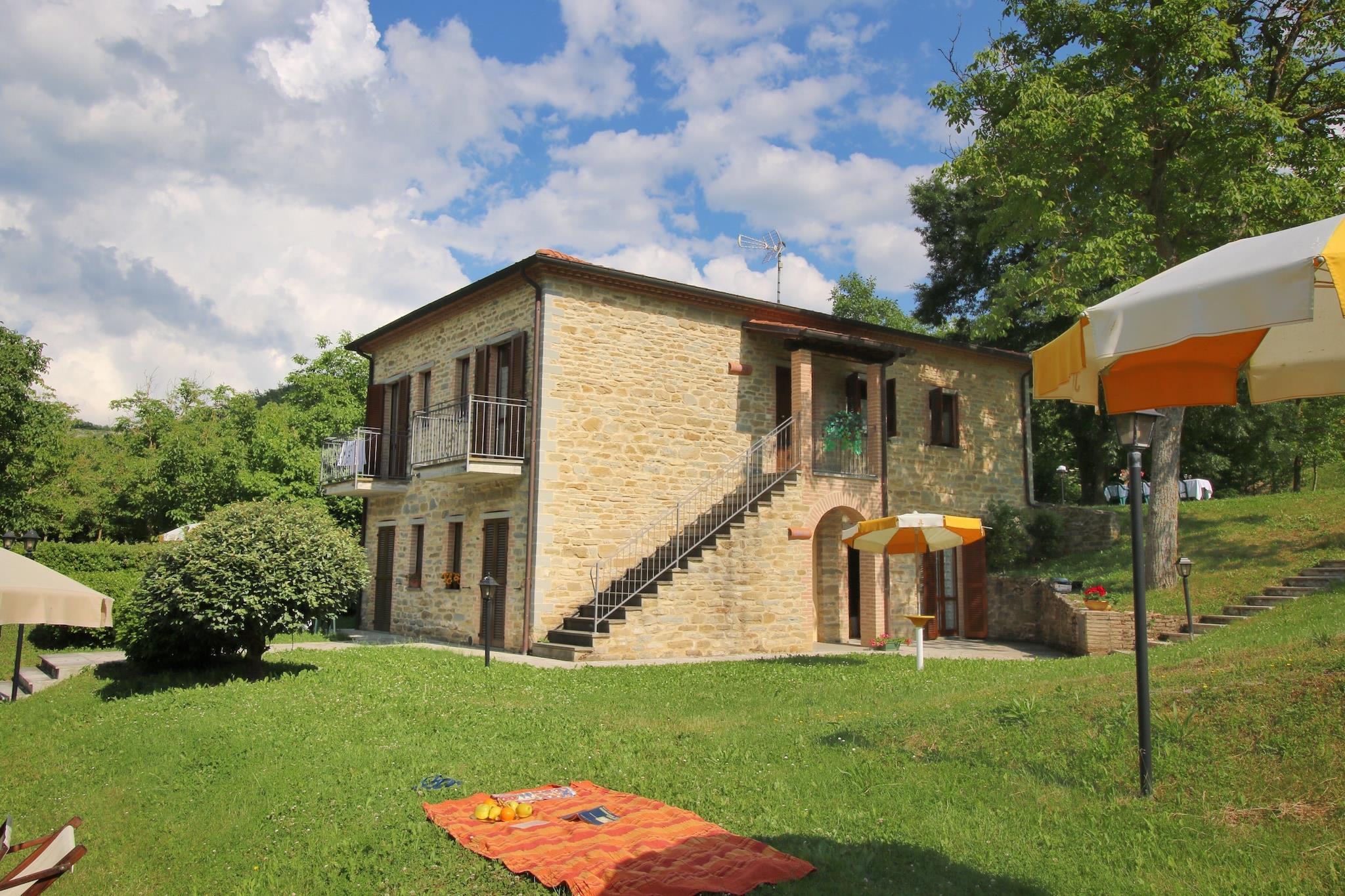 Auf diesem Grundstück befinden sich 3 renovierte Häuser mit 11 Wohnungen. Jede Wohnung verfügt über eine eigene Terrasse mit Gartenmöbeln. Die Häuser liegen weit auseinander und bieten daher viel Privatsphäre. Die Wohnung Il Grano befindet sich neben dem Swimmingpool und ist für 5 Personen geeignet. Das Anwesen befindet sich an der Grenze zwischen Umbrien und Marken im Candigliano-Tal, zwischen den Städten Piobbico, Apecchio, Urbania und Sant'Angelo in Vado. Sie können Urbino, Gubbio, Assisi und Perugia bequem besuchen. Darüber hinaus können Sie Mountainbike fahren oder in den Bergen der Gegend wandern. Die Wohnung Il Grano befindet sich im rustikalen Haus neben dem Swimmingpool. Es ist gemütlich und heimelig eingerichtet. Es verfügt über 1 separates Schlafzimmer und das Doppelschlafsofa im Wohnzimmer. Bei Ihrer Ankunft erhalten Sie eine Flasche Wein. Im Sommer wird jede Woche eine kostenlose Weinprobe im Haupthaus organisiert. Das Anwesen ist über eine unbefestigte Straße von ca. 4 km zu erreichen.