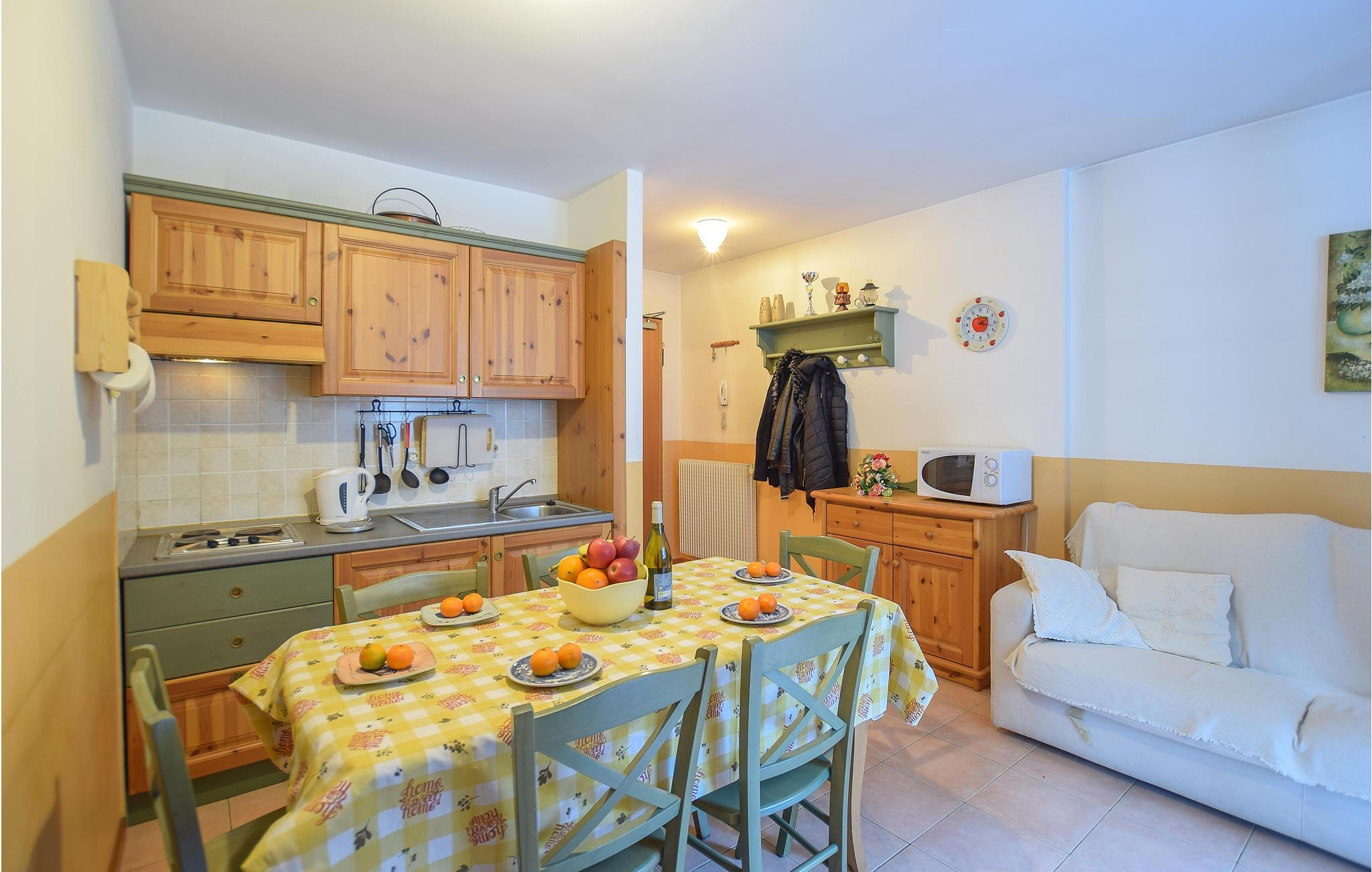 Im Wohnzimmer mit offener Küche können Sie schön kochen und abends im Essbereich das Abendessen und das Beisammensein genießen. Machen Sie sich es nach einem Tag an der frischen Bergluft in den Polstermöbeln bequem. Vertreiben Sie die Zeit bei einem Brettspiel oder schauen Sie entspannt einen Film.