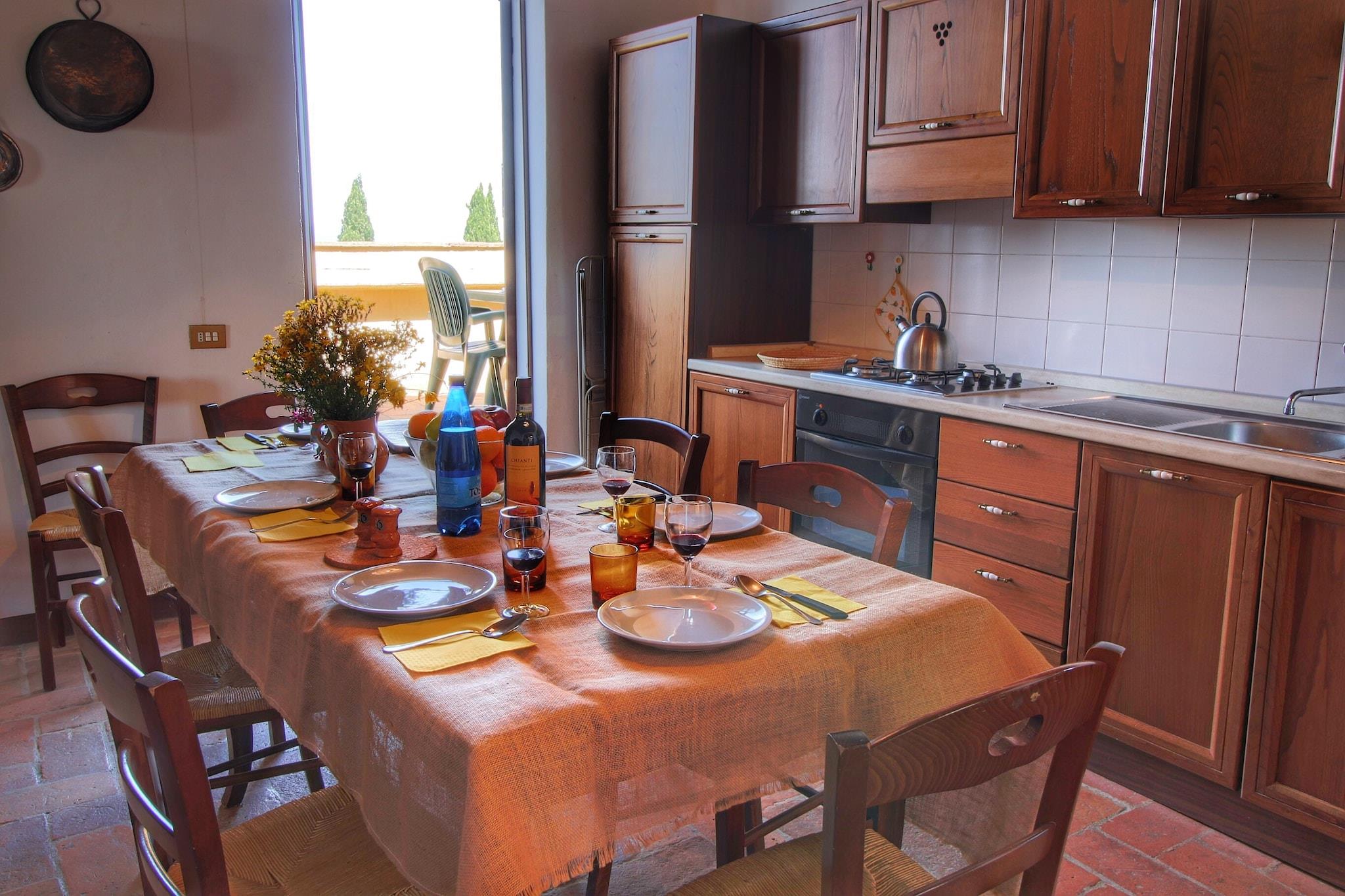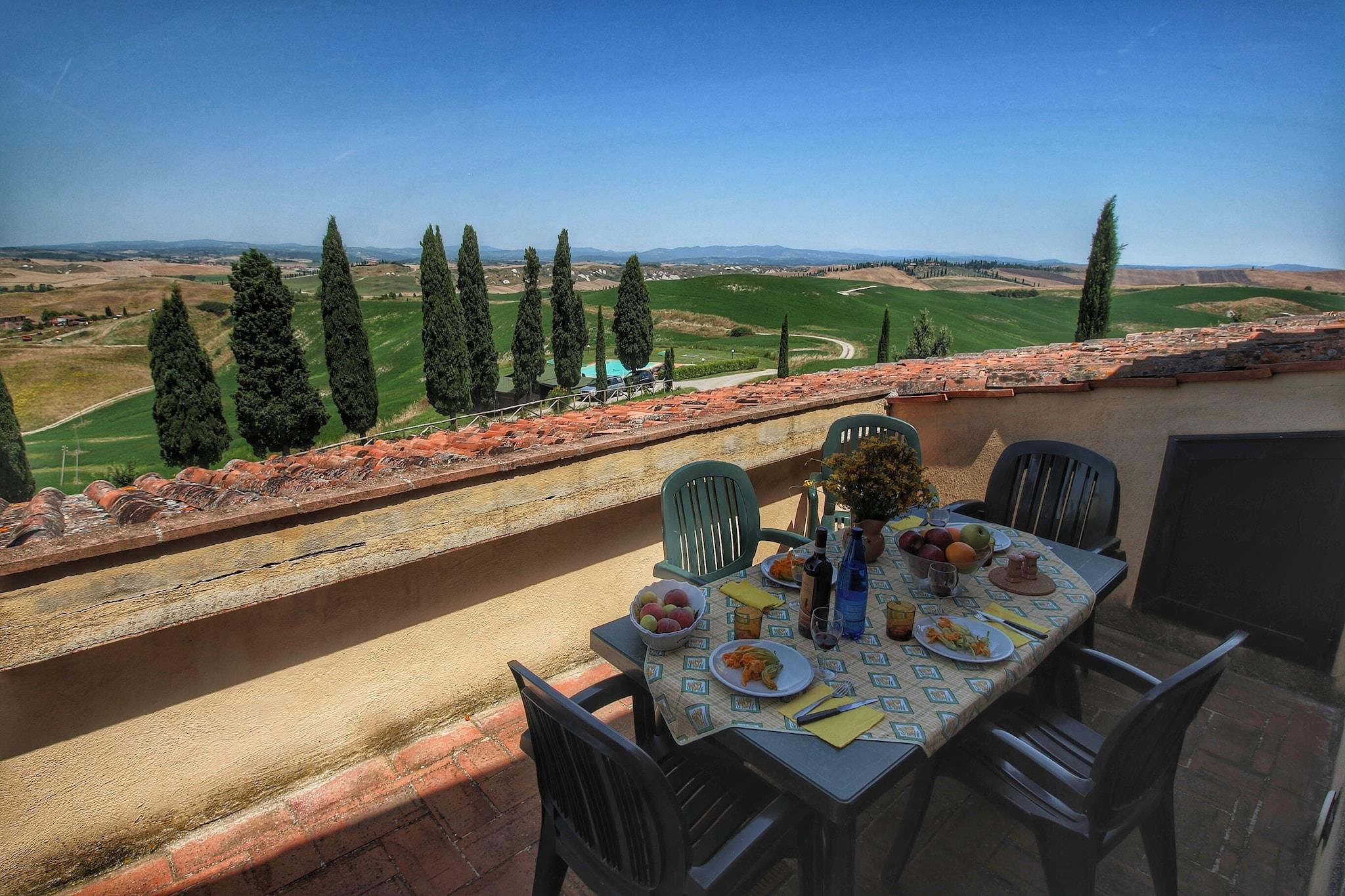 Inmitten der sanften Hügel von Arbia Asciano bietet dieses haustierfreundliche Bauernhaus einen ruhigen Rückzugsort für bis zu acht Gäste und verbindet rustikalen Charme mit modernem Komfort. Im ersten Stock befindet sich ein geräumiges Wohnzimmer mit Kamin, das eine gemütliche Atmosphäre für entspannte Abende schafft. Die gut ausgestattete Küche mit Herd, Dunstabzugshaube, Espressomaschine, Backofen, Mikrowelle und Kühl-Gefrierkombination ermöglicht müheloses Zubereiten von Mahlzeiten. Das Bauernhaus verfügt über vier wunderschön eingerichtete Schlafzimmer – zwei mit Doppelbetten und zwei mit je zwei Einzelbetten – für einen erholsamen Aufenthalt. Zwei Badezimmer mit Dusche, Waschbecken, Toilette, Bidet und Waschmaschine sorgen für zusätzlichen Komfort. Die durchgehende Heizung sorgt für ganzjährigen Komfort und macht dieses Anwesen ideal für alle Jahreszeiten. Gäste können das Leben im Freien mit einer privaten 9 m² großen Terrasse und einem großzügigen Gemeinschaftsgarten mit bequemen Möbeln und einem Grillplatz für Mahlzeiten im Freien genießen. Der große Swimmingpool (14 x 7 m), geöffnet von Juni bis September, lädt zu einem erfrischenden Rückzugsort unter der Sonne der Toskana ein. Für alle, die die Gegend erkunden möchten, bietet das Bauernhaus eine ideale Lage, nur 13 km von Siena entfernt. Charmante Dörfer und die malerische Landschaft sind leicht zu erreichen. Naturliebhaber können Wanderwege erkunden, während Kulturbegeisterte historische Stätten in den nahegelegenen Städten besuchen können. Das gastronomische Angebot ist vielfältig. Nur 4 km entfernt befinden sich Restaurants mit authentischer toskanischer Küche. Genießen Sie traditionelle Gerichte aus frischen regionalen Zutaten. Öffentliche Verkehrsmittel bieten eine bequeme Anbindung an die umliegenden Sehenswürdigkeiten. Ob Sie im Garten entspannen, lokale Spezialitäten genießen oder die malerische Landschaft der Toskana entdecken – dieses Bauernhaus bietet die perfekte Mischung aus Komfort und Abenteuer für einen unvergesslichen Aufenthalt.