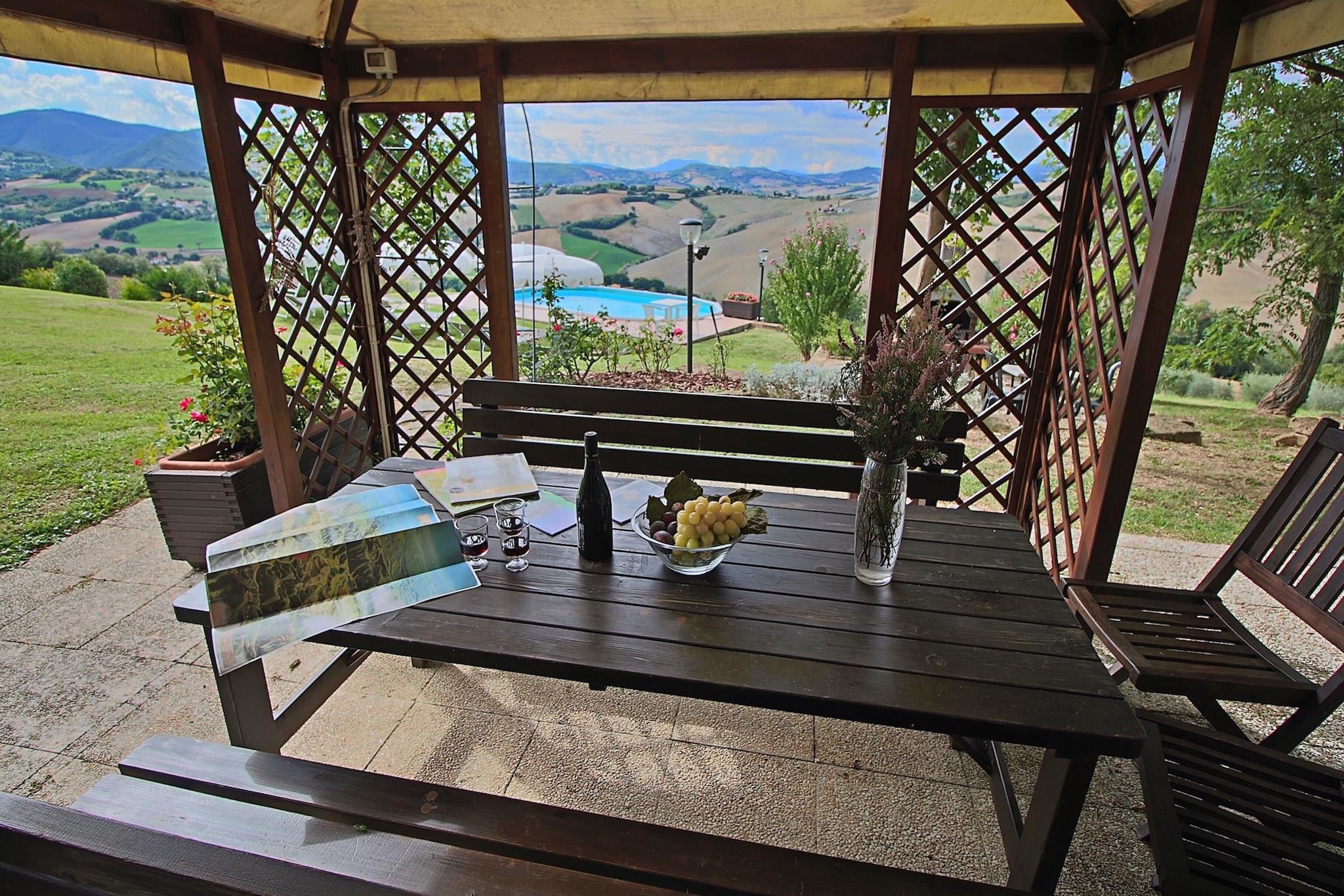 Diese schöne 1-Zimmer-Wohnung bietet Platz für eine 4-köpfige Familie. Es verfügt über einen gemeinsamen Garten und einen gemeinsamen Swimmingpool im Grünen und ist eine perfekte Flucht aus dem stressigen Stadtleben. Das Stadtzentrum ist nur 200 m entfernt. Grundlegende Einkäufe sind in 500 m Entfernung möglich. Die Villa verfügt auch über einen Grill und Spielgeräte für die Kleinen. Es gibt einen Aufenthaltsraum mit Kamin und reichlich Sitzgelegenheiten. Die Zentralheizung sorgt für eine warme Umgebung. Öffentliche Verkehrsmittel sind in 1,5 km Entfernung verfügbar. Piticchio ist ein malerisches Dorf, in dem man sich amüsieren, die unübertroffene Ruhe des Ortes und unvergleichliche Ausblicke genießen kann, umgeben von der Natur. Auf der einen Seite erhebt sich die unwegsame Kette der Apenninen, auf der anderen das Adriatische Meer, und dazwischen erheben sich sanfte Hügel in einer wunderschönen Umgebung, die sich durch eine wirklich außergewöhnliche landschaftliche Vielfalt auszeichnet. Das Dorf Piticchio ist nur wenige hundert Meter vom Haus entfernt. Da die Straßen von Piticchio nicht befahren sind, können Kinder gefahrlos auf der Straße spielen. Um die typische lokale Küche zu entdecken, gibt es in der Nähe von Piticchio und Arcevia viele Restaurants und Agriturismi, wo man einen angenehmen Abend verbringen kann.