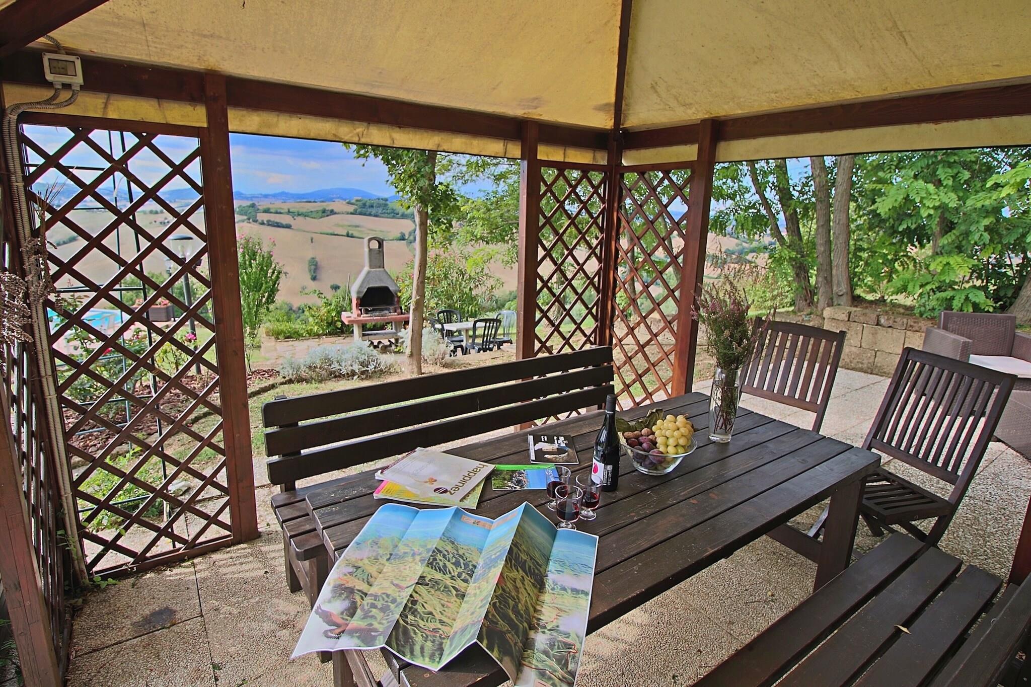 Diese schöne 1-Zimmer-Wohnung bietet Platz für eine 3-köpfige Familie. Es verfügt über einen gemeinsamen Garten und einen gemeinsamen Swimmingpool mitten im Grünen und ist eine perfekte Flucht aus dem stressigen Stadtleben. Das Stadtzentrum ist nur 200 m entfernt. Grundlegende Einkäufe sind in 500 m Entfernung möglich. Die Villa hat auch einen Grill und es gibt Spielgeräte für die Kleinen. Es gibt einen Aufenthaltsraum mit Kamin und reichlich Sitzgelegenheiten. Die Zentralheizung sorgt für eine warme Umgebung. Öffentliche Verkehrsmittel sind in 1,5 km Entfernung verfügbar. Piticchio ist ein malerisches Dorf, in dem man sich amüsieren, die unübertroffene Ruhe des Ortes und unvergleichliche Ausblicke genießen kann, umgeben von der Natur. Auf der einen Seite erhebt sich die unwegsame Kette der Apenninen, auf der anderen das Adriatische Meer, und dazwischen erheben sich sanfte Hügel in einer wunderschönen Umgebung, die sich durch eine wirklich außergewöhnliche landschaftliche Vielfalt auszeichnet. Das Dorf Piticchio ist nur wenige hundert Meter vom Haus entfernt. Da die Straßen von Piticchio nicht befahren sind, können Kinder gefahrlos auf der Straße spielen. Um die typische lokale Küche zu entdecken, gibt es in der Nähe von Piticchio und Arcevia viele Restaurants und Agriturismi, wo man einen angenehmen Abend verbringen kann.