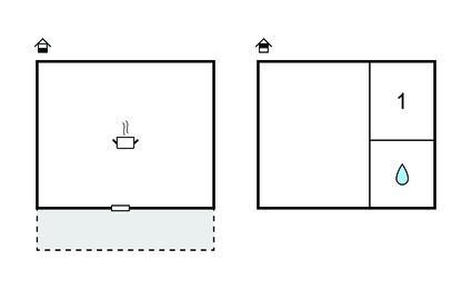 Badezimmer (nr. 1) - WC. Warmes und kaltes Wasser. Dusche