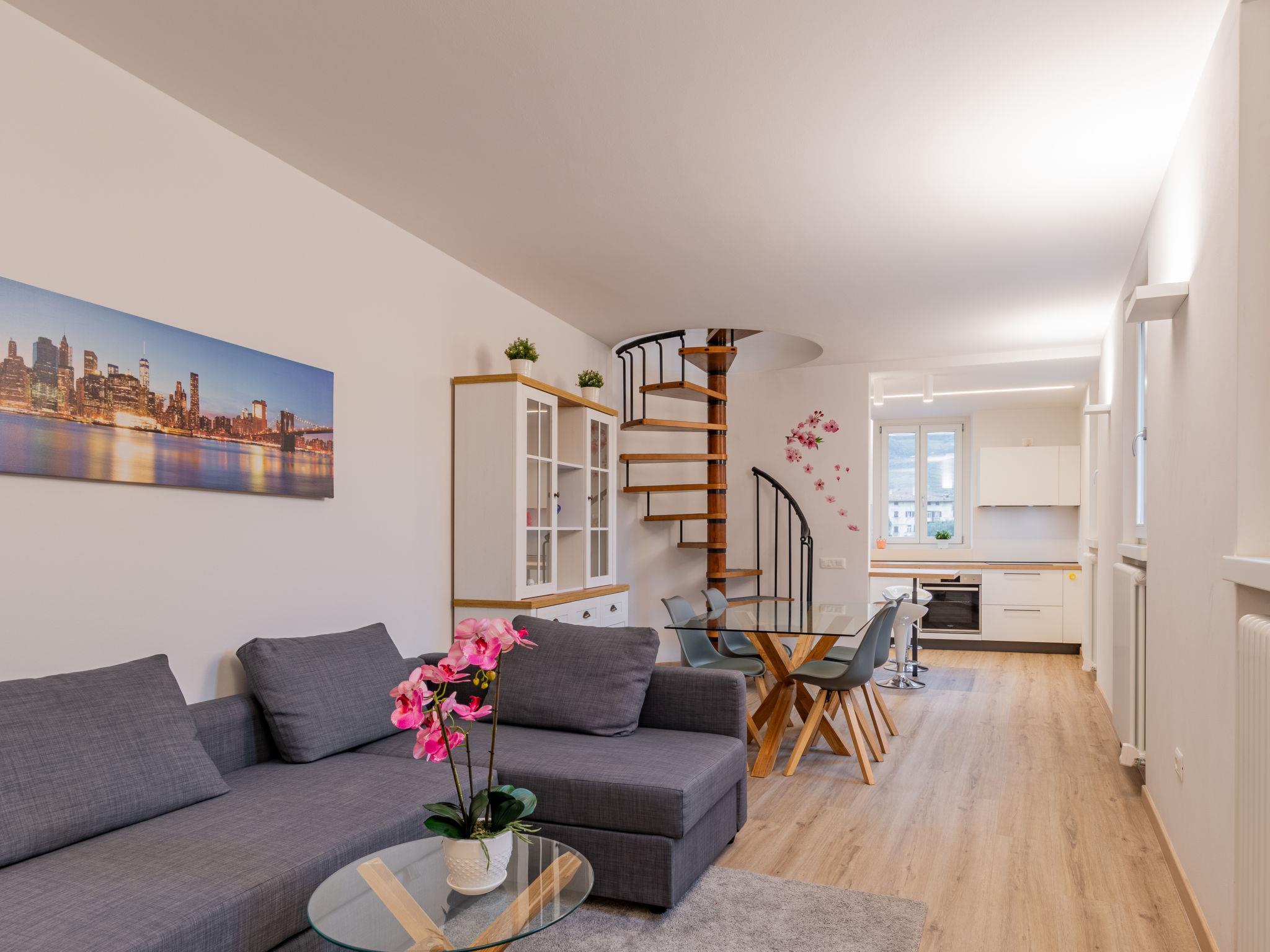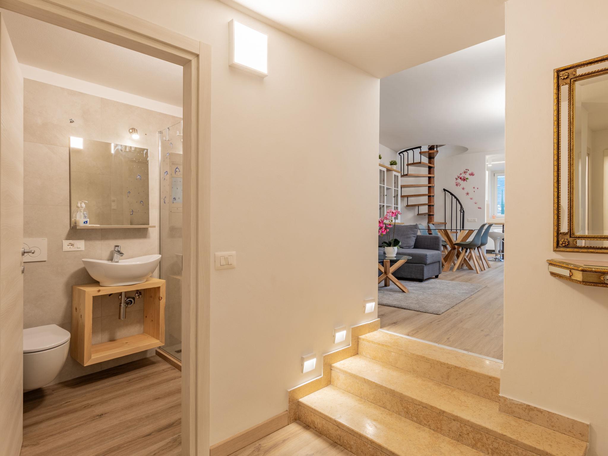 "Crosina", 3-Zimmer-Maisonette-Wohnung 90 m2, unteres Geschoss. Geräumig und hell, sehr modern und gemütlich eingerichtet: Eingang. Gepäckraum. Wohn-/Esszimmer mit 1 Doppeldiwanbett und TV. Offene Küche (Backofen, 4 Induktionskochplatten, Toaster, Tiefkühler, elektrische Kaffeemaschine) mit Bar, Esstisch. Dusche/WC. Heizung. Heizung nur verfügbar von 15.11. bis 20.05. Obergeschoss: 1 Doppelzimmer mit TV. 1 Zimmer mit 2 Betten und 1 Diwanbett. Dusche/Bidet/WC. Heizung. Kleiner Garten. Sitzplatz. Eingeschränkte Sicht auf die Ortschaft. Zur Verfügung: Waschmaschine, Bügeleisen, Fliegengitter, Haartrockner. Parkplatz (überdacht) beim Haus. Bitte beachten: Nichtraucher-Unterkunft. Eigener Eingang, kein Fahrstuhl. IT022006B4R4FWH7UW