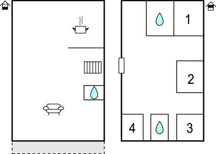 Badezimmer (nr. 1) - WC. Warmes und kaltes Wasser. Dusche