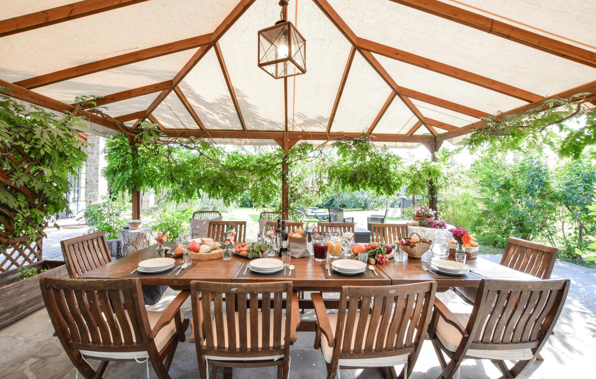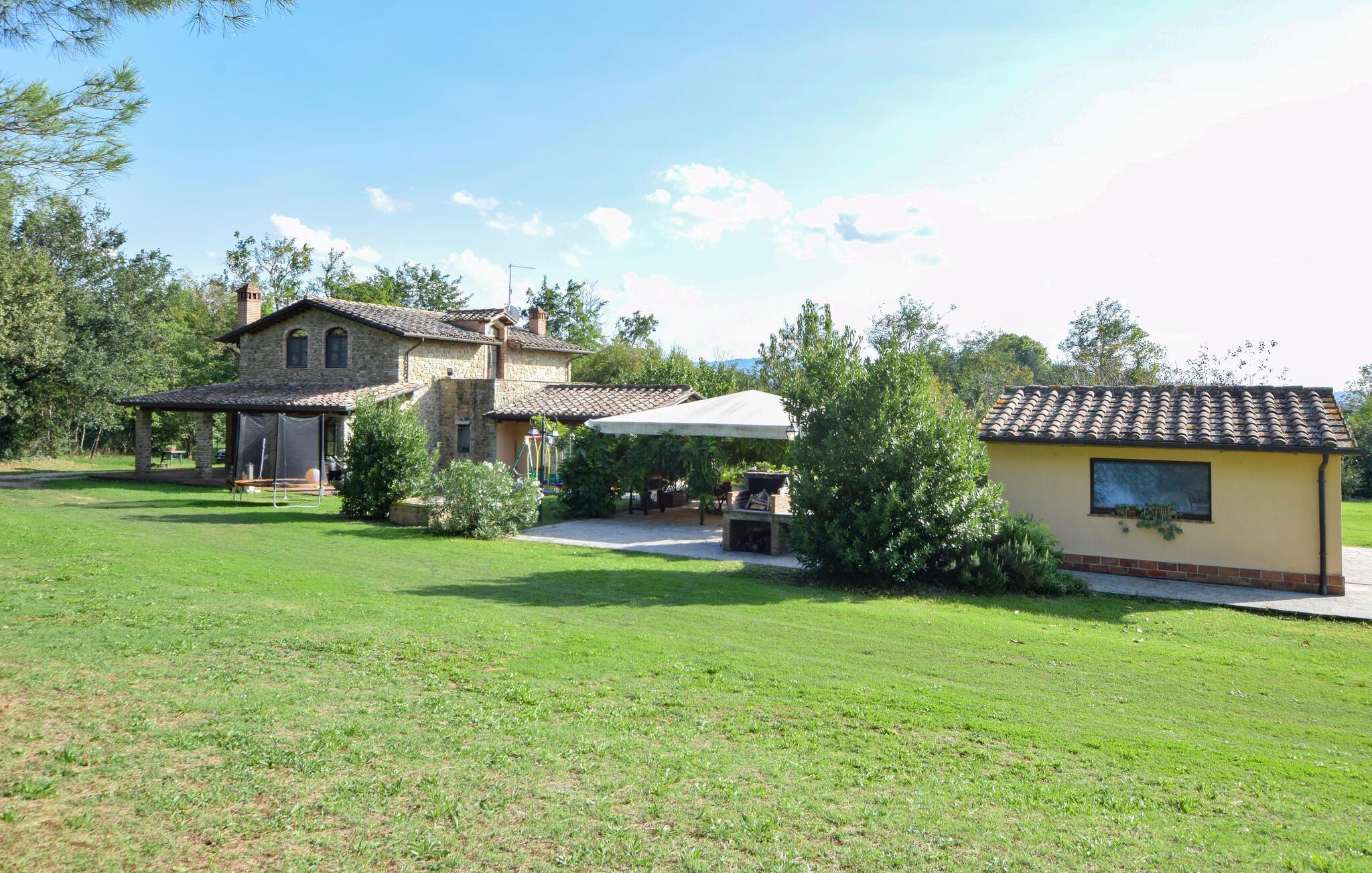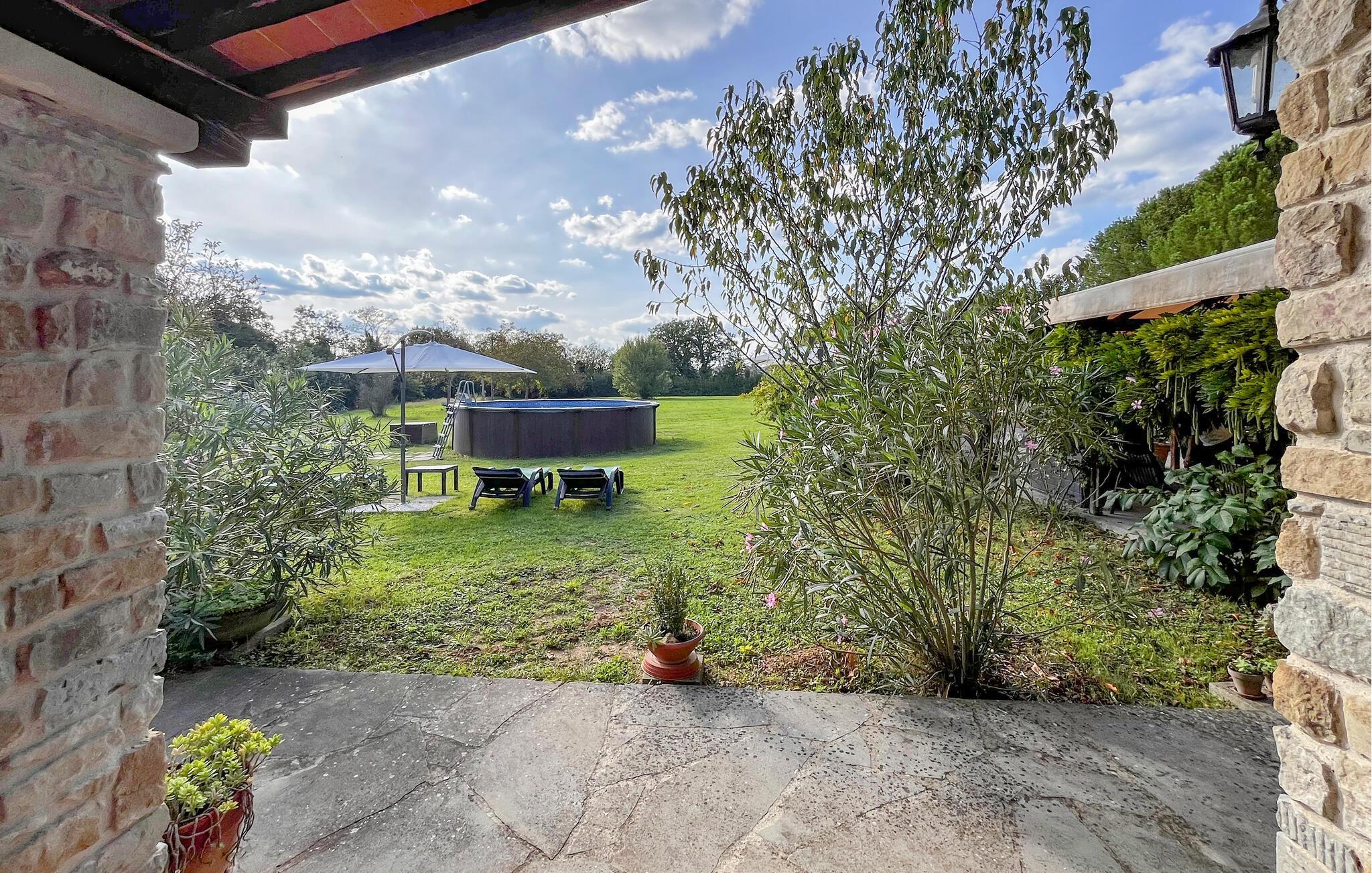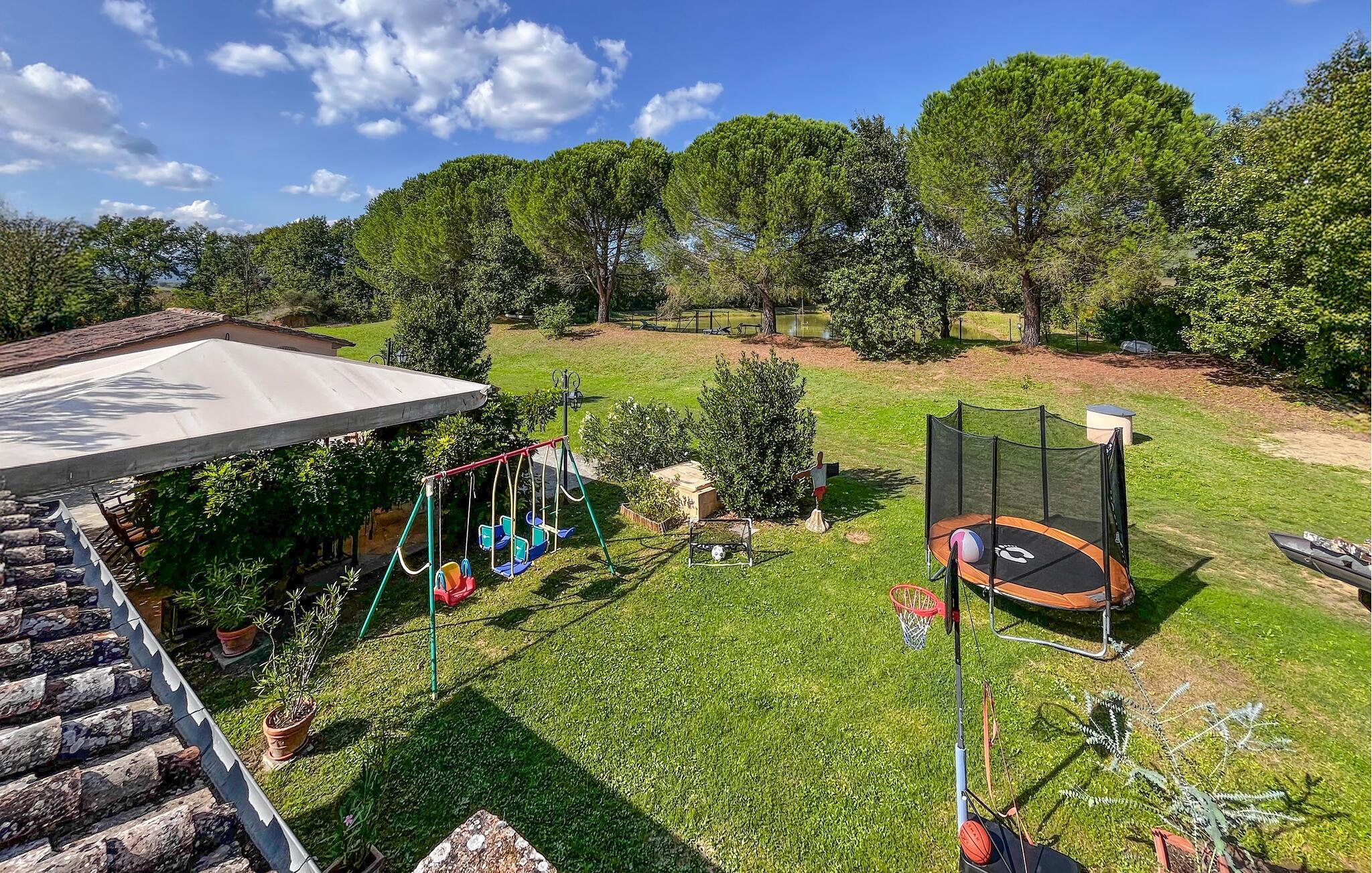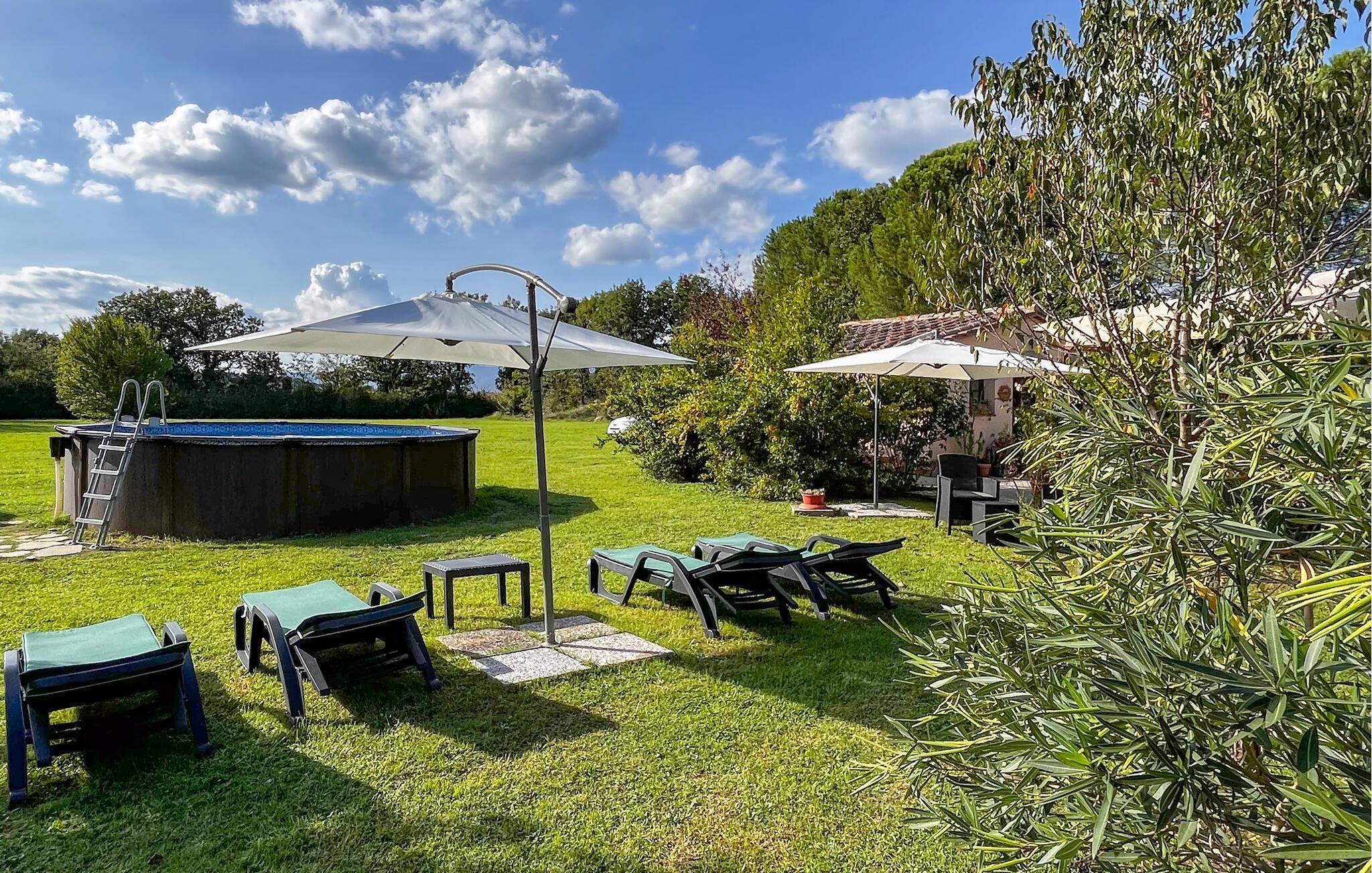 Draußen erwartet Sie ein weitläufiger Garten, in dem Sie die Ruhe der toskanischen Landschaft in vollen Zügen genießen können. Auf der Wiese können Sie sich auf einer Liege in die Sonne legen, ein gutes Buch lesen oder einfach den Blick über das satte Grün schweifen lassen. An warmen Tagen lädt der Pool zu einer erfrischenden Abkühlung ein, während der schattige Sitzbereich ideal für ein gemütliches Essen im Freien ist.