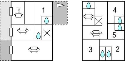 Badezimmer (nr. 5) - WC. Warmes und kaltes Wasser. Dusche