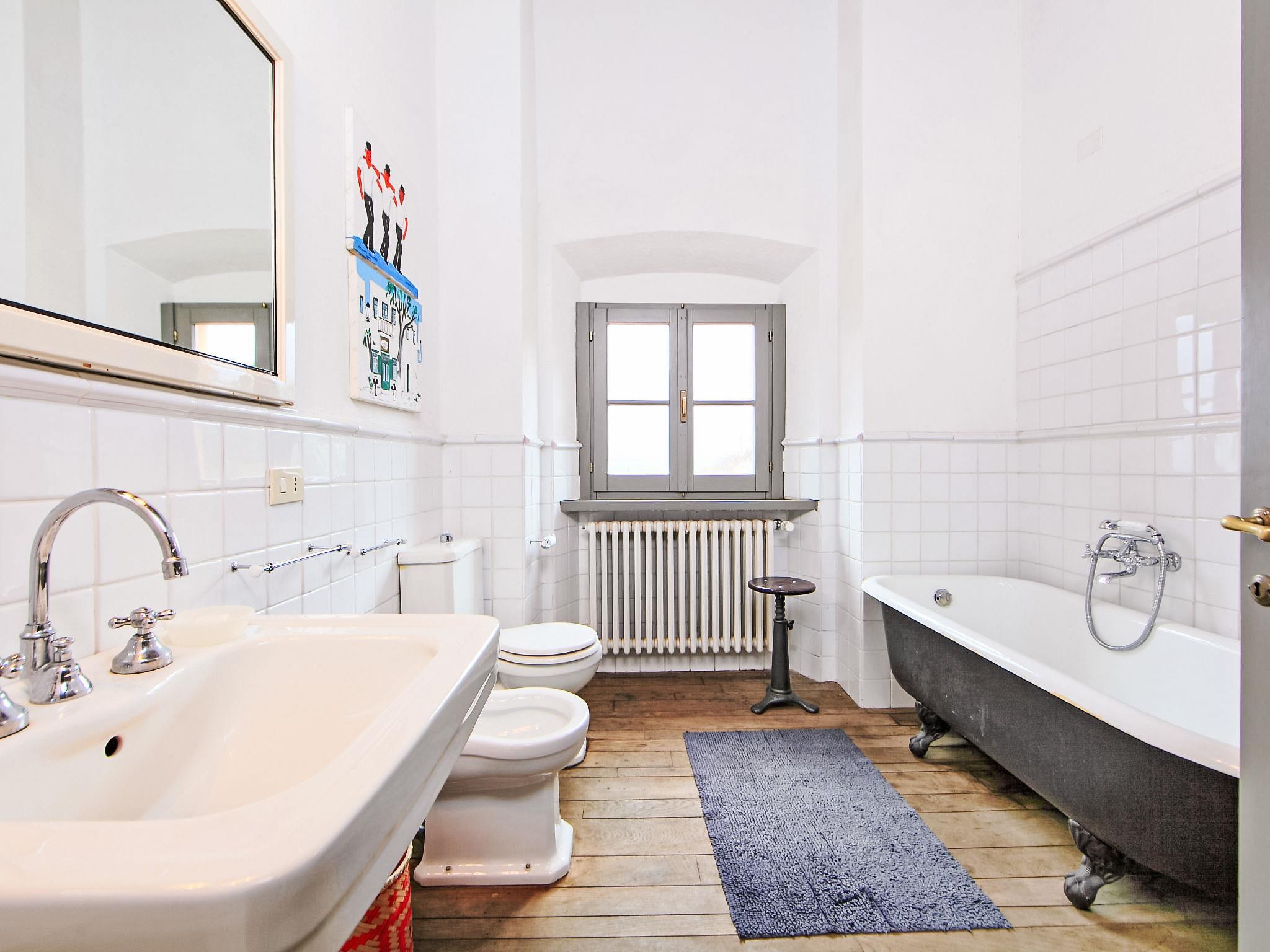 "Villa La Piaggia", 7-Zimmer-Villa 280 m2 auf 2 Stockwerken. Sehr komfortabel eingerichtet: offenes Wohnzimmer mit offenem Kamin und Sat-TV. Ausgang zur Loggia. Wohn-/Schlafzimmer mit 2 Betten. Ausgang zur Loggia. Offene Küche (Backofen, Geschirrspüler, 4 Induktionskochplatten, Mikrowelle, Tiefkühler, elektrische Kaffeemaschine) mit Esstisch. Sep. WC. Obergeschoss: 2 Doppelzimmer. 2 Zimmer, jedes Zimmer mit 2 Betten. Bad/Bidet/WC, Bad/Dusche/Bidet/WC. Sehr schöne Sicht auf das Tal und die Landschaft. Zur Verfügung: Waschmaschine. Internet (Wireless LAN, gratis). Maximal 1 Haustier/Hund erlaubt. IT051002B3TJNHRQPA