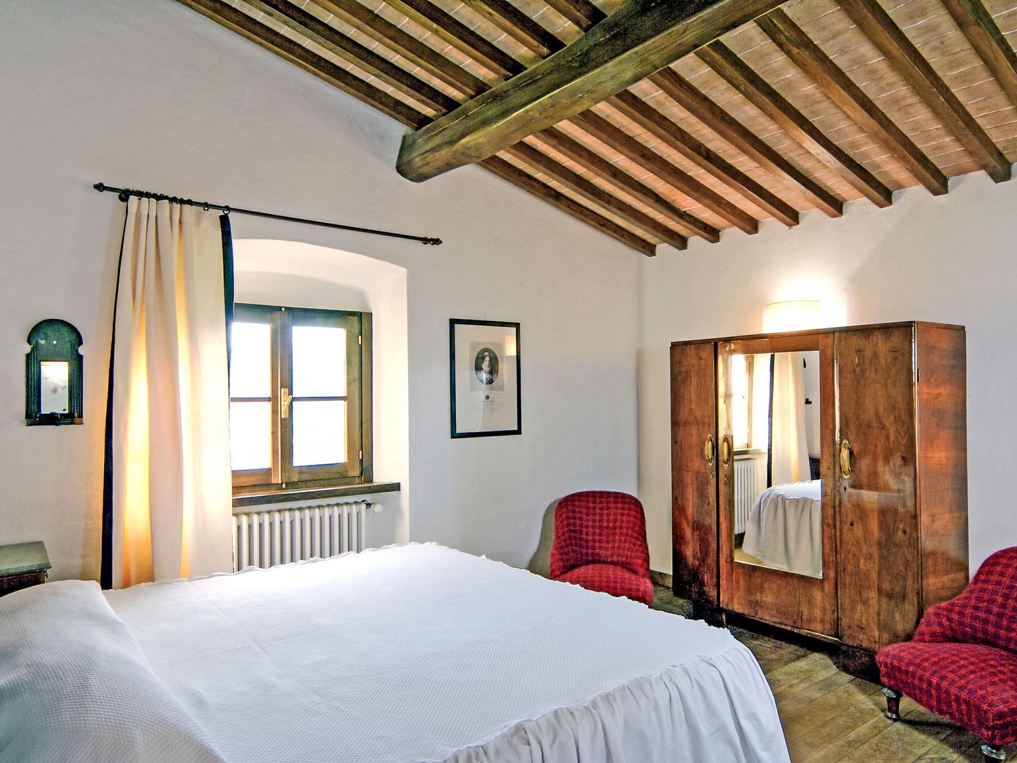 Villa La Piaggia befindet sich in sehr ruhiger Lage, 5 km von der Ortschaft Civitella della Chiana und 25 km vom Zentrum von Arezzo entfernt. Das kleine Dorf hat seine Charakteristiken aus früheren Zeiten beibehalten. Es gibt dort ein typisches Restaurant und einige kleine Geschäfte. Vom Haus und dem panoramareichen Schwimmbad aus überblickt man das gesamte Tal bis hin nach Monte S. Savino in der Ferne (15 km). Die Villa ist mit rustikalen, toskanischen Möbeln eingerichtet, die mit anderen Stücken im Ethno-Stil gut kombiniert worden sind. Das Anwesen erreicht man über eine ungepflasterte, aber gut erhaltene Strasse, 2.5 km. Sehr schönes, gemütliches, freistehendes Bauernhaus "La Piaggia", 350 m.ü.M., renoviert im Jahre 2000. 25 km vom Zentrum von Arezzo, 50 km vom Zentrum von Siena, alleinstehende, ruhige Lage auf einem Hügel. Zur Alleinbenutzung: Garten 900 m2 (eingezäunt), Schwimmbad (5 x 10 m, 140 - 250 cm tief, saisonale Verfügbarkeit: 27.Apr. - 12.Okt.). Aussendusche, Gartenmöbel, Grill. Heizung vor Ort zu zahlen, Heizung nur verfügbar von 01.Nov. - 07.Apr.. Zufahrt bis zum Haus (2.5 km Naturweg). Parkplatz auf dem Grundstück. Einkaufsgeschäft 5 km, Lebensmittelgeschäft 5 km, Supermarkt 12 km, Restaurant 5 km, Bushaltestelle 5 km, Thermalbad "Rapolano Terme" 30 km. Tennis 20 km, Reitstall 15 km. Nahe gelegene Sehenswürdigkeiten: Civitella in Val di Chiana 5 km, Monte San Savino 16 km, Castelnuovo Berardenga 28 km, Rapolano Terme 30 km, Gaiole in Chianti 40 km.