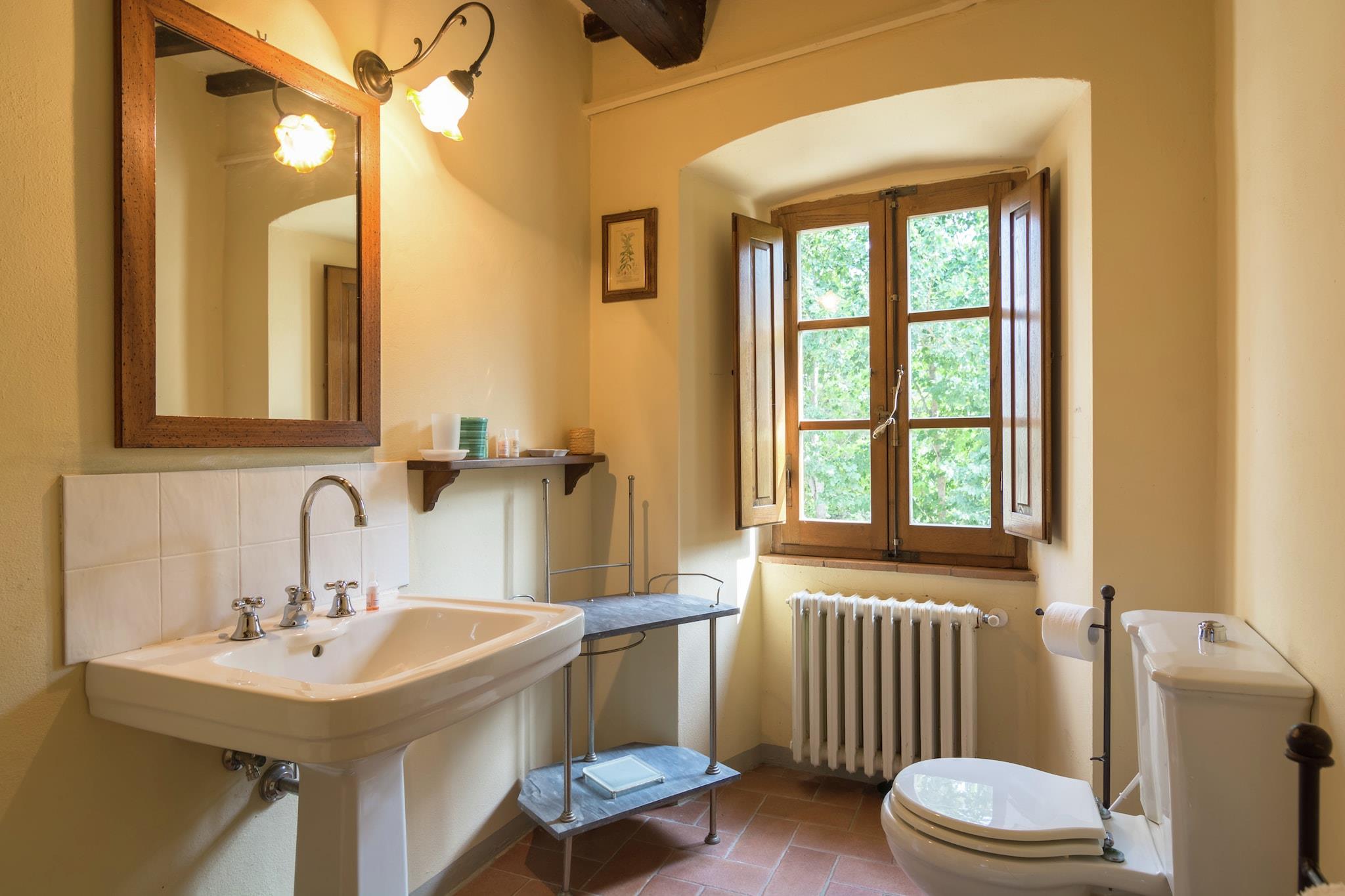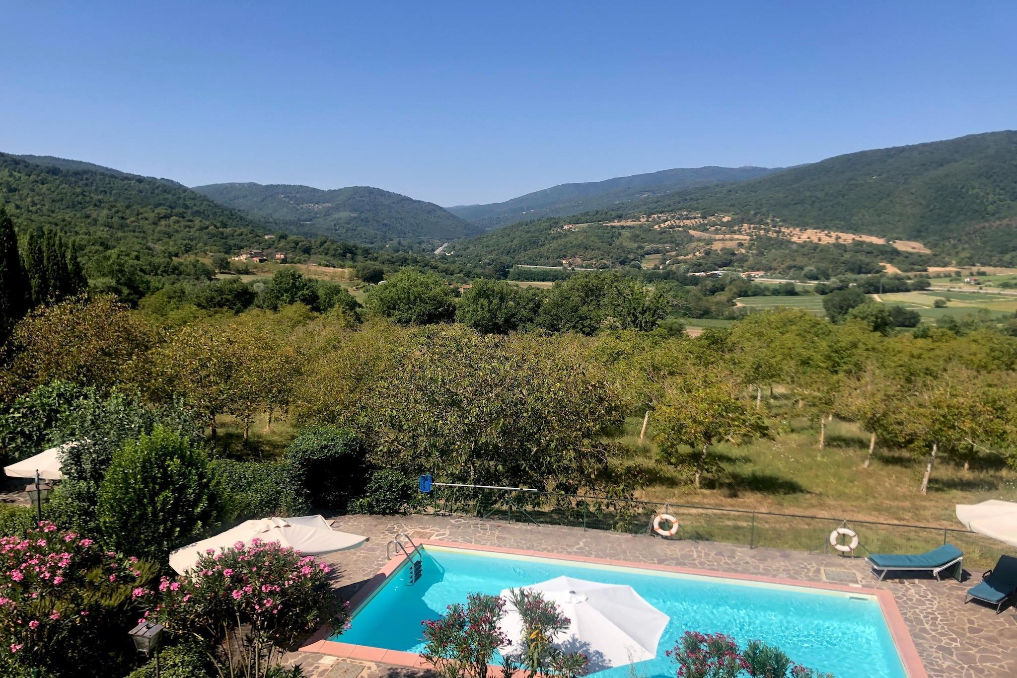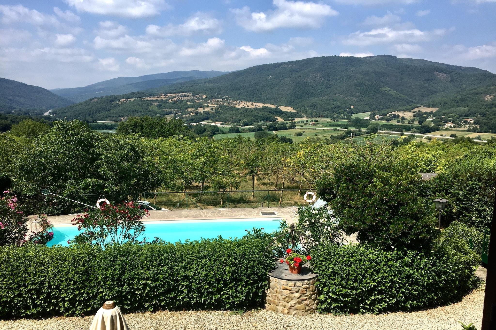 In Le Ville di Monterchi bietet dieses charmante Ferienhaus eine perfekte Mischung aus rustikalem toskanisch-umbrianischem Charme und modernem Komfort. Eine private überdachte Terrasse lädt zum Entspannen mit Blick auf den Garten ein, während ein gemeinschaftlicher Swimmingpool (gemeinsam mit anderen Gästen, 10 x 5 m, geöffnet vom 1. Mai bis 1. Oktober) für erfrischende Momente unter der warmen Sonne sorgt. Im Inneren finden Sie gemütliche Wohnbereiche mit Kamin und Satellitenfernsehen, ideal zum Entspannen nach einem erlebnisreichen Tag. Die voll ausgestattete Küche mit Geschirrspüler und Mikrowelle ermöglicht eine einfache Zubereitung von Mahlzeiten. Familien werden die Verfügbarkeit eines Kinderbettes und eines Hochstuhls zu schätzen wissen, während ein gemeinschaftlicher Grill und ein Gartenbereich Möglichkeiten für gesellige Mahlzeiten im Freien bieten. Das Haus ist das Tor zu einigen der wertvollsten kulturellen und historischen Stätten Italiens. Nur 3 km entfernt liegt Monterchi, eine malerische Stadt, die für ihre Panorama-Landschaften und das berühmte Fresko "Madonna del Parto" von Piero della Francesca bekannt ist. Eine kurze Autofahrt bringt Sie zu den mittelalterlichen Straßen von Anghiari, dem künstlerischen Erbe von Sansepolcro und Caprese - dem Geburtsort von Michelangelo.