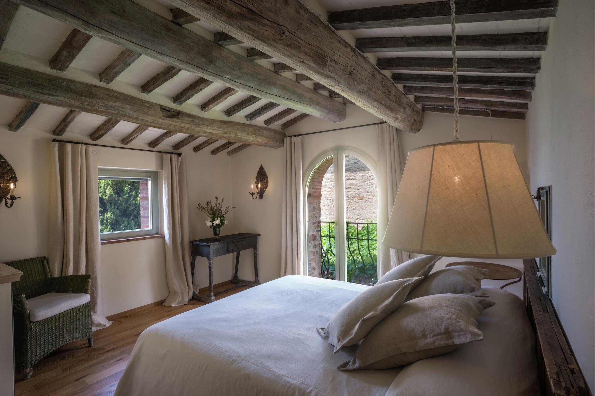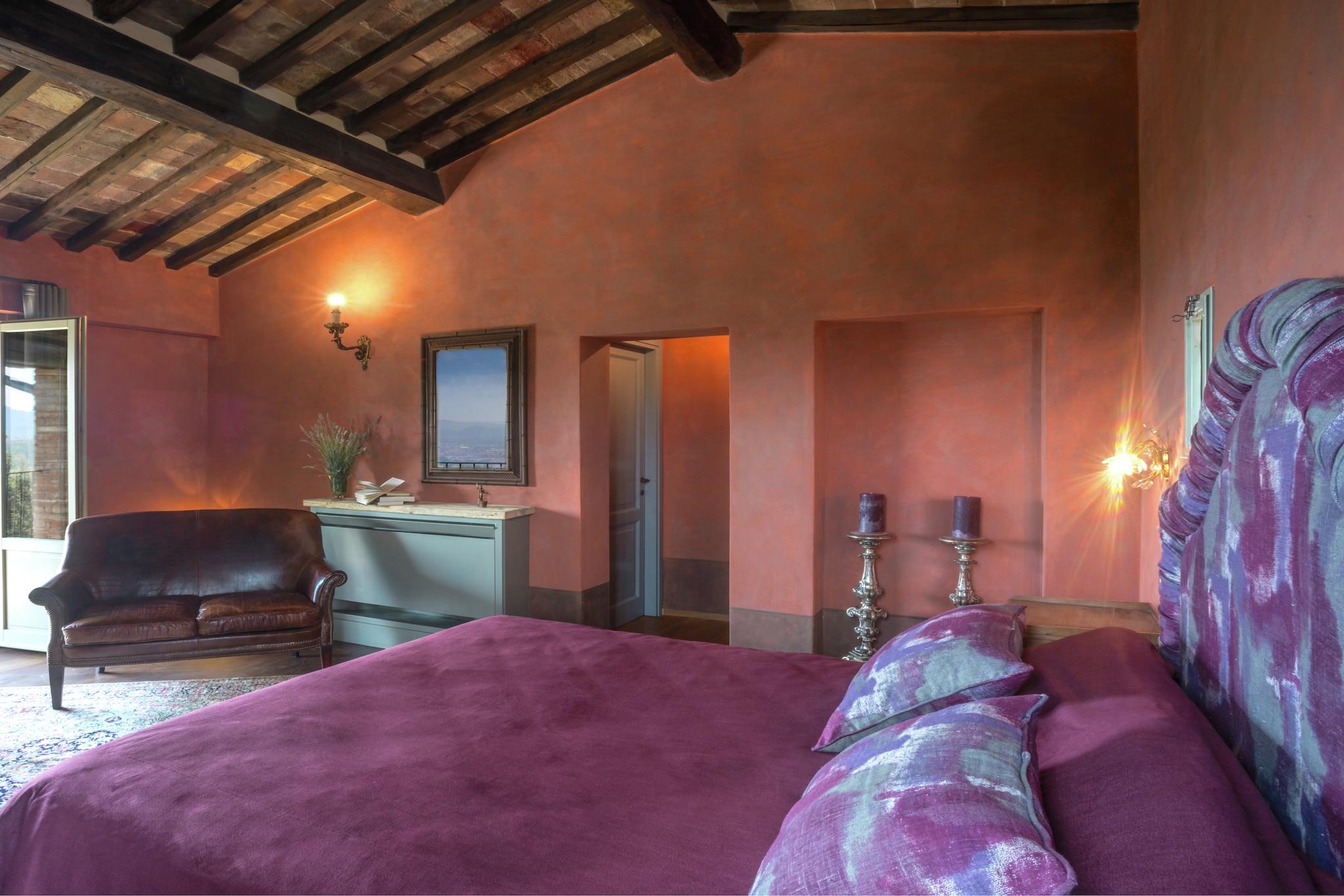 Etwas außerhalb von Arezzo bietet diese elegante Villa einen ruhigen Rückzugsort, umgeben von Olivenhainen, Wäldern und Bio-Weinbergen. Sie ist ein idealer Rückzugsort für Familien oder Gruppen, die im Herzen der Toskana entspannen möchten. Der private Pool lädt zu entspannten Nachmittagen in der Sonne ein, und der große Garten eignet sich perfekt für Mahlzeiten im Freien und abendliche Grillabende. Die rustikale Architektur der Villa verbindet sich nahtlos mit modernem Komfort. Jedes geräumige Schlafzimmer verfügt über ein eigenes Bad und bietet Privatsphäre und Komfort. Die gemütlichen Kamine und die malerische Terrasse laden zum Entspannen bei einem Glas Wein aus der Region ein. Die Lage ist ideal für alle, die die kulturellen und kulinarischen Schätze der Toskana erkunden möchten. Nur eine kurze Autofahrt entfernt befindet sich die mittelalterliche Stadt Arezzo, die für ihre Antiquitätenmärkte, Renaissance-Kunst und die beeindruckenden Fresken von Piero della Francesca bekannt ist. Weinliebhaber werden die nahegelegenen Weinberge von Pomaio zu schätzen wissen, die für ihre Bio-Weine und Panoramaterrassen für Verkostungen bekannt sind. Zum Essen gehen Sie ins La Tagliatella oder in die Antica Osteria l'Agania in Arezzo und genießen authentische toskanische Gerichte. Genießen Sie die Aromen der Landschaft im nur wenige Minuten entfernten Ristorante La Capannaccia. Golfer können im etwa 50 km entfernten Valdichiana Golf Club abschlagen, während Naturliebhaber den Trasimenischen See (68 km) ideal für Tagesausflüge und Picknicks am Wasser finden. Ob Sie auf der Terrasse einen Espresso genießen oder Bergdörfer erkunden – diese Villa ist Ihr Tor zur zeitlosen Magie der Toskana.