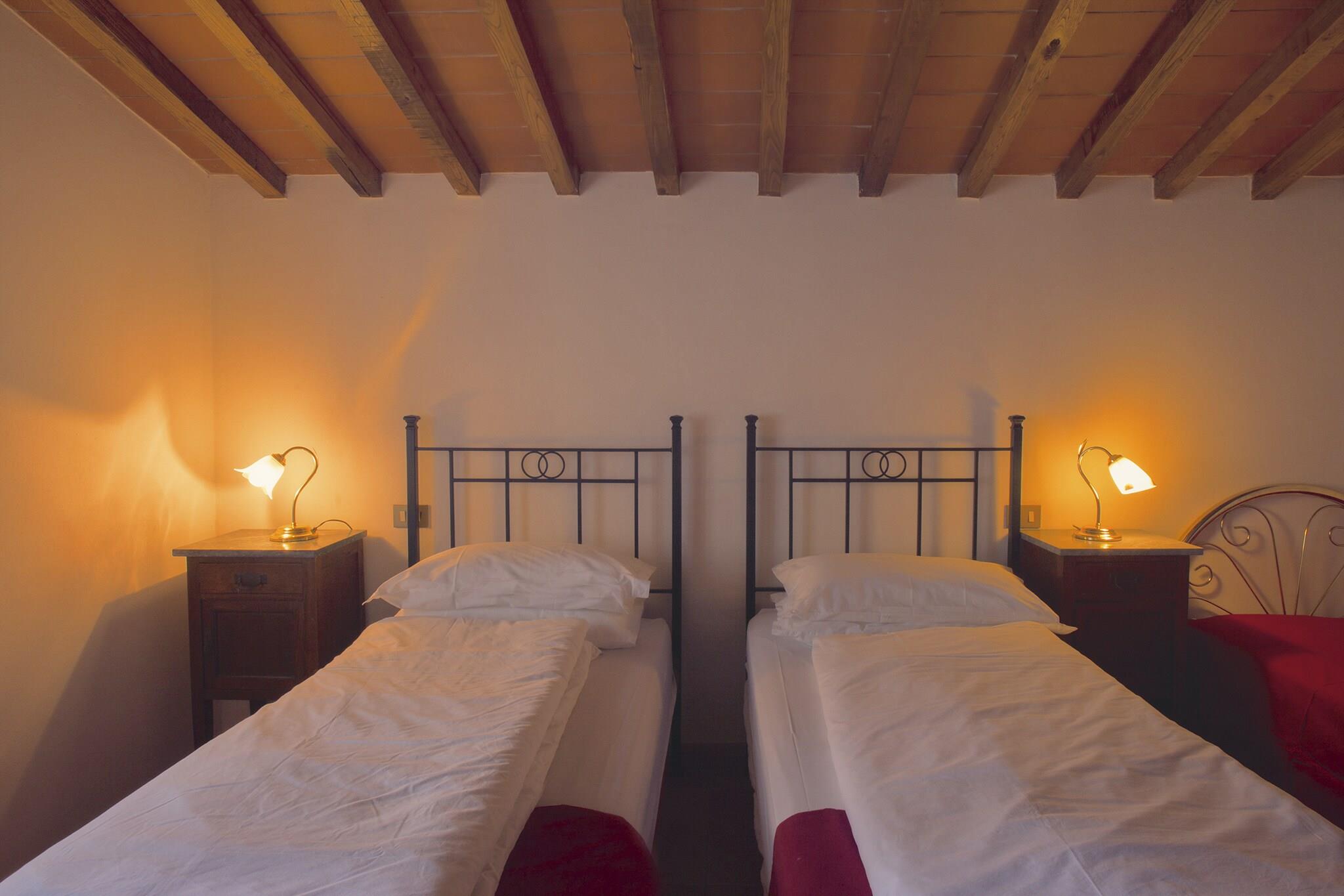 Dieses Bauernhaus in Campriano mit Blick auf das Valdichiana bietet mit seinen 2 Schlafzimmern Platz für 5 Personen. Ein Gemeinschaftspool sorgt bei hohen Temperaturen für Abkühlung. Es ist ideal für kleine Familien und Gruppen. Das 500 m entfernte Waldgebiet lädt zu Wanderungen und Spaziergängen ein. Restaurants mit köstlichen Gerichten erreichen Sie nach 2 km. Supermärkte sind 4 km entfernt. Das 9 km entfernte Stadtzentrum mit seinem Nachtleben ist ebenfalls gut zu erreichen. Der möblierte Gemeinschaftsgarten lädt zum Entspannen bei herrlicher Aussicht oder zum Grillen ein. Spielgeräte sorgen für viel Spaß im Haus. Fahrräder stehen gegen eine geringe Gebühr zur Verfügung, um die Umgebung zu erkunden. Das zentral beheizte Anwesen verfügt außerdem über eine Gemeinschaftswaschmaschine, sodass Sie Ihre Wäsche waschen können. 2 Haustiere sind gegen eine geringe Gebühr erlaubt. Öffentliche Verkehrsmittel erreichen Sie nach 4 km.