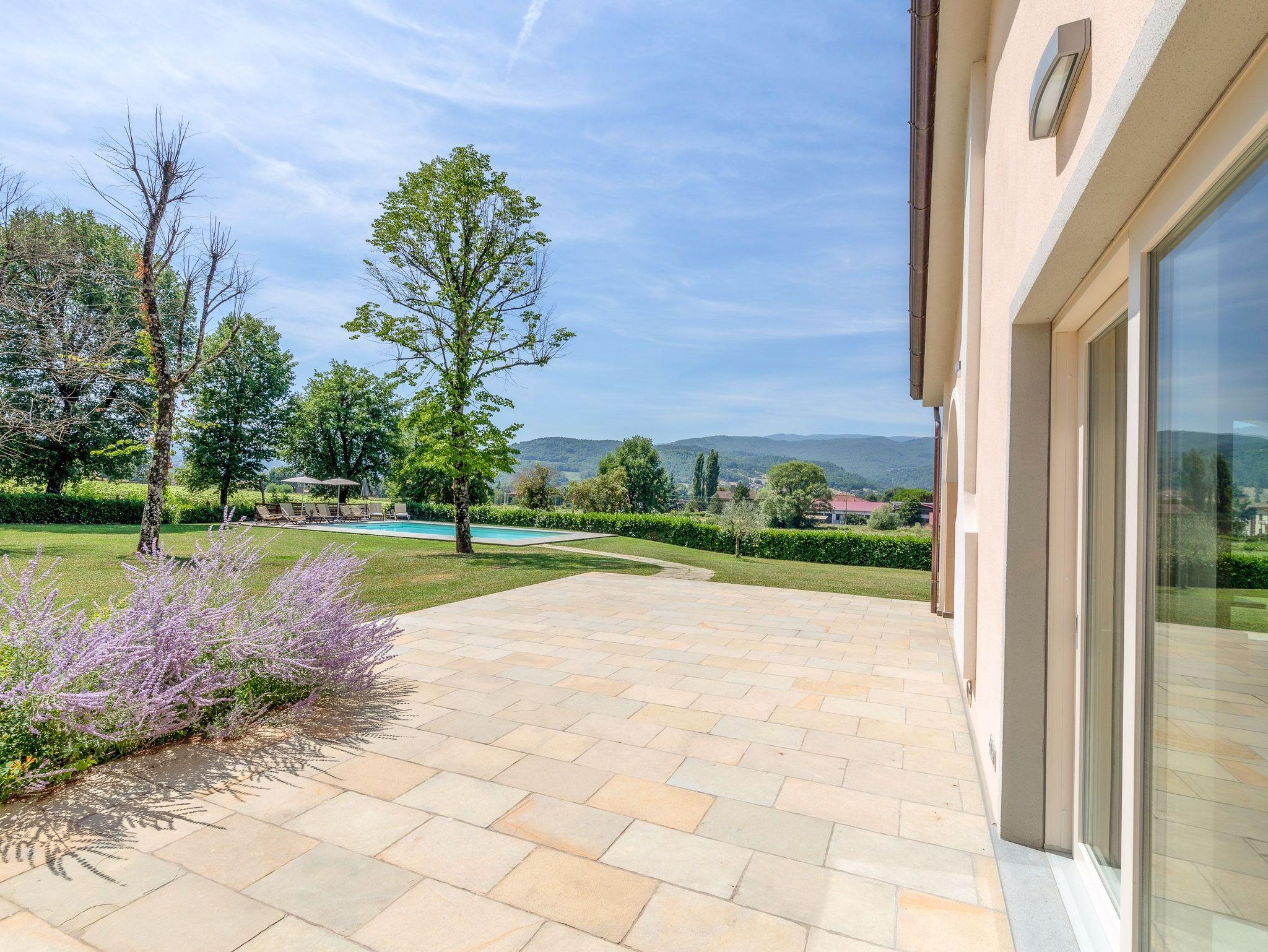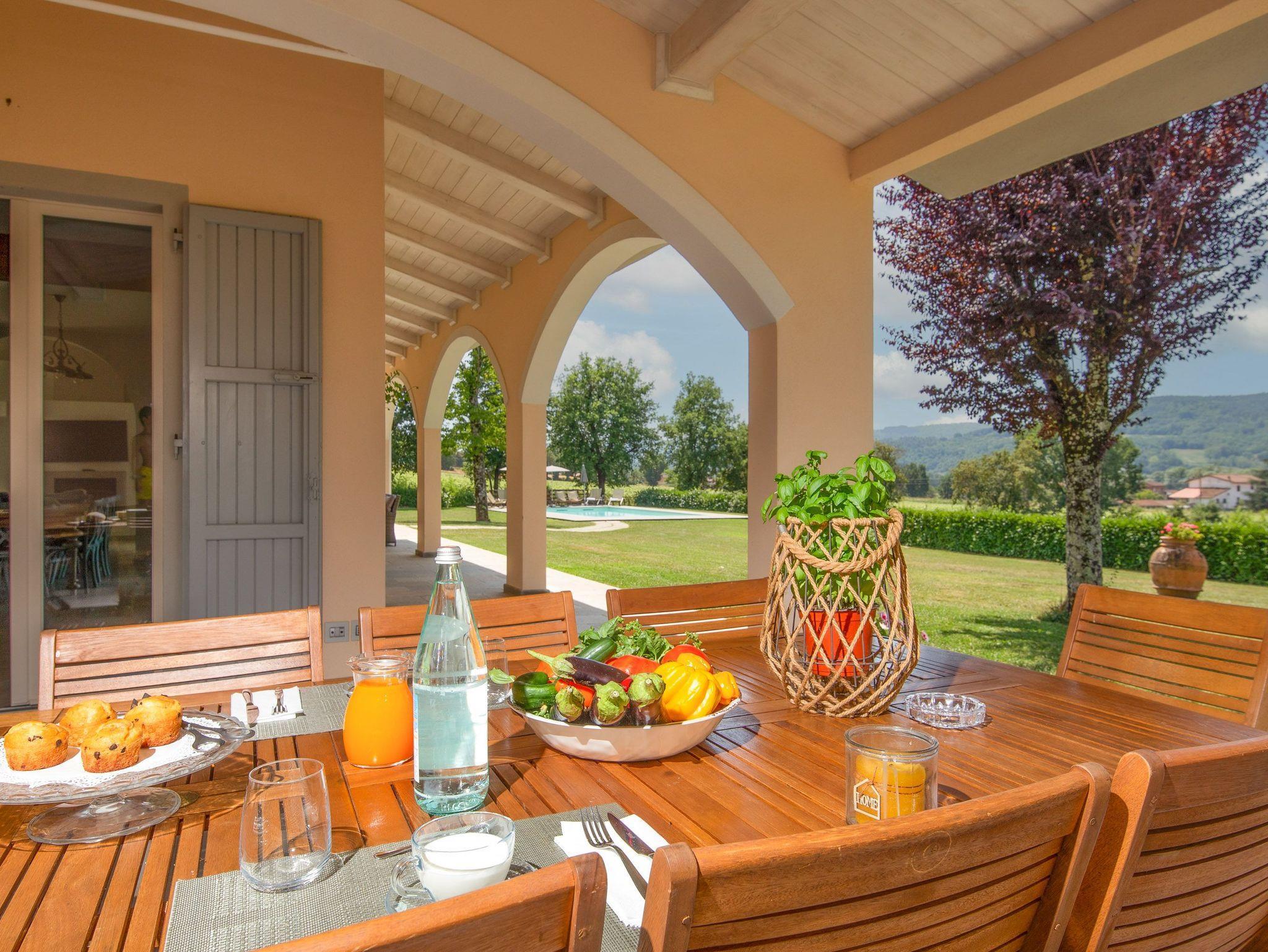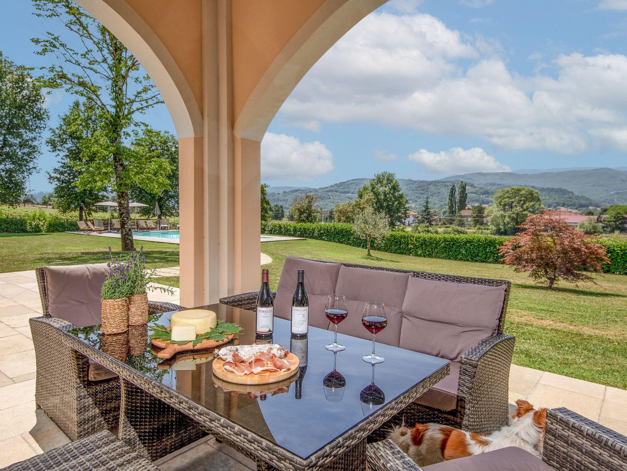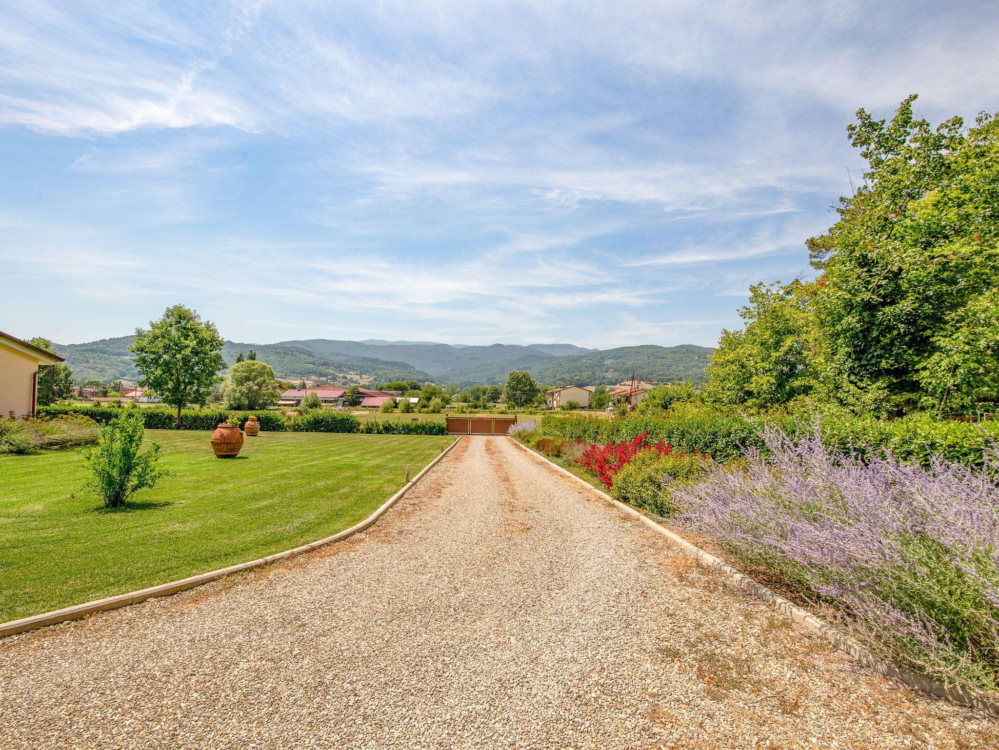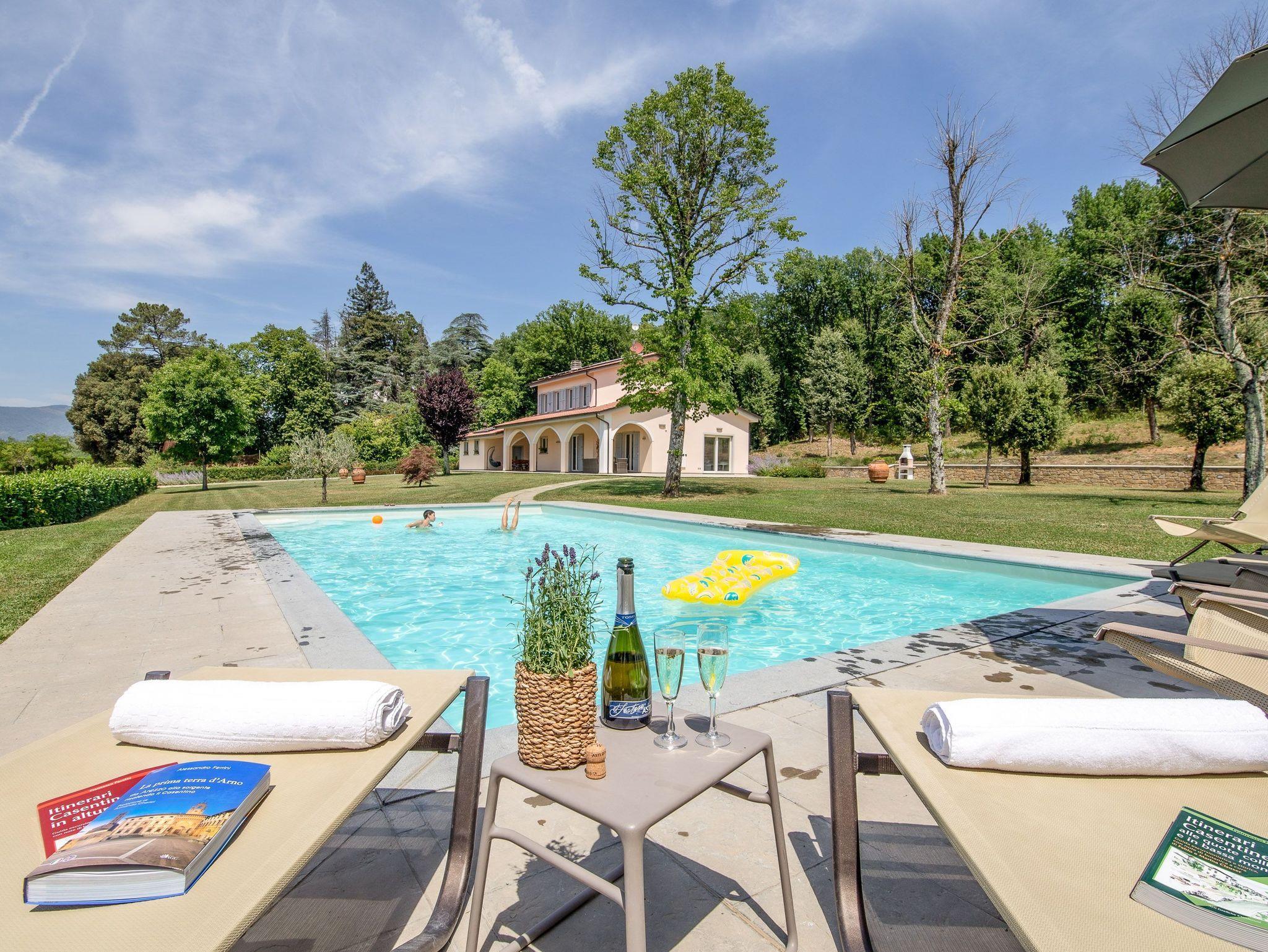 Das Grundstück betreten Sie über ein mit Fernbedienung gesteuertes Gartentor. Das 2400 Quadratmeter große Areal ist sehr privat gestaltet und von einem 1 Meter hohen Zaun umgeben. Der 6 x 12 Meter große Pool mit Römertreppe und 1,6 Meter Tiefe liegt wunderschön und ist von der Terrasse aus einsehbar. Nachts ist er romantisch beleuchtet. Eine Solardusche und mehrere Sitz- und Liegeflächen rund um den Pool laden zum Verweilen ein. Von der Veranda aus genießen Sie einen atemberaubenden Blick auf das Schloss von Poppi. Genießen Sie Ihren Urlaub in einer modernen und luxuriösen Atmosphäre.