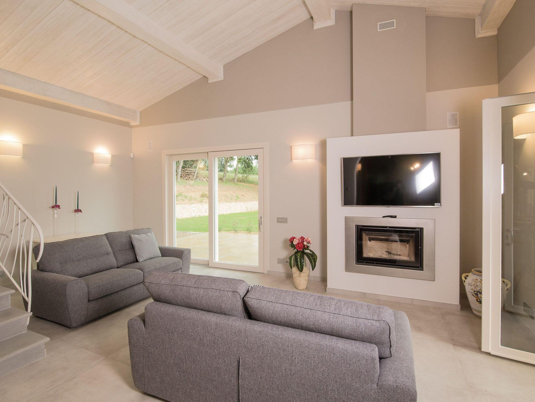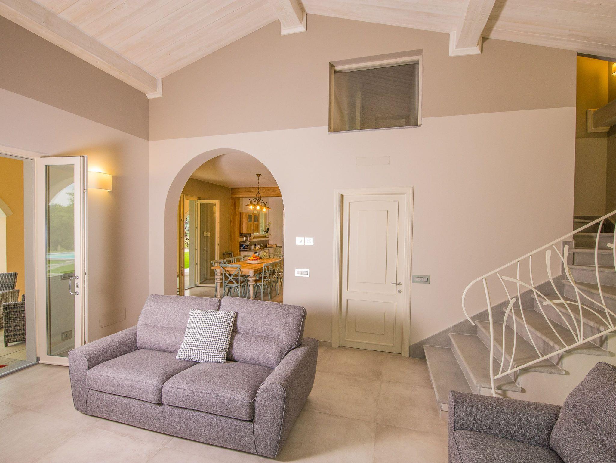 Vom Wohnbereich aus gelangen Sie über eine Treppe in den oberen Bereich des Hauses, wo sich eine wunderschöne Familiensuite befindet. Diese umfasst einen Schlafbereich mit Doppelbett, einen Schlafbereich mit zwei Einzelbetten und ein en-suite Bad. Zwei weitere Doppelschlafzimmer, ebenfalls mit en-suite Bädern, bieten zusätzlichen Komfort. Alle Wohnräume sind mit einer wunderschönen Einrichtung versehen, die durch klare Linien und viel Licht besticht.