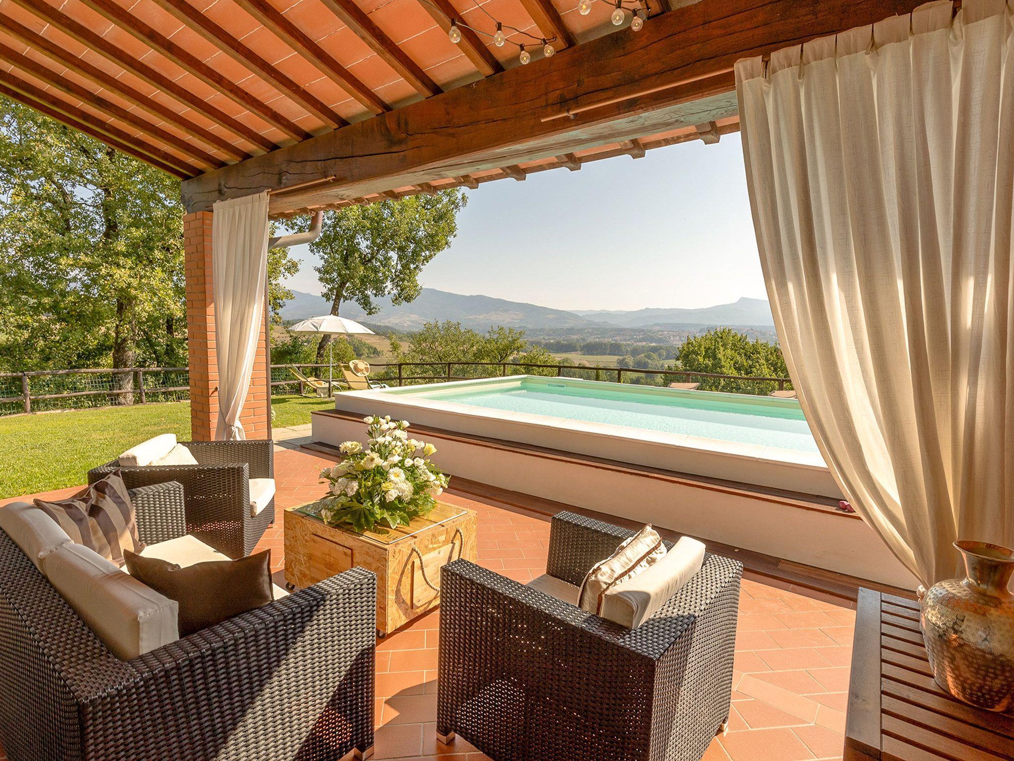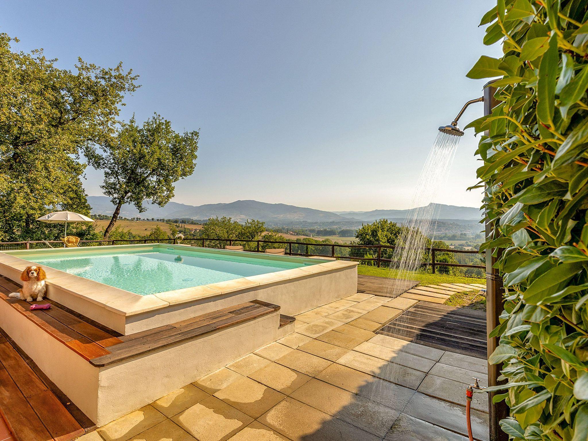 Das 1000 Quadratmeter große Grundstück ist von einem 1,20 Meter hohen Zaun umgeben und bietet einen geschlossenen Garten zur Alleinnutzung. Der neue Pool (8 x 4 Meter) mit Außendusche, ein Holzgrill und eine überdachte Loggia laden zum Verweilen ein. Ein großzügiger Carport mit E-Ladestation steht Ihnen für Ihr Fahrzeug zur Verfügung. Genießen Sie den traumhaften Ausblick auf Bibbiena, malerische Felder, endlose Wiesen und Olivenhaine ? ein Erlebnis, das man einfach selbst erleben muss!