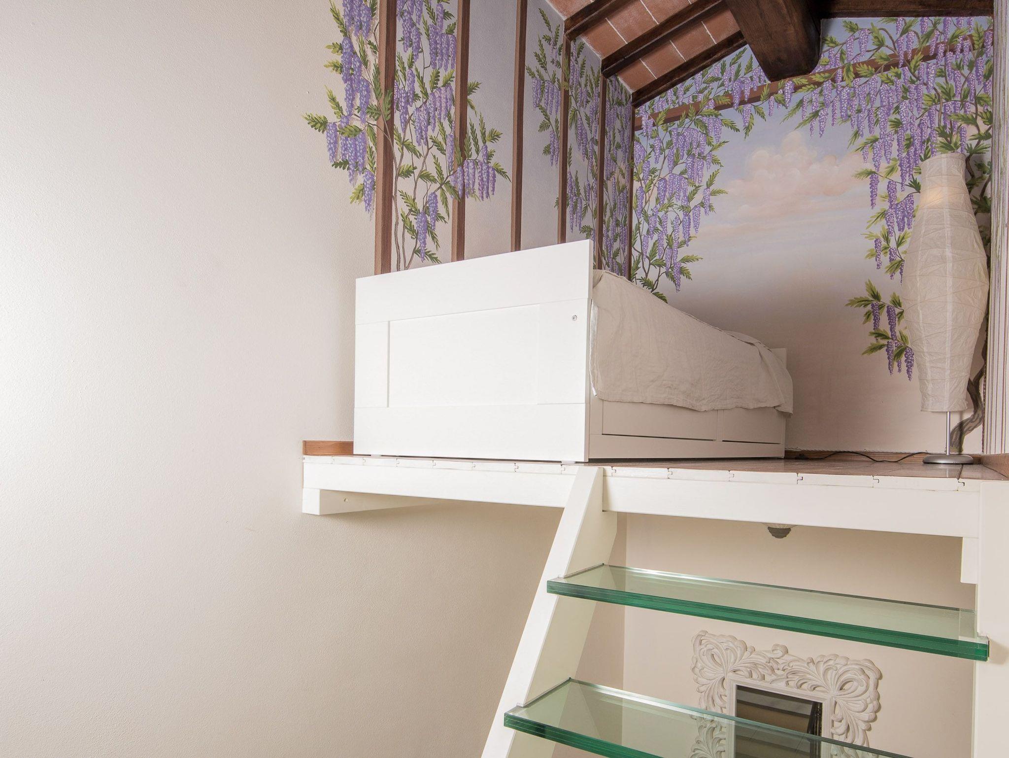 Über eine Innentreppe gelangen Sie in den ersten Stock, wo ein weiteres Doppelschlafzimmer und eine offene Mansarde mit einem Einzelbett für kleine Prinzen oder Prinzessinnen warten. Ein modernes Duschbad mit WC, Waschtisch und Bidet sorgt für zusätzlichen Komfort.