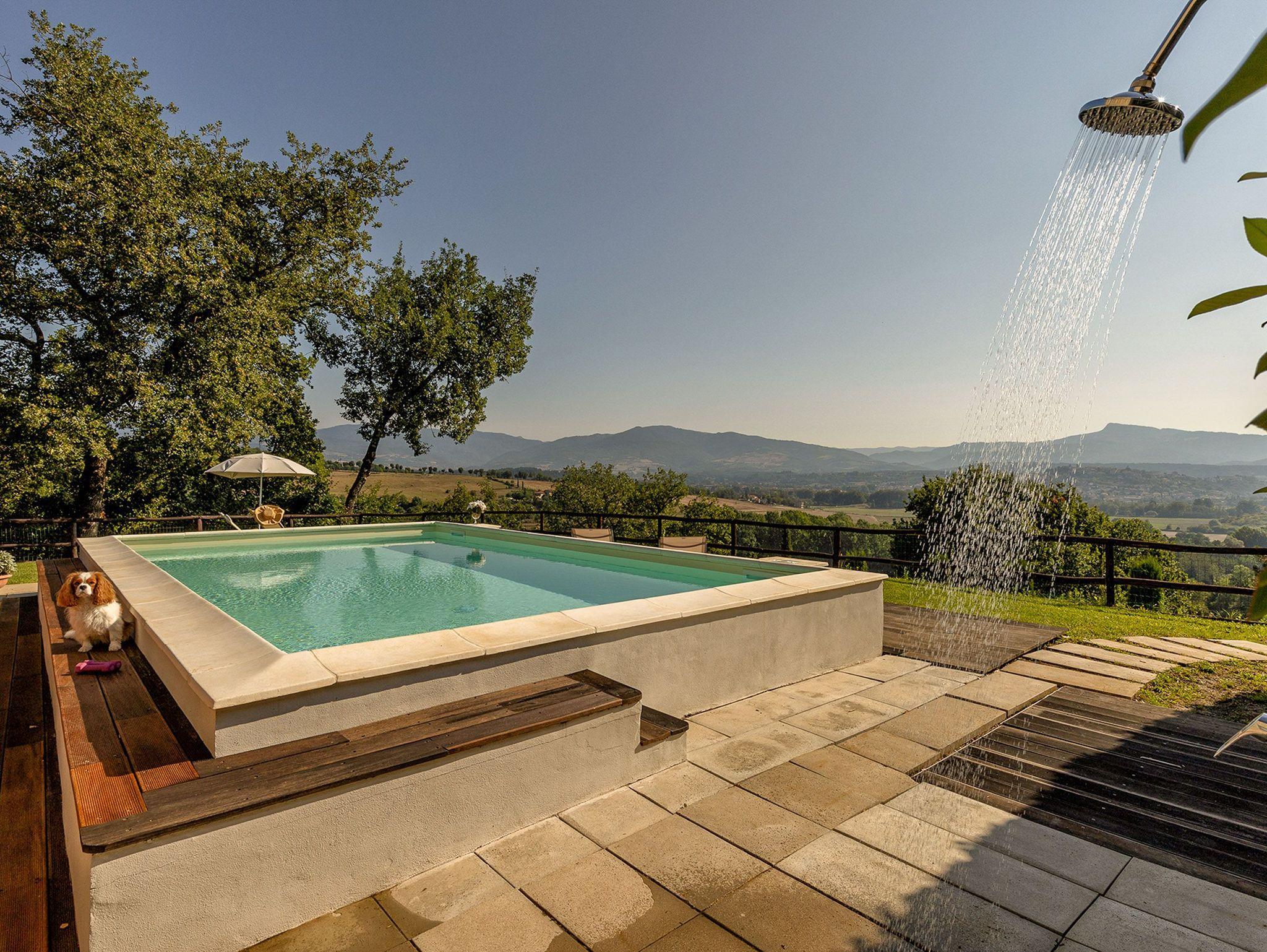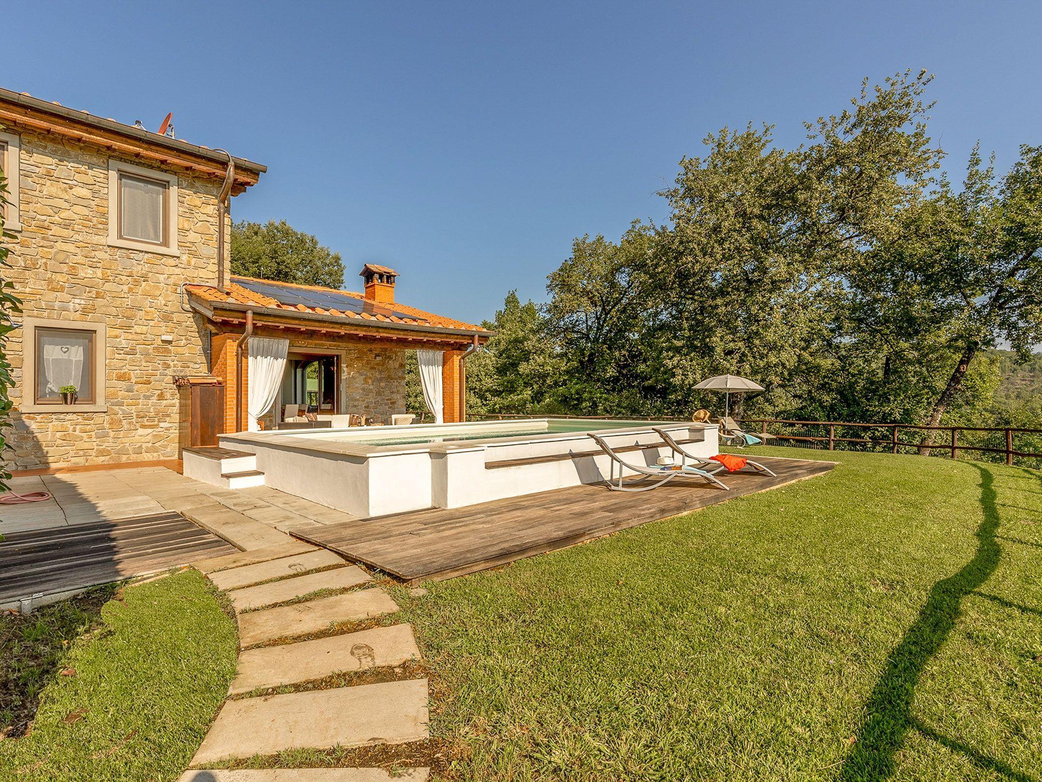 Das 1000 Quadratmeter große Grundstück ist von einem 1,20 Meter hohen Zaun umgeben und bietet einen geschlossenen Garten zur Alleinnutzung. Der neue Pool (8 x 4 Meter) mit Außendusche, ein Holzgrill und eine überdachte Loggia laden zum Verweilen ein. Ein großzügiger Carport mit E-Ladestation steht Ihnen für Ihr Fahrzeug zur Verfügung. Genießen Sie den traumhaften Ausblick auf Bibbiena, malerische Felder, endlose Wiesen und Olivenhaine ein Erlebnis, das man einfach selbst erleben muss!