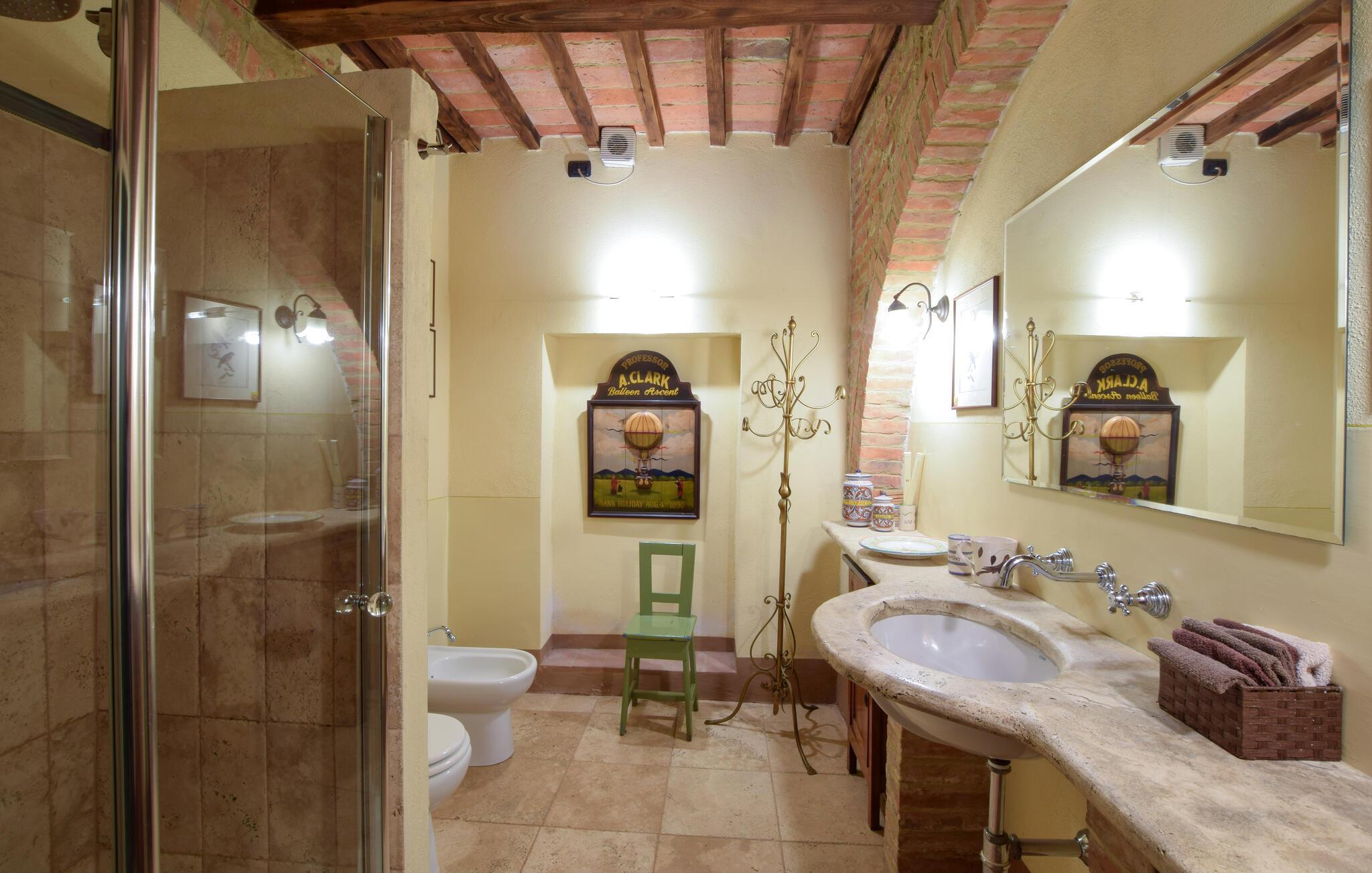 Eingebettet in die malerische Kulisse der Crete Senesi lädt Sie dieses liebevoll restaurierte Haus aus dem 18. Jahrhundert zu unvergesslichen Tagen mit Freunden oder der Familie ein. Freuen Sie sich auf gesellige Kochabende in der modernen Küche und speisen Sie gemeinsam unter alten Holzbalken im behaglich beleuchteten Essbereich. Finden Sie sich für einen Filmabend im gemütlichen Wohnzimmer zusammen oder schmökern Sie in der hauseigenen Bibliothek nach einem interessanten Buch.