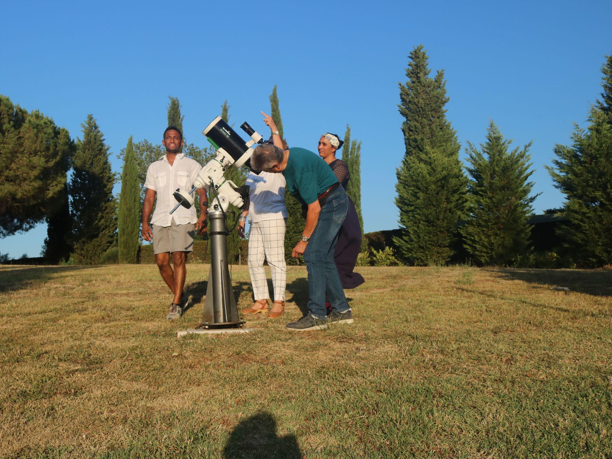 Die Gäste dieser Wohnung haben Zugang zu einem privaten Außenbereich mit Tisch, Stühlen und Liegestühlen.