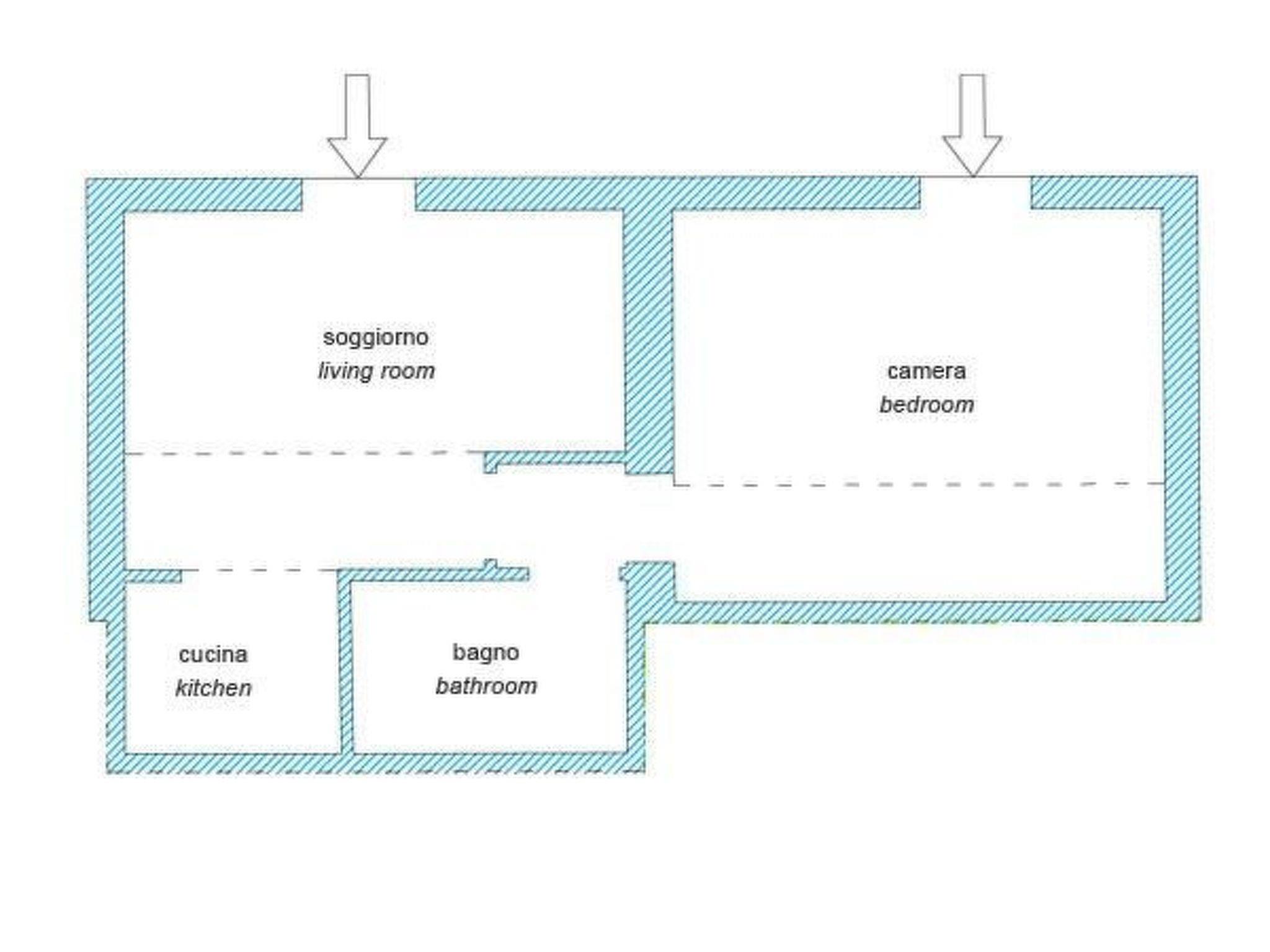 Die Wohnung befindet sich komplett auf einer Ebene. Es gibt ein Wohn- und Esszimmer, eine kleine Küche und ein Dreibettzimmer. Ein Badezimmer mit Dusche vervollständigt diese Einheit.