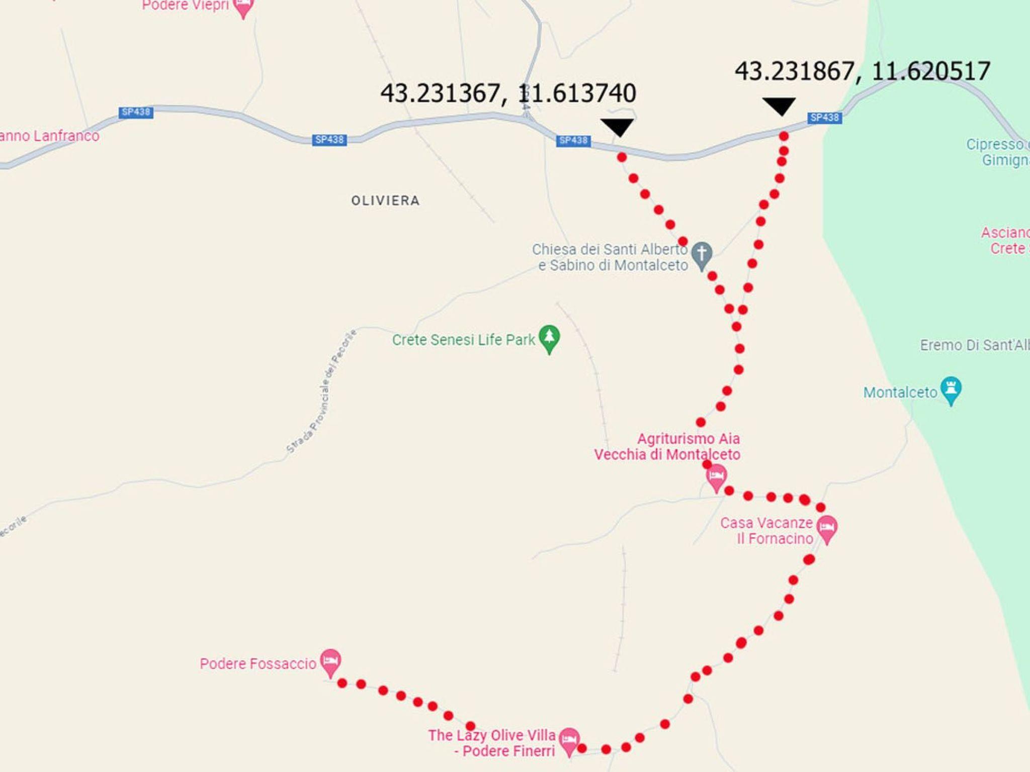 In der Weite der Crete Senesi finden Sie einsame Straßen, kleine mittelalterliche Dörfer, Kirchen, Schlösser, Bauernhöfe und vor allem viel Natur: ein wirklich einzigartiges Schauspiel. Nur zehn Autominuten entfernt liegen die kleinen mittelalterlichen Dörfer Asciano, Serre di Rapolano und die Terme di San Giovanni (Rapolano Terme), ein idealer Ort, um einen Wellness-Tag in den Schwefelwasserbecken und Thermen zu verbringen. Unesco-Kulturerbe. Etwa 30 km von Podere Il Fossaccio entfernt liegt die Stadt Siena und das herrliche Val d'Orcia mit Montalcino, Pienza, Bagno Vignoni usw. In weniger als einer Autostunde sind Arezzo, Cortona und San Gimignano zu erreichen, drei Juwelen des toskanischen Kulturerbes.