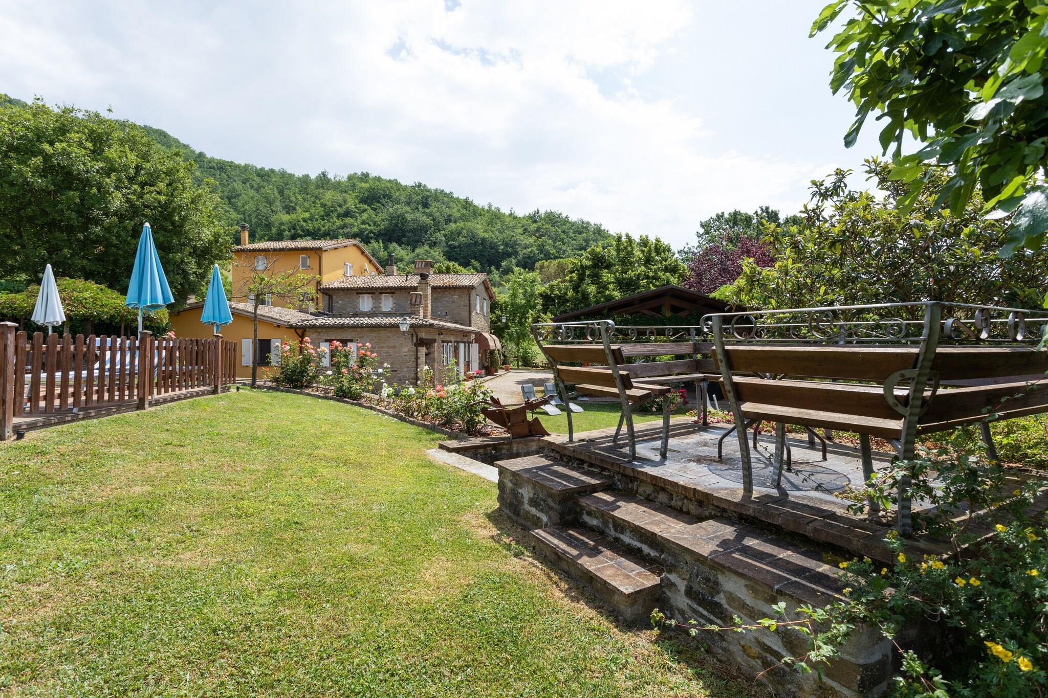 Diese geräumige Villa in der Nähe von Assisi bietet einen ruhigen Rückzugsort auf dem Land für bis zu 25 Gäste. Sie verfügt über mehrere unabhängige Wohneinheiten, elegante Schlafzimmer und gemütliche Wohnbereiche. Eine professionelle Küche und ein großes Esszimmer machen sie ideal für Gruppentreffen, während der üppige Garten, die private Terrasse und der eingezäunte Pool (10 x 5 m) zum Entspannen einladen. Familien werden den Spielbereich mit Tischtennis, Tischfußball, Darts, Schaukeln und einem Baumhaus lieben. Der nur 2 km entfernte Parco del Monte Subasio bietet malerische Wanderungen, und die kulturellen Schätze von Assisi – wie die Basilica di Santa Chiara, die Rocca Maggiore2 und das Museo della Porziuncola – sind nur 10 km von der Villa entfernt. Gäste können auch das Forum Romanum4 erkunden und den Panoramablick vom Monte Subasio Park genießen. Zum Essen genießen Sie umbrische Spezialitäten in der Hostaria Terra Chiama, genießen Wein und kleine Gerichte in der Enoteca Mazzini oder besuchen Sie die Trattoria Degli Umbri mit rustikalem Charme. Il Baccanale und Mangiar Divino bieten kreative Menüs, während Ristorante Pizzeria I Monaci und Pizzeria Ristorante Il Duomo ungezwungene Häppchen in malerischer Umgebung servieren.