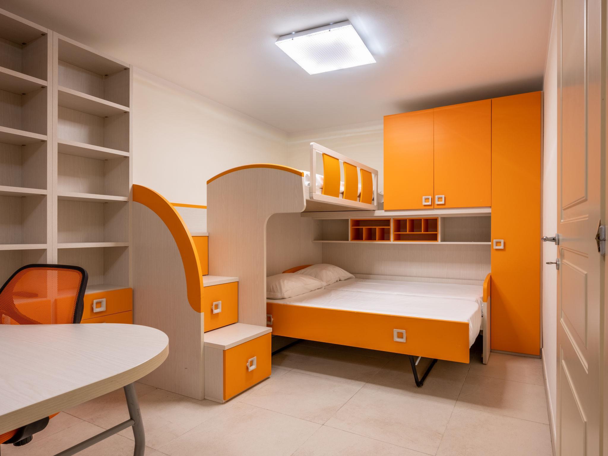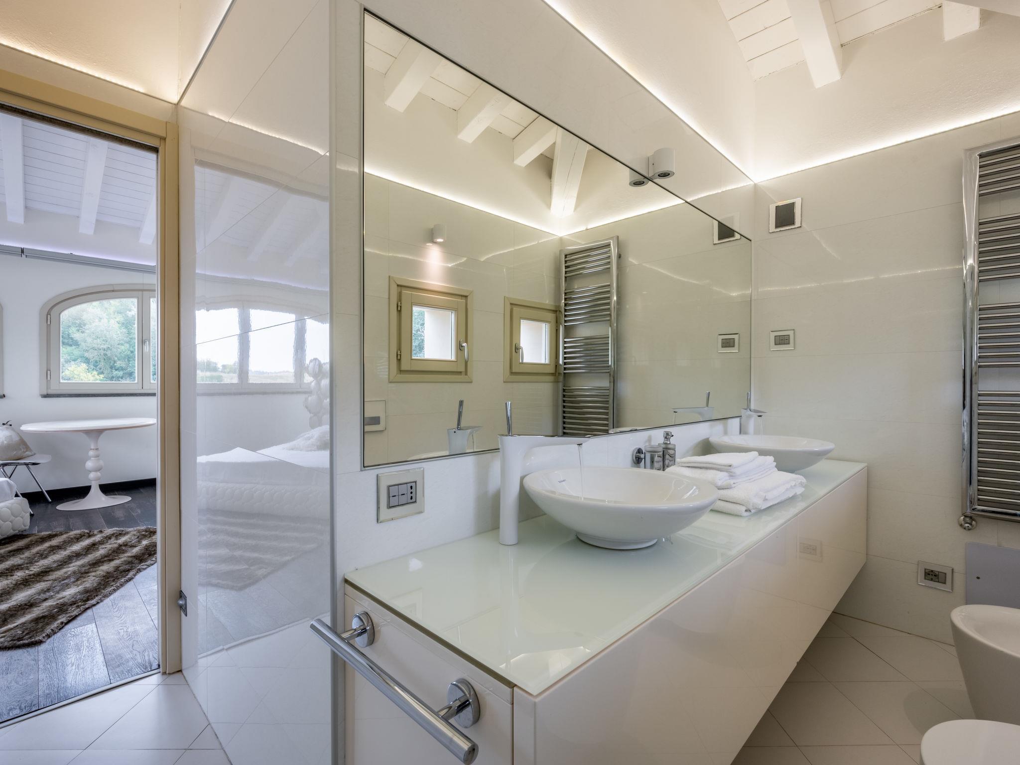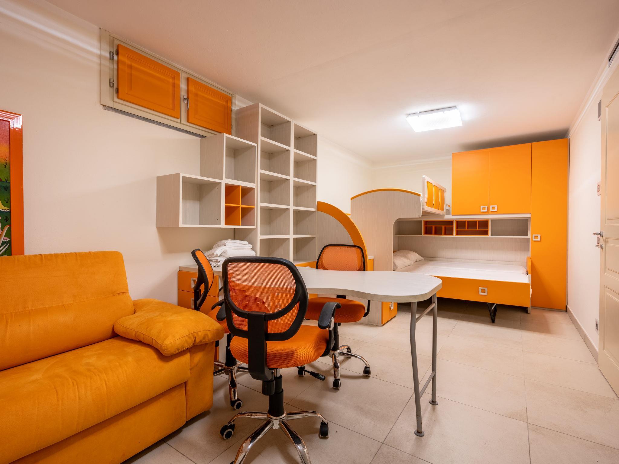 7-Zimmer-Haus 250 m2 auf 2 Stockwerken. Hell, modern und geschmackvoll eingerichtet: Wohn-/Esszimmer mit Esstisch und TV. Ausgang zur Terrasse. 1 Doppelzimmer mit Bad/Bidet/WC und Doppelwaschbecken. Ausgang zum Garten. Wohnzimmer. Ausgang zur Terrasse. Offene Küche (Backofen, Geschirrspüler, 5 Induktionskochplatten, Toaster, Wasserkocher, Tiefkühler, elektrische Kaffeemaschine). Ausgang zur Terrasse. 2 Duschen/Bidet/WC, Doppelwaschbecken. Unteres Geschoss: 1 Zimmer, ohne Fenster mit 1 franz. Bett (160 cm). 1 Zimmer mit 1 x 2 Etagenbetten, 1 Ausziehbett (1 Pers.). Dusche/Bidet/WC, Doppelwaschbecken. Obergeschoss: 1 Zimmer mit begehbarem Kleiderschrank mit 1 franz. Bett (160 cm), Dusche/Bidet/WC. (geländerlose Treppe) 1 offenes Zimmer mit 2 Betten (100 cm, Länge 200 cm), Klimaanlage. Keine Heizmöglichkeit. Parkettboden. Terrasse 30 m2, überdacht Terrasse 50 m2, überdacht. Terrassenmöbel, Gartengrill, Liegestühle. Zur Verfügung: Waschmaschine, Babybett. Internet (WLAN, gratis). Bitte beachten: Nichtraucher-Haus. Keine interne Verbindung zwischen den separaten Wohneinheiten. Kleiner Golfübungsplatz (Driving Range) auf dem privaten Grundstück. IT005106C2YJ9AVVDP