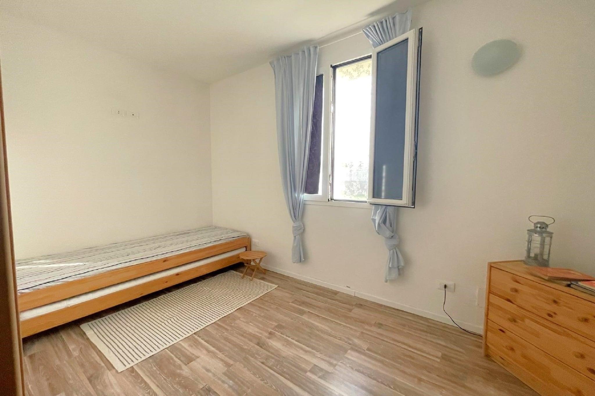 Parterre: (Wohnzimmer(TV, Esstisch, Sitzecke), offene Küche(Kochplatte, Dunstabzugshaube, Kühl-/Gefrierkombination, Waschbecken, Waschmaschine), Schlafzimmer(Doppelbett), Schlafzimmer(Doppelbett oder 2 Einzelbetten), Badezimmer(Dusche, Waschbecken, Toilette, Bidet), Veranda(40 m2)(Esstisch, Sitzecke, Kochplatte, Sonnenbank / Solarium, Waschbecken), Klimaanlage) Garten(alleinige Nutzung), Gartenmöbel, Liegen, Grill, Parkplatz