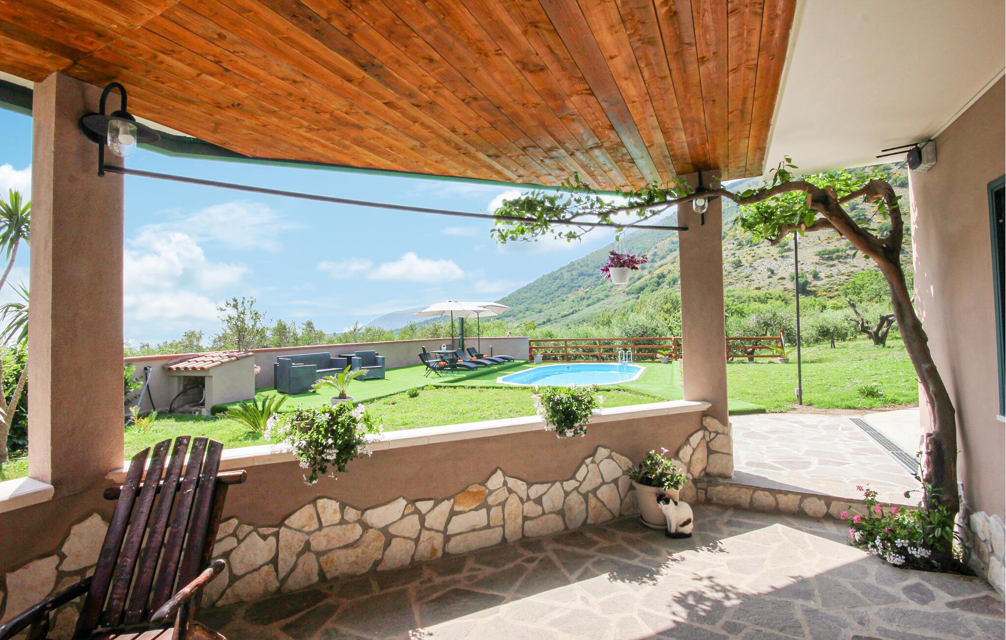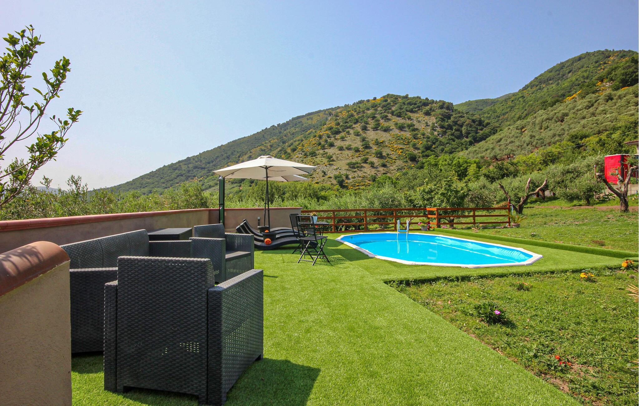 Gönnen Sie sich eine erholsame Auszeit in diesem geräumigen Ferienhaus mit Pool und bezauberndem Panoramablick.