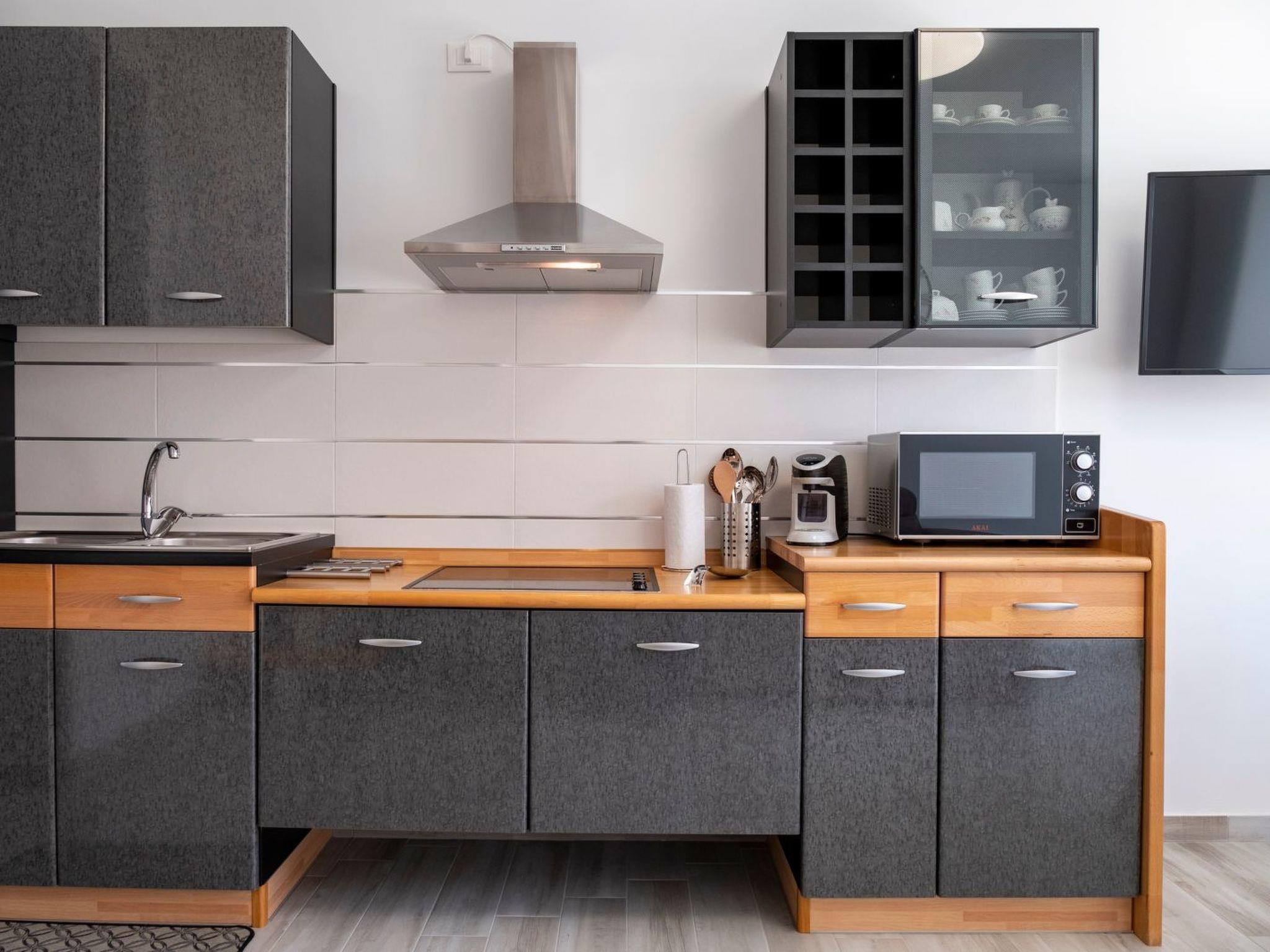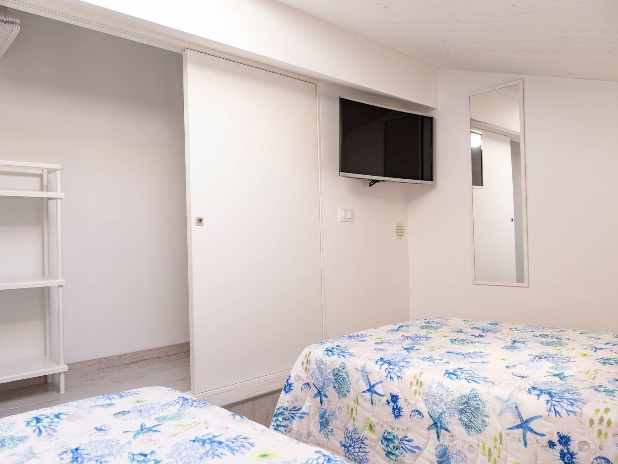 Das Innere der Wohnung ist bis ins kleinste Detail gepflegt, um Komfort und Bequemlichkeit während Ihres Aufenthalts zu gewährleisten. Die zwei Schlafzimmer, eines mit einem Doppelbett und das andere mit zwei Einzelbetten, sind ideal für Familien und Gruppen von Freunden. Die Klimaanlage in der gesamten Unterkunft sorgt auch an den heißesten Tagen für ein kühles und angenehmes Ambiente. Zu Ihrer Bequemlichkeit verfügt die Wohnung auch über eine Waschmaschine, die Ihnen zur alleinigen Nutzung zur Verfügung steht und leicht zugänglich im 1.