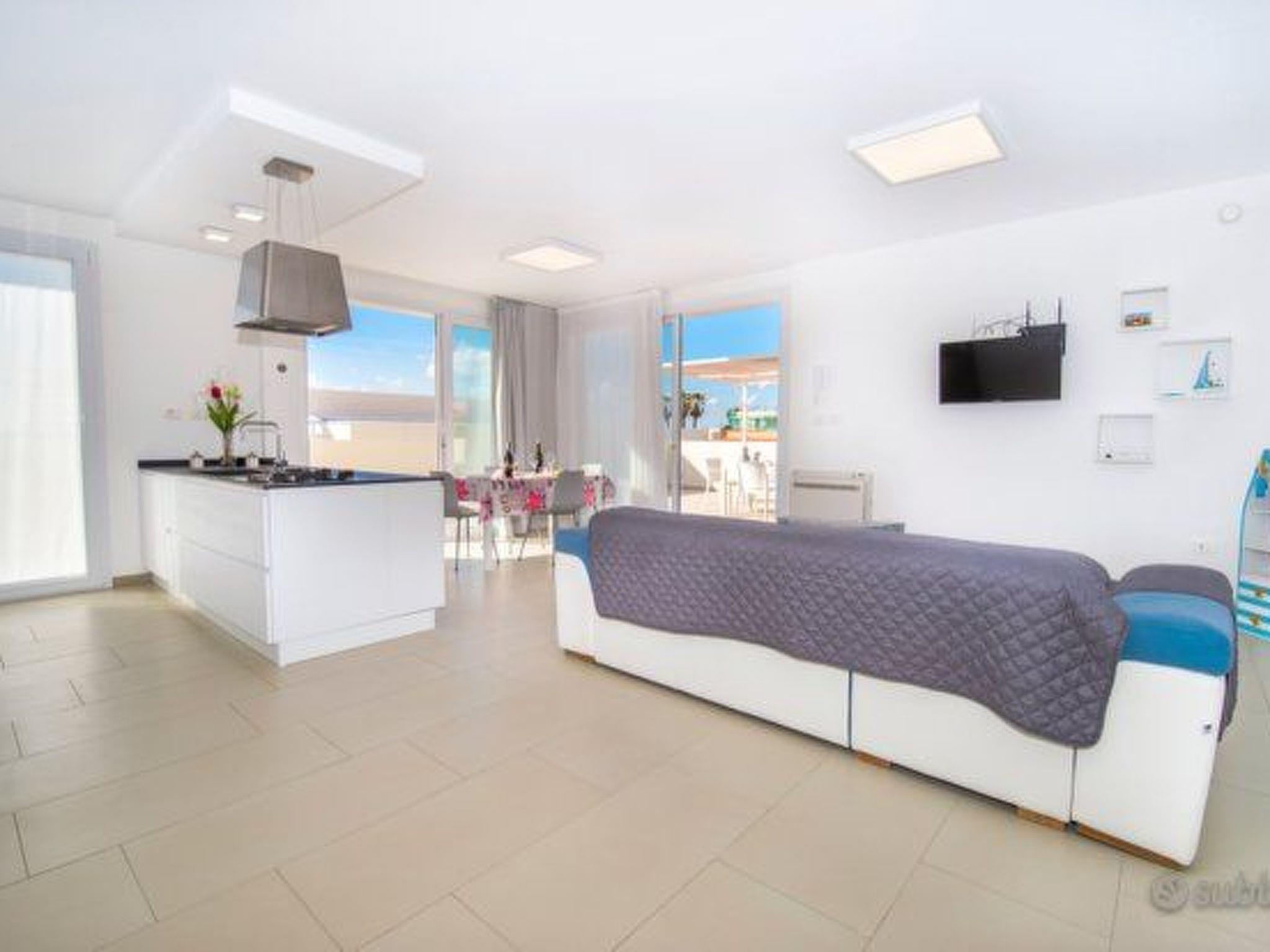 Die Onde di Sicilia Suite, eine Villa mit vier völlig unabhängigen Wohnungen, befindet sich im ersten Stock und verfügt über eine große Terrasse und einen herrlichen Blick aufs Meer. Sie besteht aus einer voll ausgestatteten Küche, einer Kochecke mit zentraler Kochinsel und großen Fenstern mit Blick aufs Meer, einem Entspannungsbereich mit Fernseher und einem großen Sofa. Der Schlafbereich besteht aus drei Doppelzimmern, eines davon mit eigenem Bad und Dusche. Jede Wohnung in der Struktur (3 Wohnungen im Erdgeschoss und 1 Suite im ersten Stock) verfügt über einen eigenen Parkplatz für 1 Fahrzeug auf dem Gemeinschaftsparkplatz.