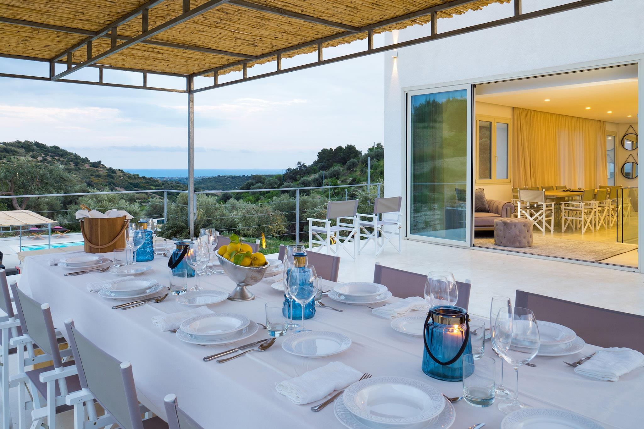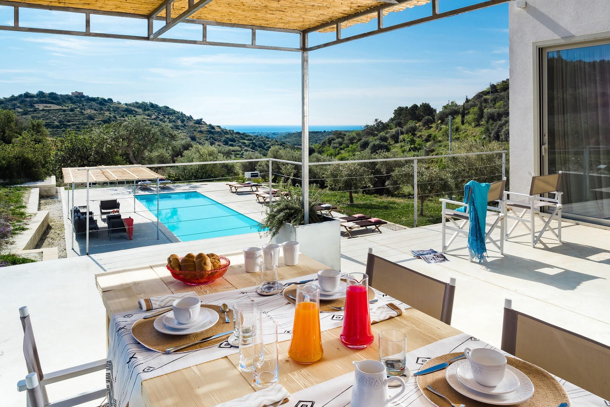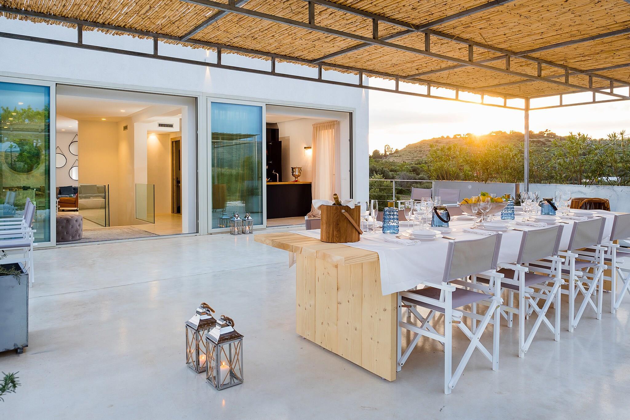 Luxuriöse Villa mit privatem Pool in der Nähe von Noto, einer alten und charmanten Barockstadt, 30 km südlich von Syrakus. Die Unterkunft befindet sich in Panoramalage und bietet einen bezaubernden Blick auf die umliegende Landschaft und das Meer. Entspannen Sie in absoluter Ruhe durch den charakteristischen Naturgarten, den schönen beheizten Pool und die großen und gut ausgestatteten Terrassen. Von dieser charmanten Traumvilla aus erreichen Sie die Strände von Calamosche, San Lorenzo und Fontane Bianche, die schönen Barockstädte Noto, Syrakus, Palazzolo Acreide, Modica, Scicli und Ragusa sowie die Naturschutzgebiete Vendicari und Cavagrande del Cassibile. Die kürzlich gebaute, moderne Villa ist in zwei Gebäude aufgeteilt, die sich auf zwei Ebenen befinden. Die Hauptvilla besteht aus zwei eleganten Suiten mit einem Doppelbett und einem Badezimmer mit Dusche im Erdgeschoss. In der ersten Etage, die durch interne und externe Treppen miteinander verbunden ist, gibt es ein großes und helles Wohnzimmer mit Wohn- und Esszimmer, eine moderne Küche, ein Servicebad und ein zusätzliches Doppelzimmer mit eigenem Bad. Das Nebengebäude besteht im Erdgeschoss aus einem Wohnzimmer mit Küchenzeile, einem Einzelzimmer und einem Badezimmer, während sich im ersten Stock das fünfte Schlafzimmer mit einem eigenen Badezimmer befindet. Das luxuriöse Interieur ist wunderschön eingerichtet und mit allen modernen Annehmlichkeiten ausgestattet, darunter Klimaanlage, WLAN-Internetzugang, Sat-Receiver, 4 TVs, Waschmaschine, 2 Öfen und 2 Geschirrspüler.