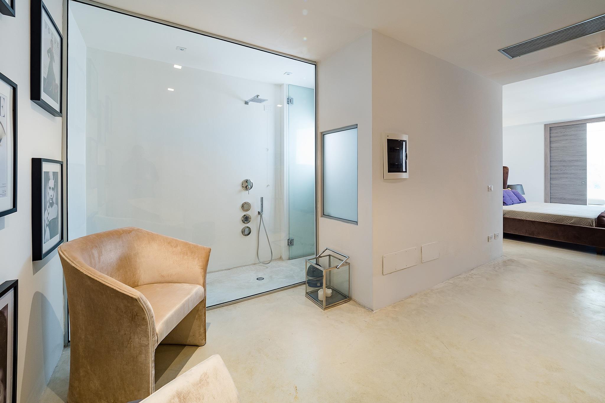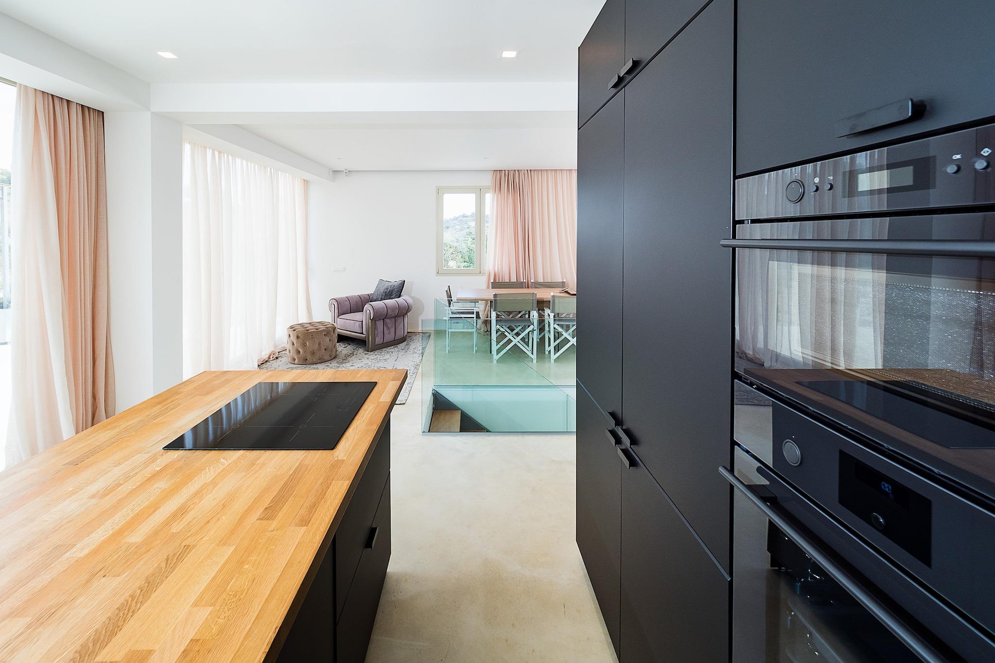 Parterre: (Wohnzimmer(TV(Satellit)), Aufenthaltsraum(TV), Schlafzimmer(Doppelbett king size), Schlafzimmer(Etagenbett, Kinderbett), Badezimmer(Dusche, Waschbecken, Toilette, Bidet, Föhn), Badezimmer(Dusche, Waschbecken, Toilette, Bidet), Dusche(im Garten), Patio, Terrasse, Garten, Gartenmöbel, Liegen, Grill, Parkplatz, Pool(alleinige Nutzung, 18 x 4 m.), Bügeleisen, Fliegenfenster) In der 1. Etage: (Küche(Wasserkocher, Toaster, Kochherd(Induktion), Espressomaschine, Backofen, Mikrowelle, Spülmaschine, Kühl-/Gefrierkombination, Hochstuhl, Mixer), Wohn/Esszimmer(TV), Schlafzimmer(Doppelbett), Badezimmer(Dusche, Waschbecken, Toilette, Bidet), Badezimmer(Waschbecken, Toilette, Bidet)) Gästeunterkunft Parterre: (offene Küche(Wasserkocher, Toaster, Kochherd(Induktion), Backofen, Spülmaschine, Kühl-/Gefrierkombination), Wohn/Esszimmer(TV), Schlafzimmer(Einzelbett), Badezimmer(Dusche, Waschbecken, Toilette, Bidet)) Gästeunterkunft in der 1. Etage: (Schlafzimmer(Doppelbett), Badezimmer(Dusche, Waschbecken, Toilette, Bidet))