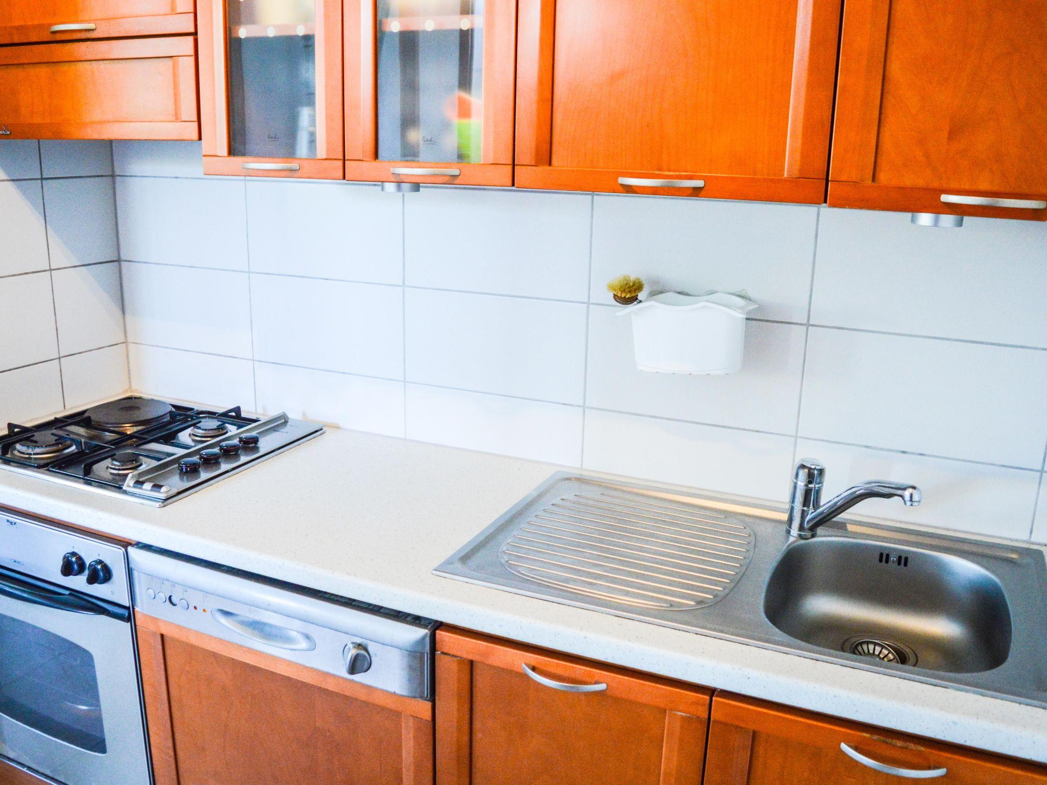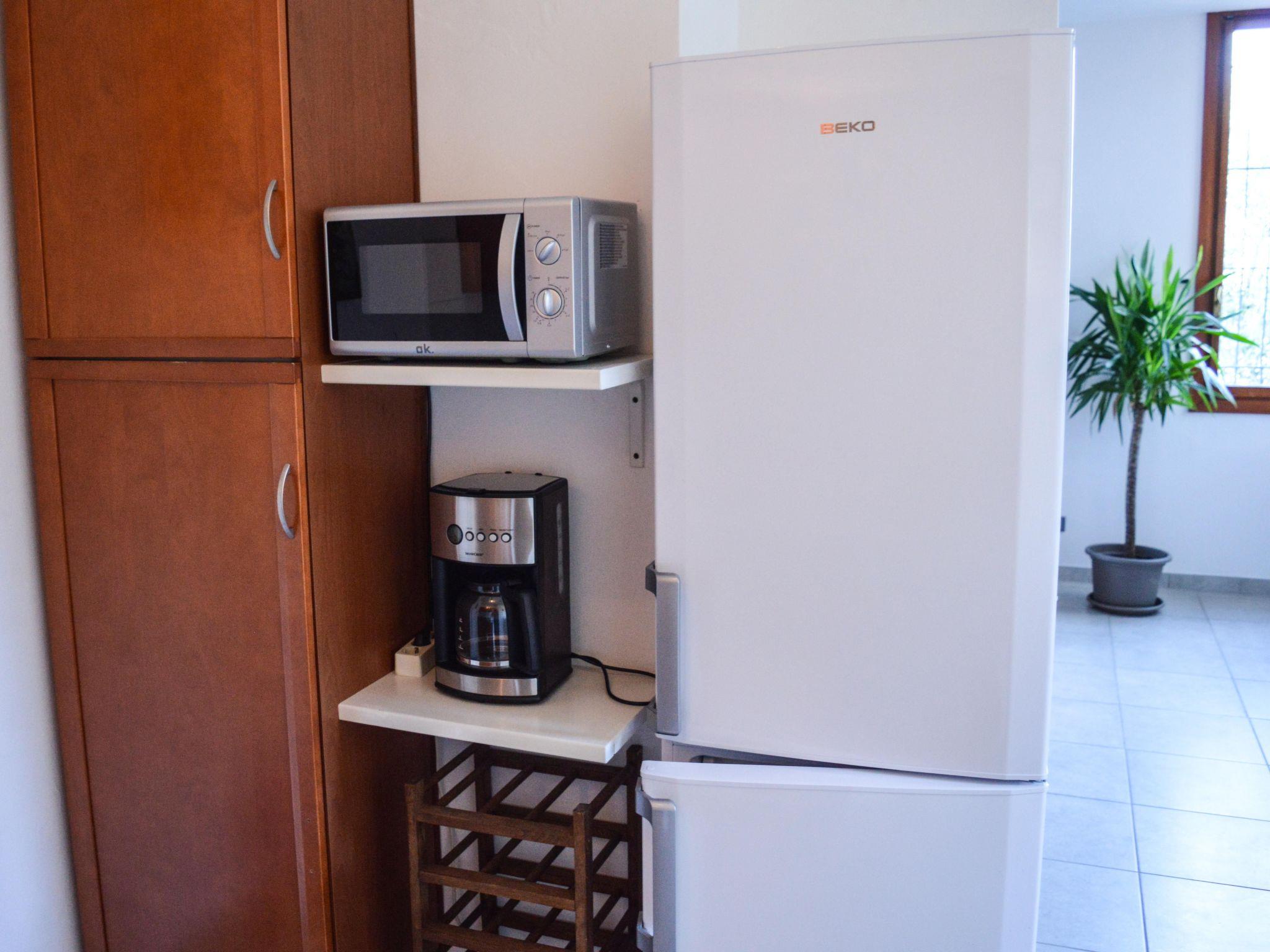 Die Wohnung befindet sich in einem ruhigen Villenviertel, nur 800 Meter vom Meer entfernt. Die wenig befahrene Privatstraße, die zur Villa mit der Wohnung führt, endet in einer Sackgasse.