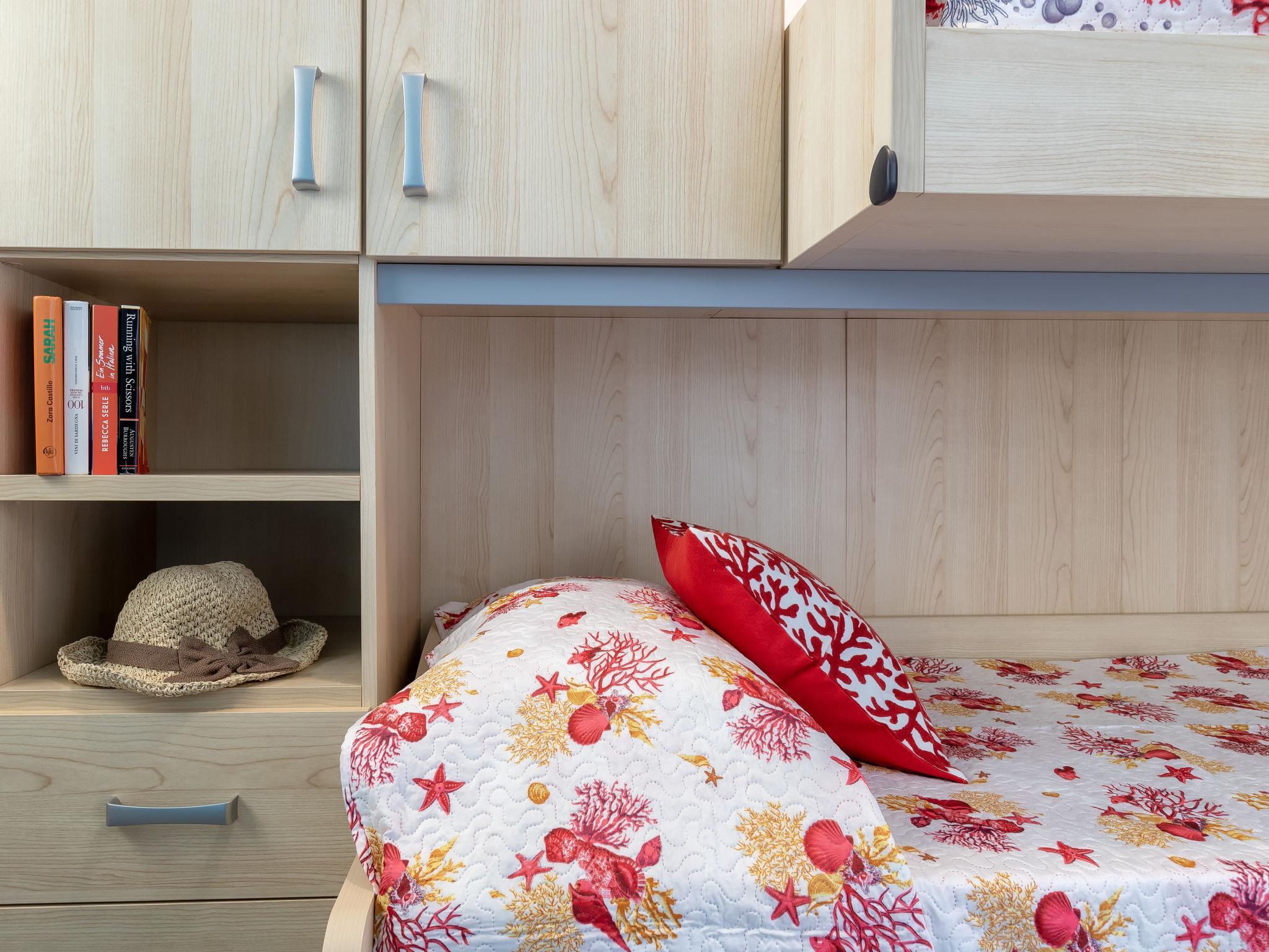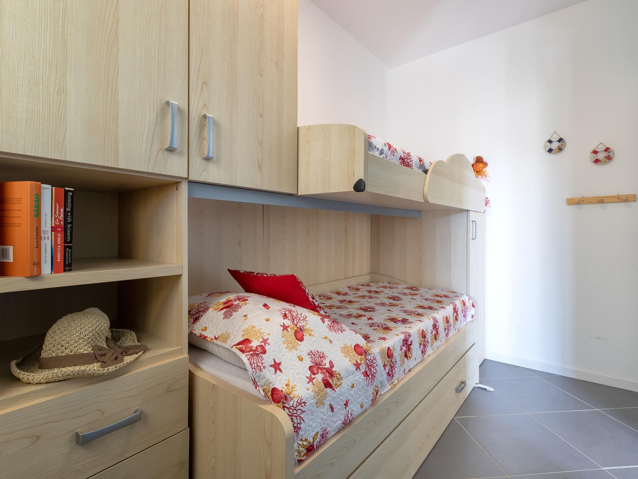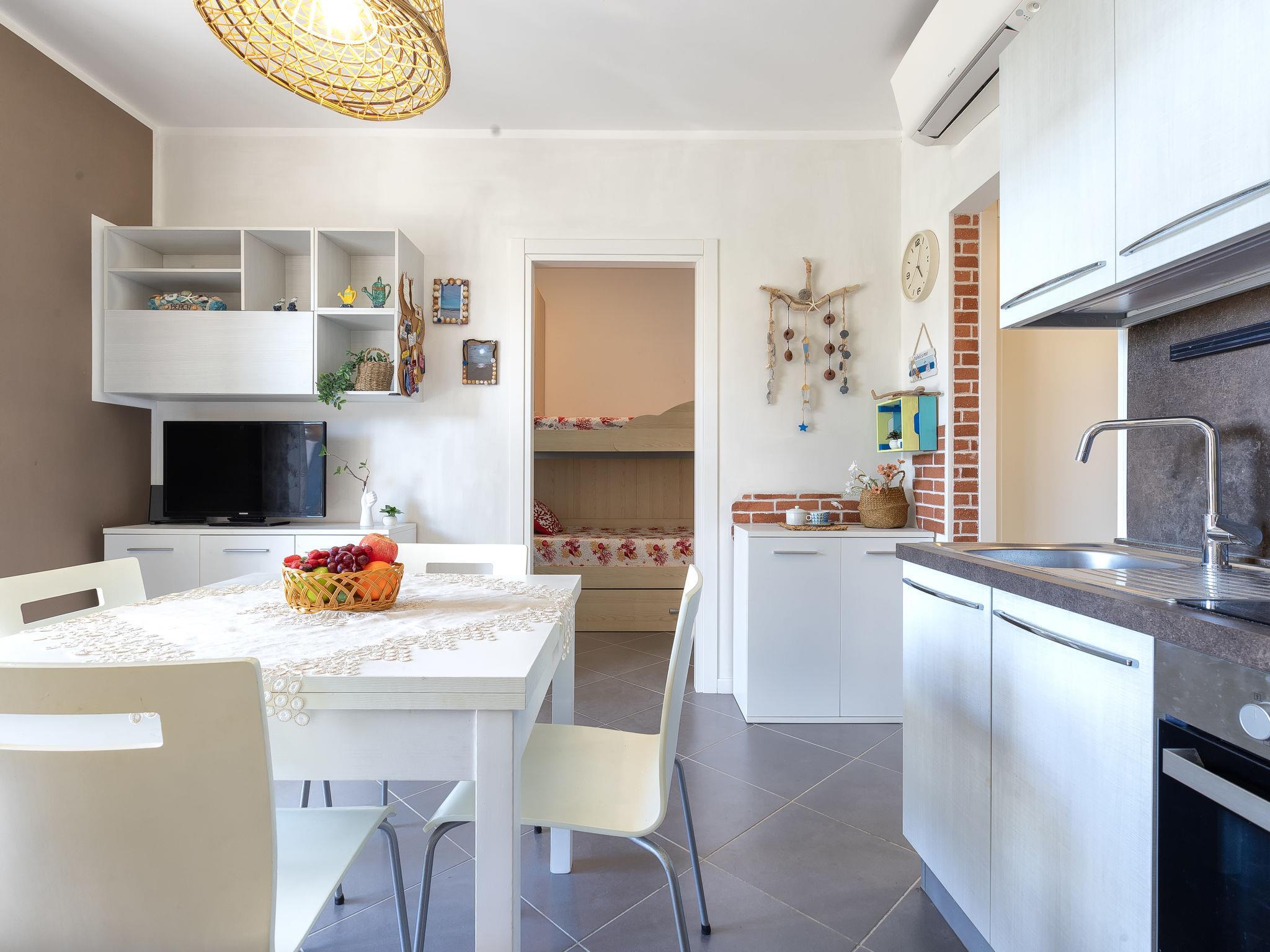 "Mara", 3-Zimmer-Wohnung 48 m2, im Erdgeschoss. Hell, komfortabel und modern eingerichtet: Wohn-/Esszimmer mit TV. Ausgang zum Garten. 1 Doppelzimmer. 1 Zimmer mit 1 x 2 Etagenbetten. Offene Küche (Backofen, Geschirrspüler, 4 Induktionskochplatten, Toaster, Wasserkocher, elektrische Kaffeemaschine). Dusche/Bidet/WC. Klimaanlage, Warmluftheizung. Terrasse überdacht. Terrassenmöbel, Liegestühle, Sitzplatz. Zur Verfügung: Waschmaschine, Bügeleisen, Haartrockner. Internet (WLAN, gratis). IT090081C2000T4681