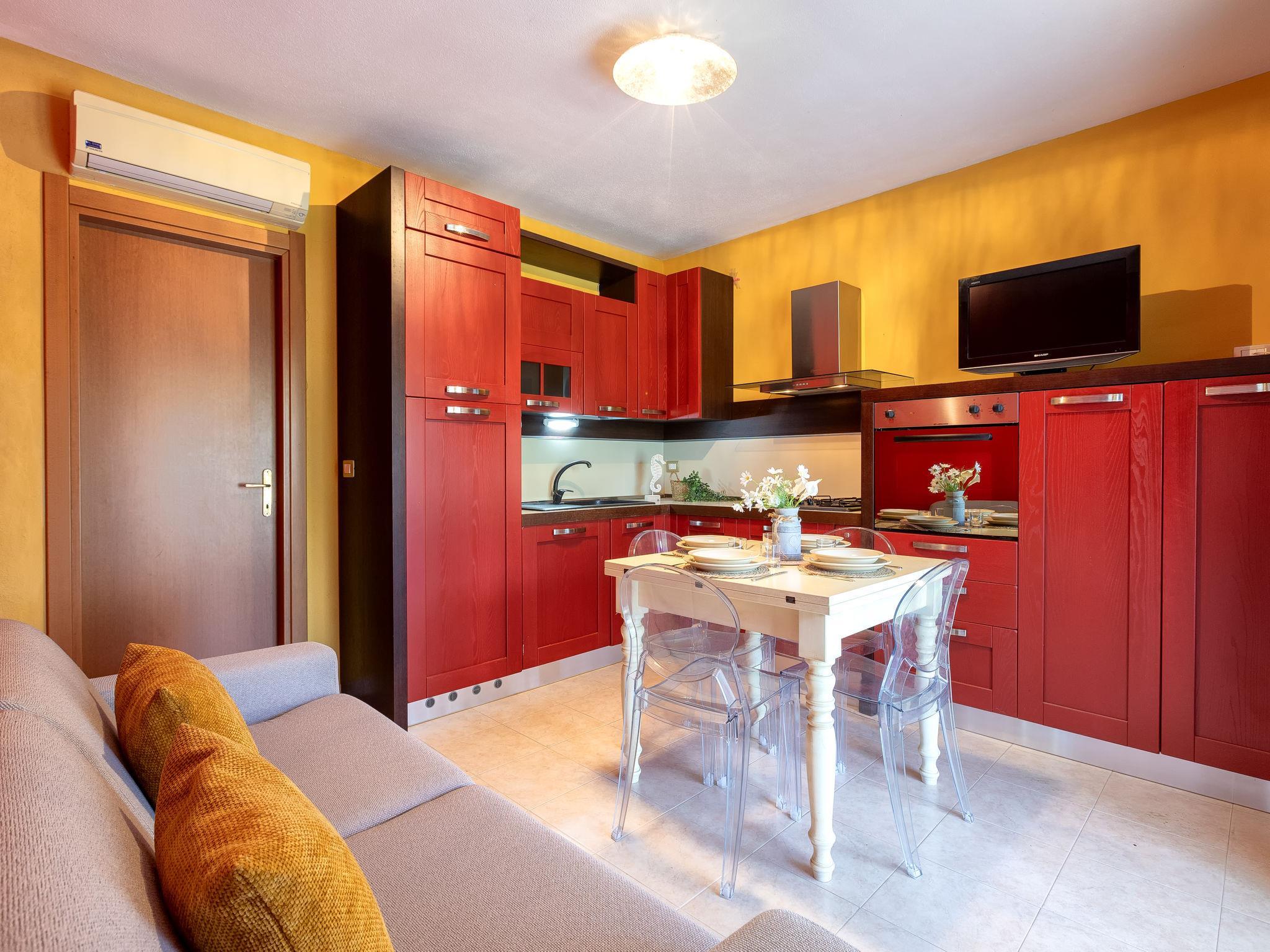 "Rosetta", 2-Zimmer-Wohnung 45 m2, im Erdgeschoss. Zweckmässig und modern eingerichtet: Wohn-/Esszimmer mit 1 Doppeldiwanbett und TV (Flachbildschirm). Ausgang zur Terrasse. 1 Doppelzimmer. Ausgang zum Garten. Küche (4 Kochplatten, Backofen, Geschirrspüler, Toaster, Wasserkocher). Dusche/Bidet/WC. Klimaanlage, Warmluftheizung. Terrasse teilweise überdacht. Terrassenmöbel, Gartengrill, Liegestühle, Sitzplatz. Zur Verfügung: Waschmaschine, Bügeleisen, Fliegengitter, Haartrockner. Internet (WLAN, gratis). Parkplatz Nr. 1. Maximal 1 Haustier/Hund erlaubt. Bettwäsche und Klimaanlage sind gegen Aufpreis erhältlich. IT090081C2000T6370