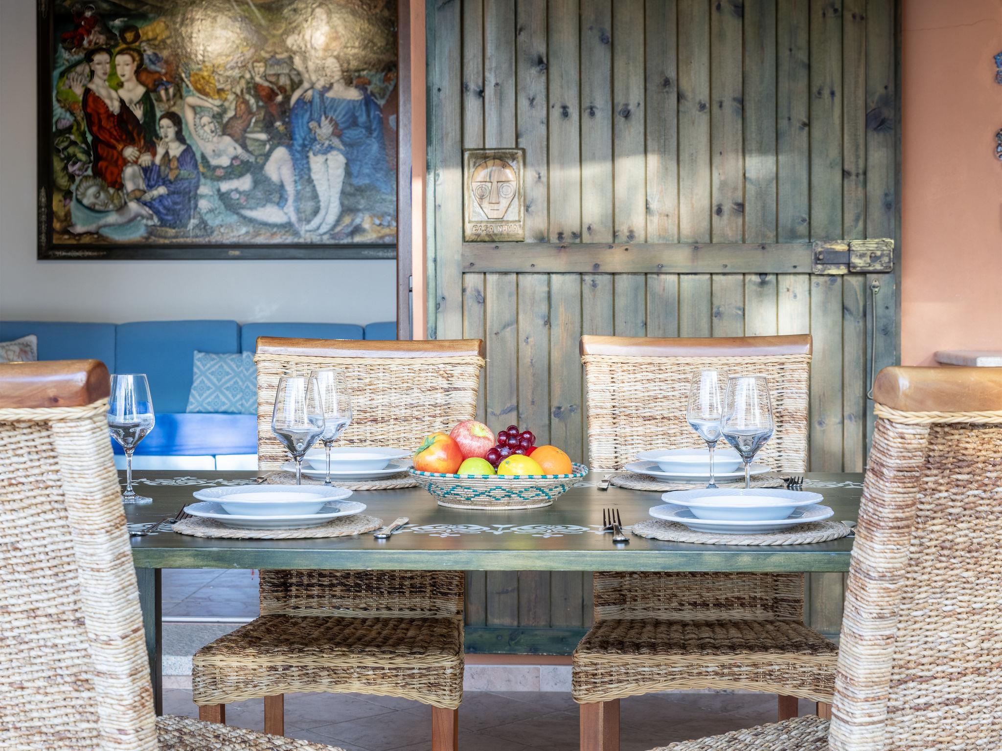 4-Zimmer-Villa 117 m2, im Erdgeschoss. Geschmackvoll und gemütlich eingerichtet: Wohn-/Esszimmer mit TV (Flachbildschirm). Ausgang zur Terrasse. 1 Doppelzimmer. 1 Zimmer mit 1 Doppeldiwanbett. 1 Zimmer mit 2 Betten und Dusche/Bidet/WC. Grosse, offene Küche (5 Kochplatten, Backofen, Geschirrspüler, Toaster, Wasserkocher, Mikrowelle, elektrische Kaffeemaschine). 2 Duschen/Bidet/WC. Klimaanlage, Warmluftheizung. Grosse Terrasse überdacht. Terrassenmöbel, Gartengrill, Liegestühle, Sitzplatz. Sehr schöne Sicht auf das Meer. Zur Verfügung: Waschmaschine, Safe, Bügeleisen, Fliegengitter, Haartrockner. Internet (WLAN, gratis). Bitte beachten: ein Doppelzimmer liegt außerhalb der Wohnung. Keine interne Verbindung zwischen den separaten Wohneinheiten. IT090081C2000U0248