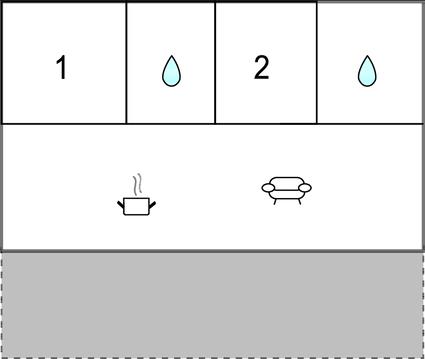 Wohnraum/Küche - 2 Schlafmöglichkeiten. (Schlafsofa,Matratze,Sonstiges).