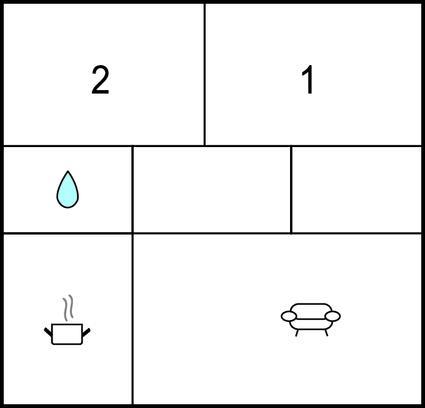 Badezimmer (nr. 1) - WC. Warmes und kaltes Wasser. Dusche