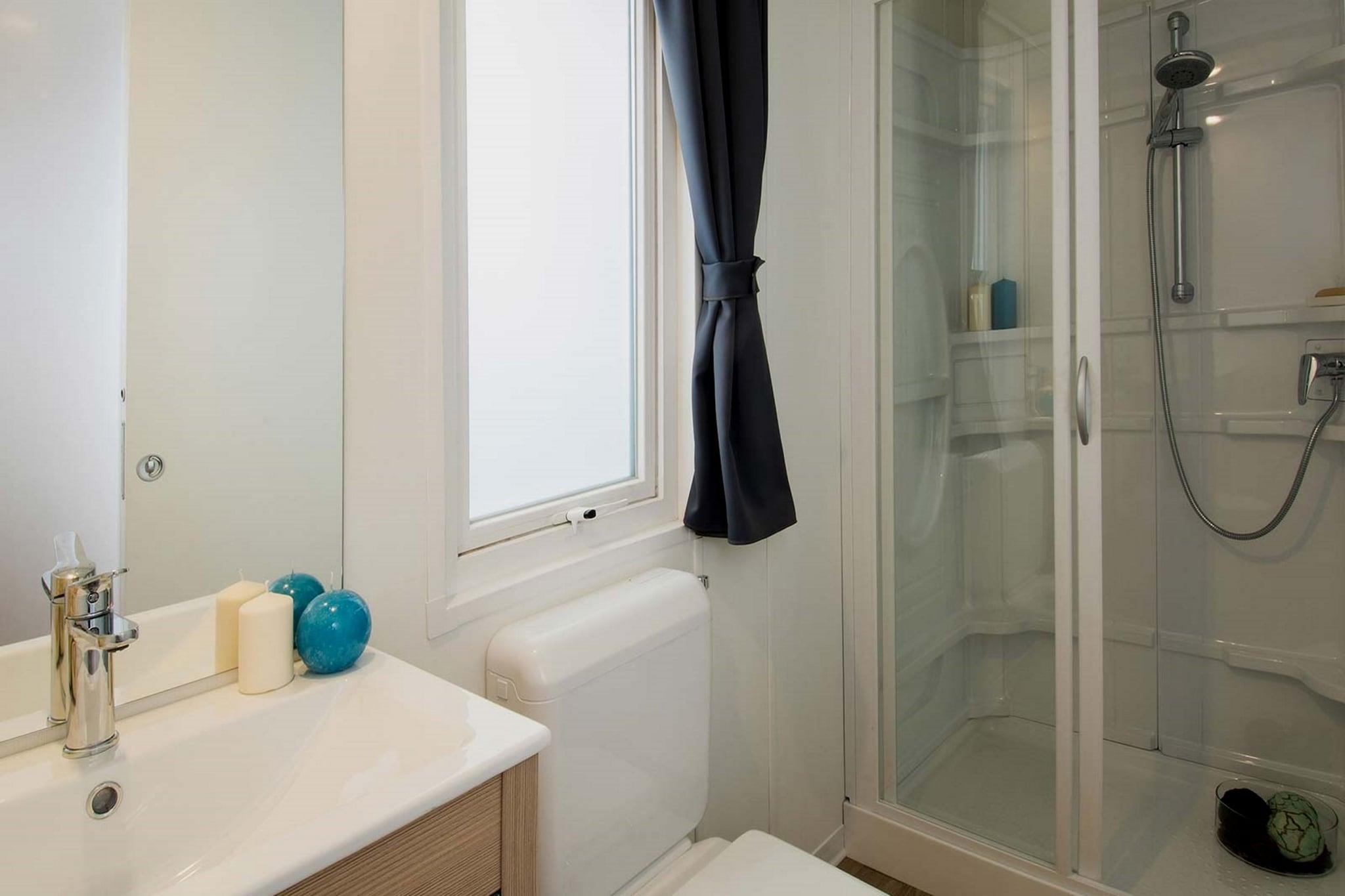 Ein ruhiger Rückzugsort im Schatten üppiger Pinien Eingebettet im Schatten üppiger Pinien bietet dieses moderne Chalet im Baia Domizia Camping Village die perfekte Mischung aus Komfort und Natur. Mit zwei Schlafzimmern, einer sonnenverwöhnten Terrasse mit Gartenmöbeln und einem privaten Parkplatz verspricht Ihr Aufenthalt Ruhe und Entspannung. Die moderne Einrichtung mit gemütlichen Akzenten und einer gut ausgestatteten Küchenzeile ist ideal für Familien oder Paare. Die Klimaanlage (gegen Gebühr) sorgt nach sonnigen Tagen am Meer für angenehme Kühle. Endloser Spaß am Meer Dieses lebendige Feriendorf bietet zahlreiche Aktivitäten für jedes Alter. Genießen Sie den großen Gemeinschaftspool mit Panoramablick auf das Meer oder tanken Sie Sonne am über 1 km langen Privatstrand. Kinder werden den Miniclub und den Spielplatz lieben, während Erwachsene sich beim Sport, im Fitnessstudio oder bei den Unterhaltungsshows entspannen können. Das gastronomische Angebot umfasst Restaurants, Bars und ein kleines Einkaufszentrum für wichtige Dinge und Souvenirs – alles, was Sie für einen unbeschwerten Aufenthalt benötigen, ist in Reichweite. Kultur & Küste entdecken Dieses Chalet in Kampanien ist der perfekte Ausgangspunkt für unvergessliche italienische Abenteuer. Entdecken Sie die Wunder Neapels, die faszinierenden Ruinen von Pompeji oder fahren Sie mit der Fähre zu den magischen Inseln Ischia, Ponza oder Capri. Mit reicher Kultur, atemberaubender Küste und lokalen Spezialitäten ist Ihr Urlaub im Baia Domizia mehr als nur ein Urlaub – ein unvergessliches mediterranes Erlebnis.